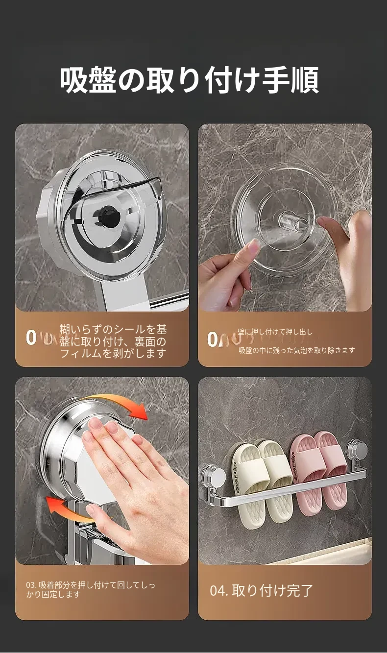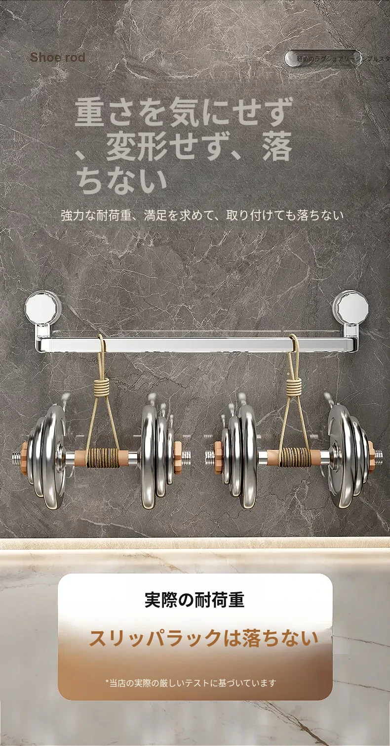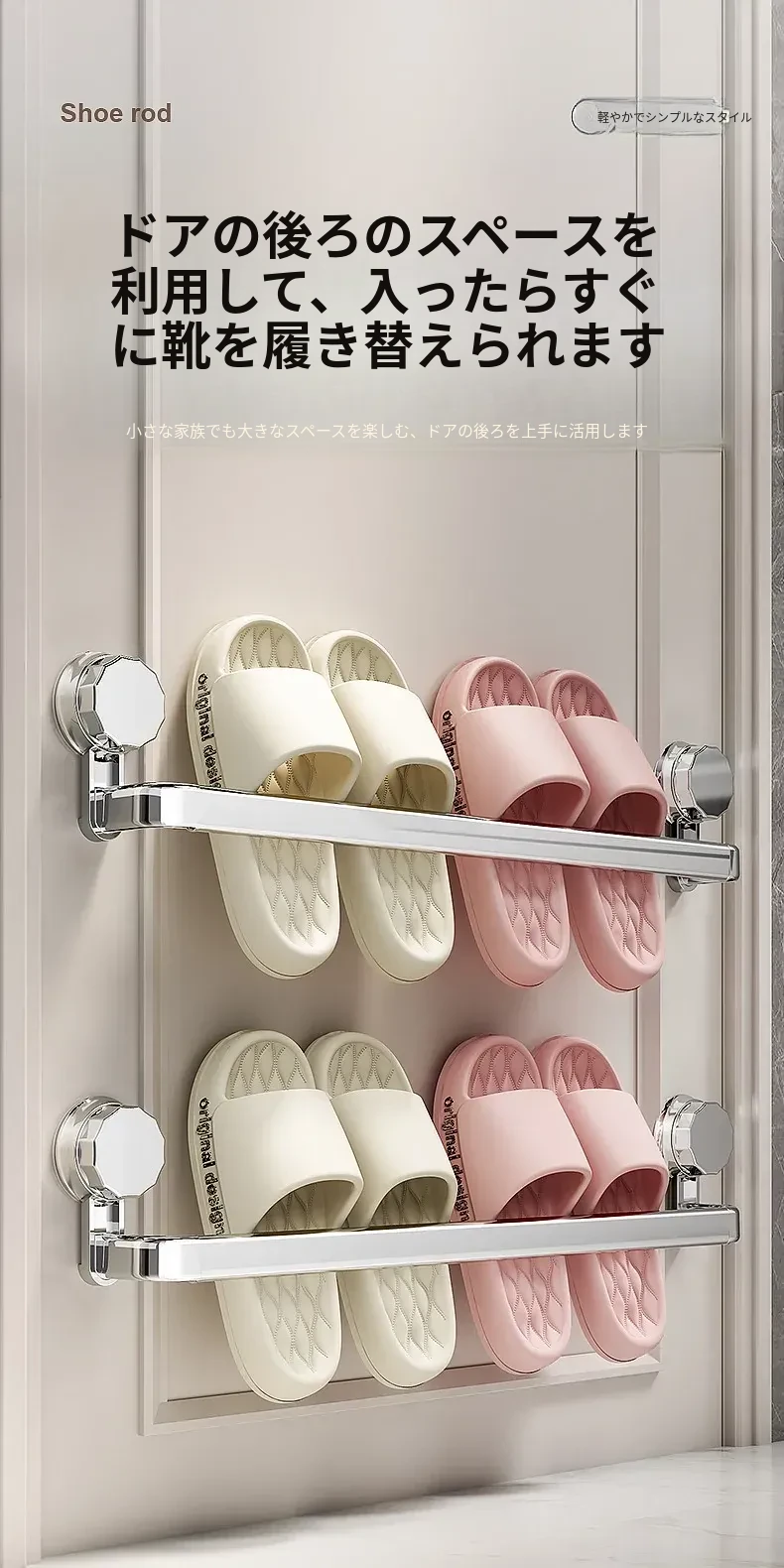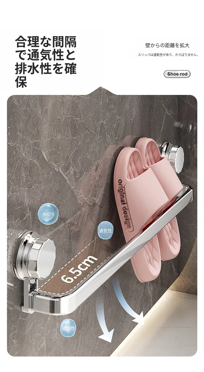 浴室用吸盤付きスリッパラック|壁掛けで簡単設置!穴あけ不要の便利収納|トイレや洗面所に最適な水切り機能付き靴収納アイテム!