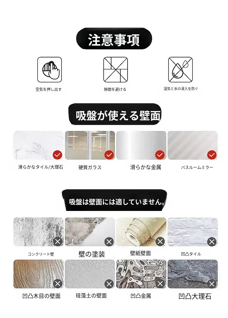 ❗注:"吸盤は壁面に使用できます" 説明を見るにはクリック⭐タイル面の使用を推奨⭐