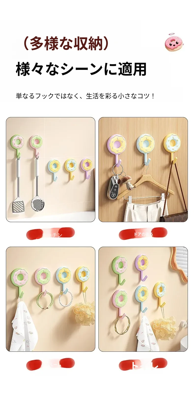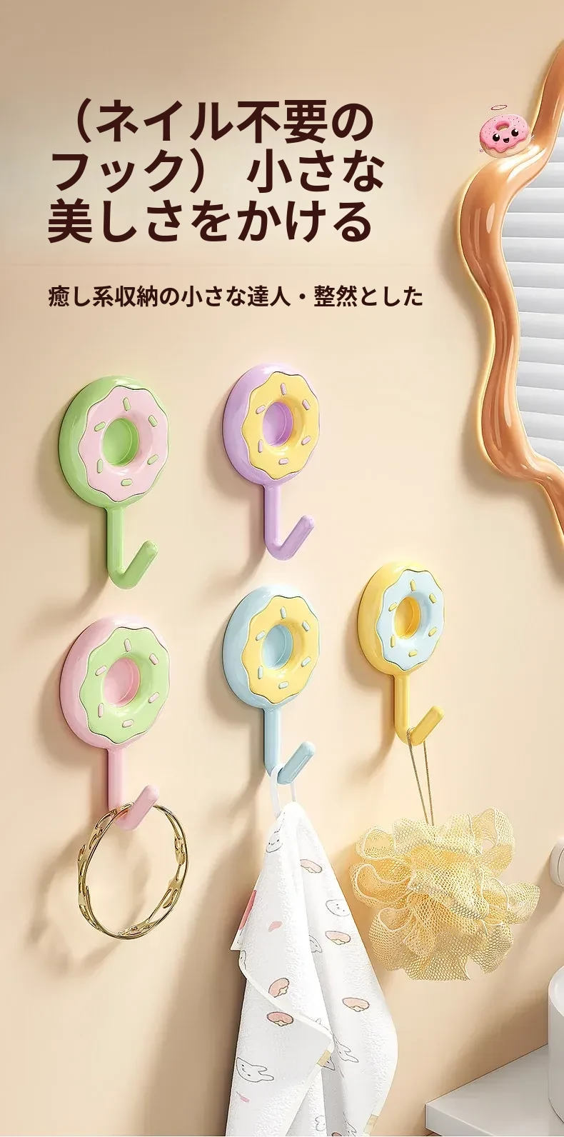 ドーパミン・クリエイティブフック - ノー釘・ノー穴あけ!強力粘着でキッチンやバスルームの壁に無痕で衣類をスッキリ収納!おしゃれで便利な粘着フックです。