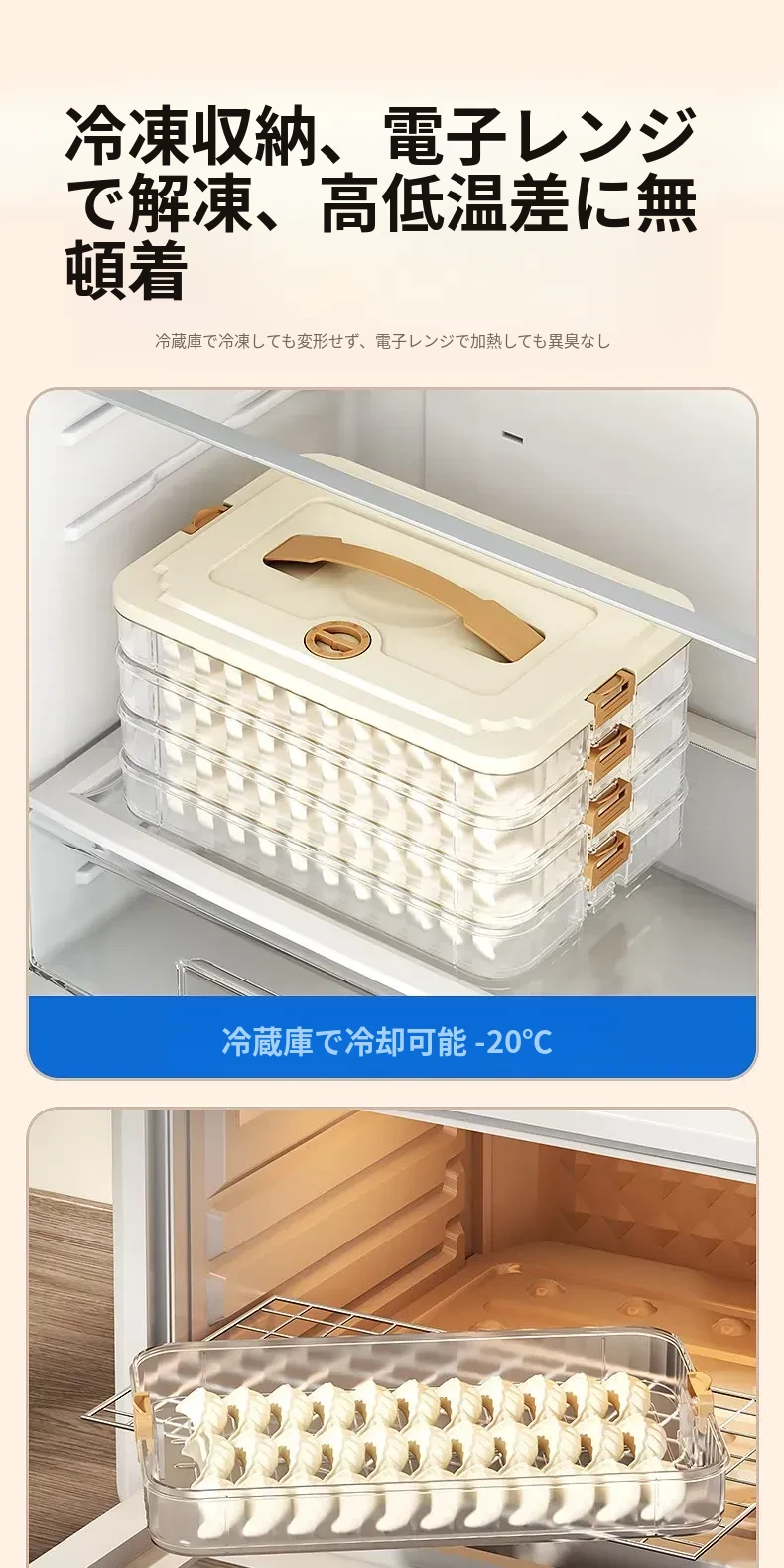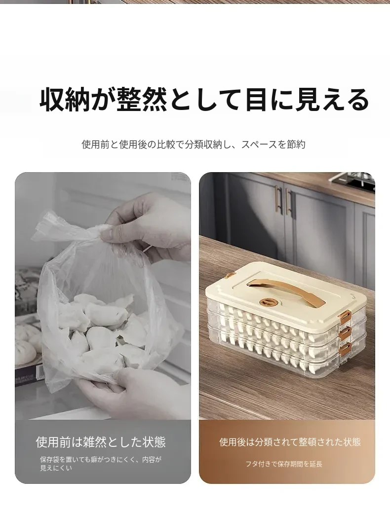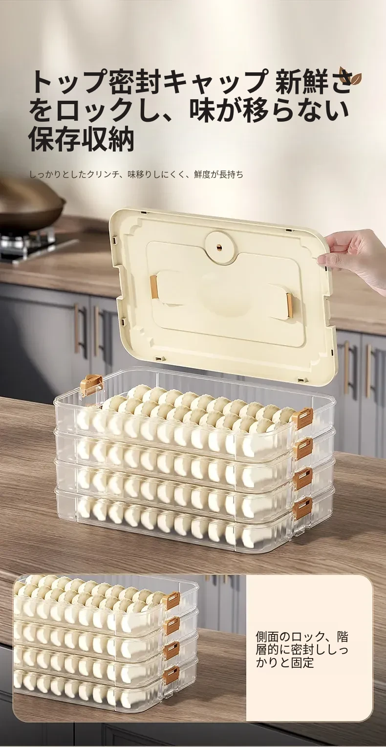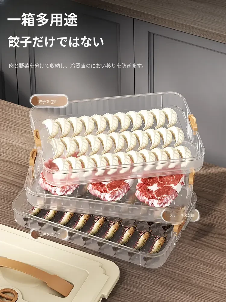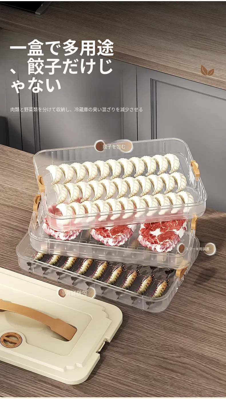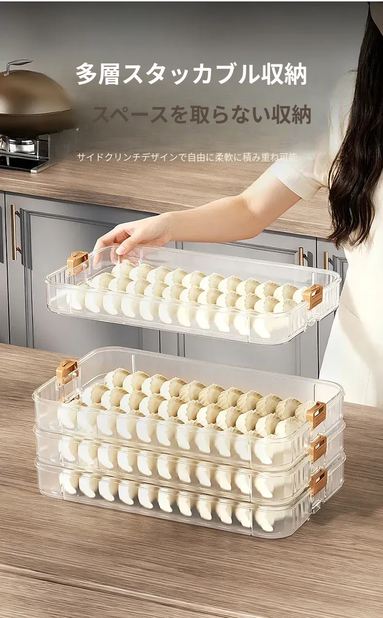 餃子収納ボックス 冷凍保存用 水餃子・ワンタン・包子専用 食品グレードのトレー 便利な家庭用 いつでも新鮮な美味しさをキープ!冷凍庫での整理整頓も簡単!