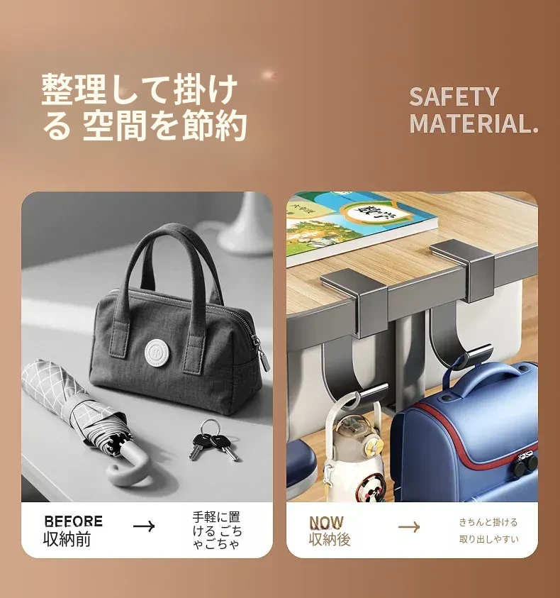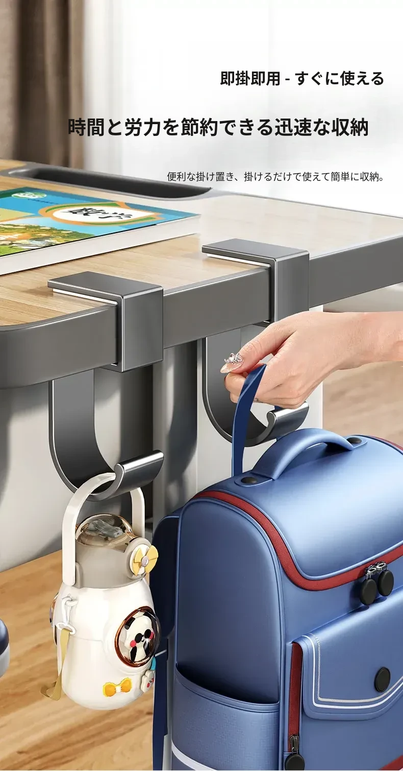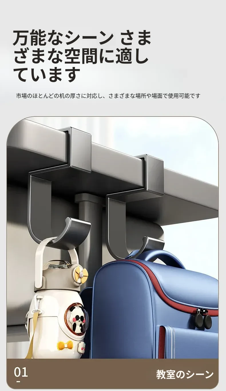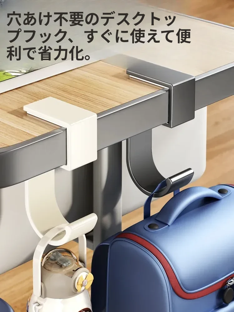 学生必見!デスクサイドに簡単取り付け、穴あけ不要のバッグフック!強力な耐荷重で、宿舎のデスク周りをすっきり整理整頓。便利な収納ラックで、学習環境を快適に!