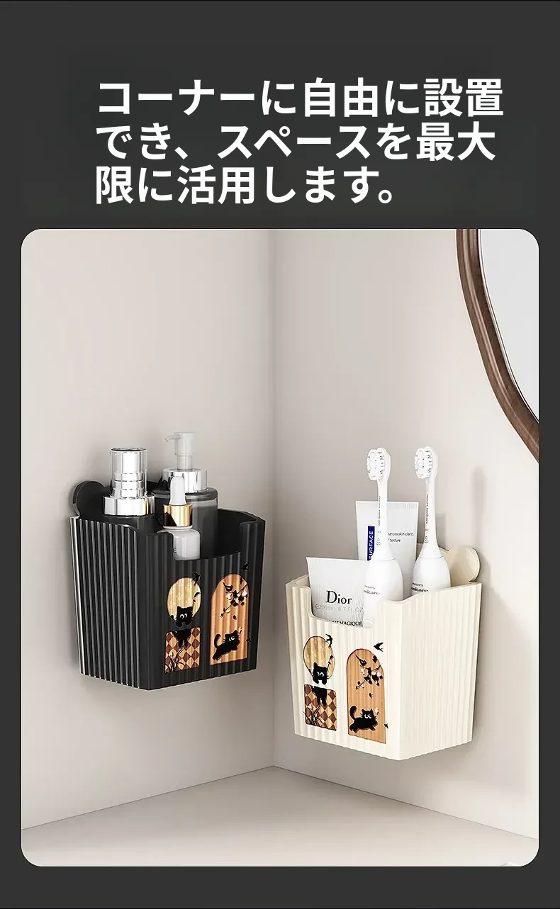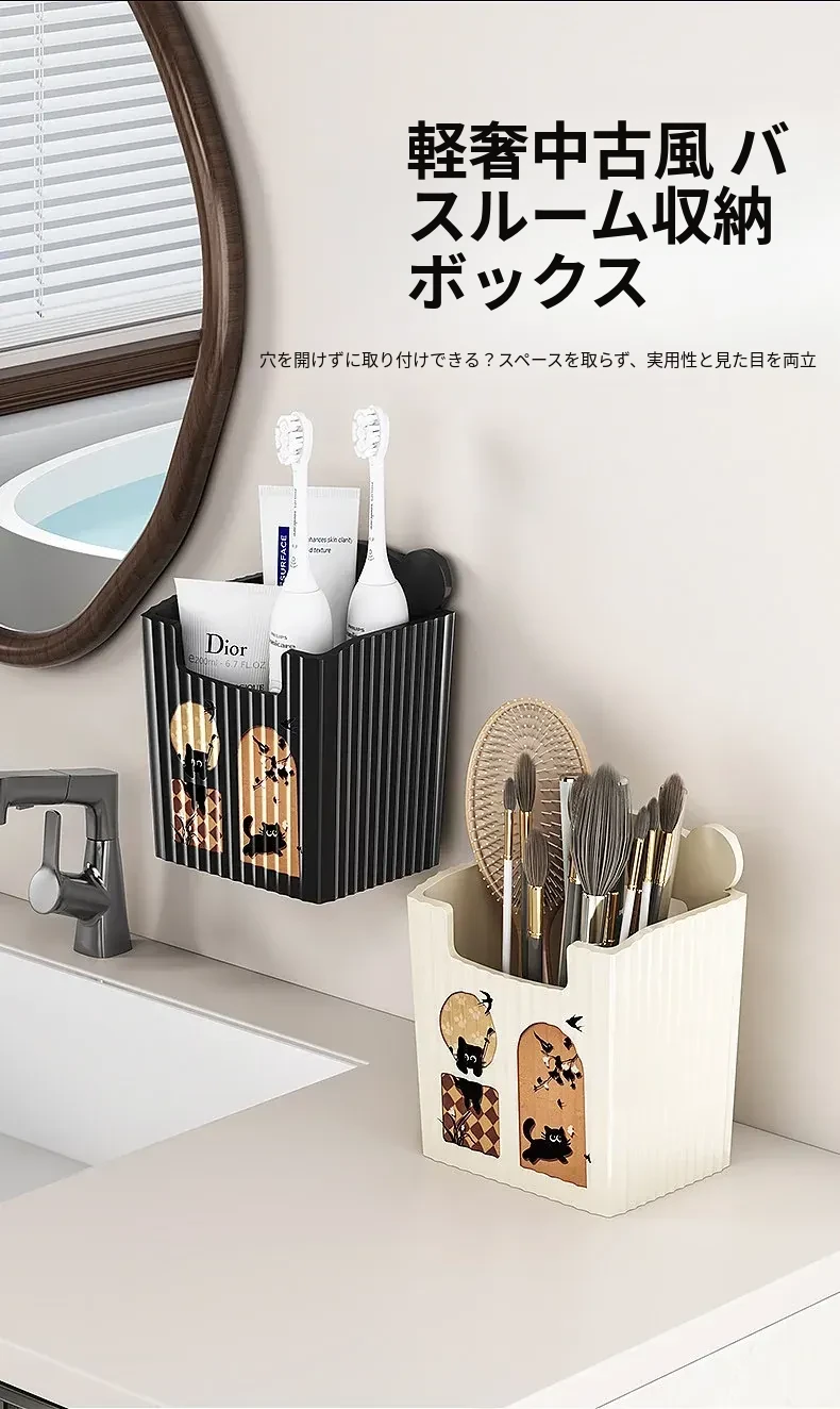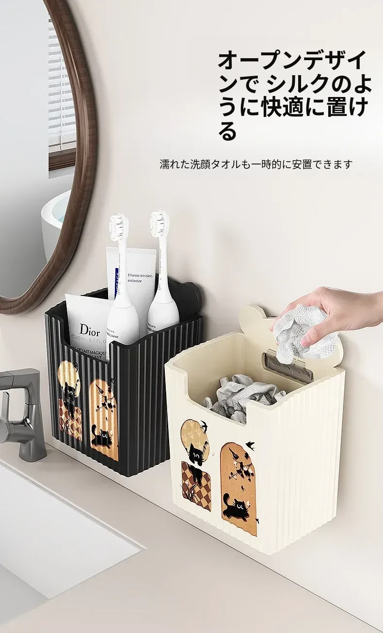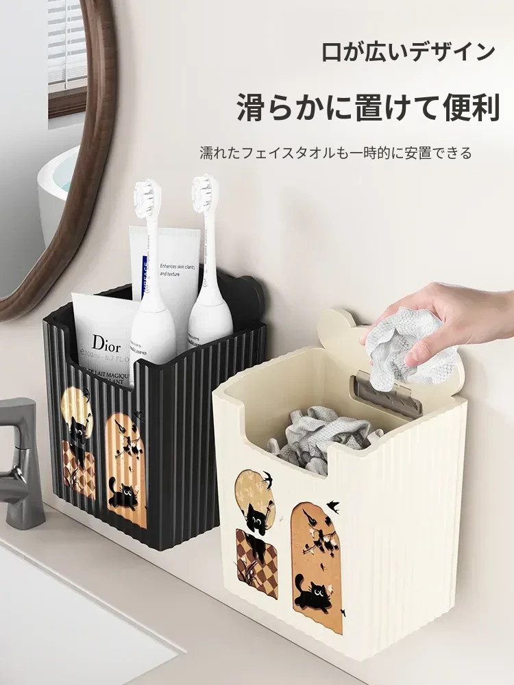廃棄洗顔タオル収納ボックス!洗面台や化粧品の整理に最適なバスルーム用壁掛け収納ラック。穴あけ不要で簡単取り付け、すっきりとした空間を実現します!