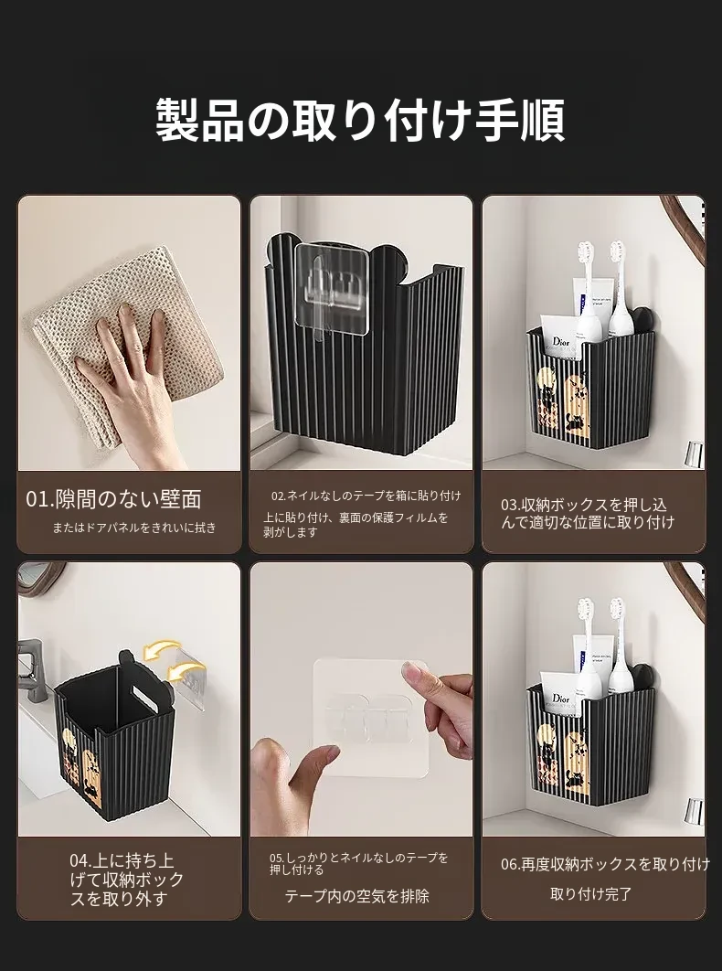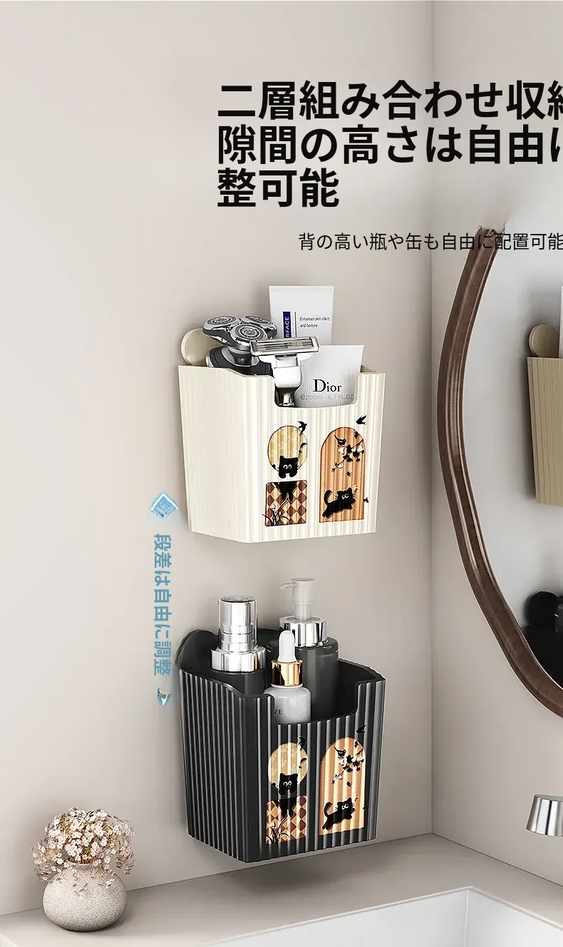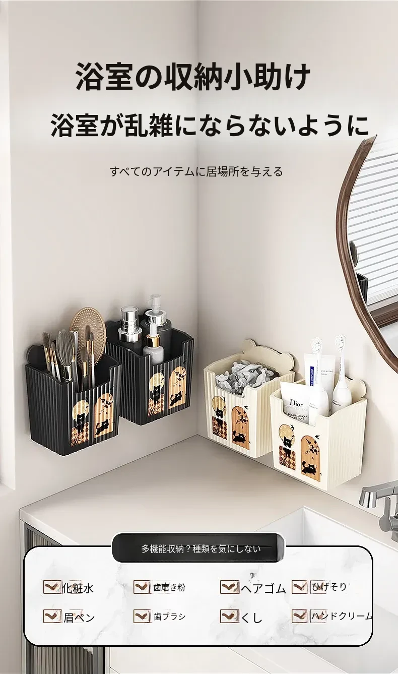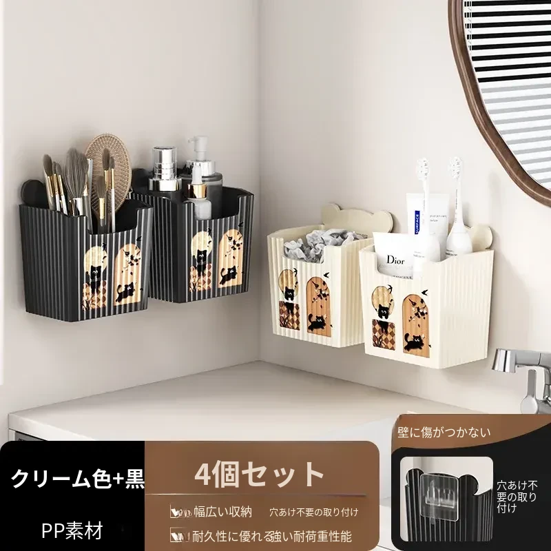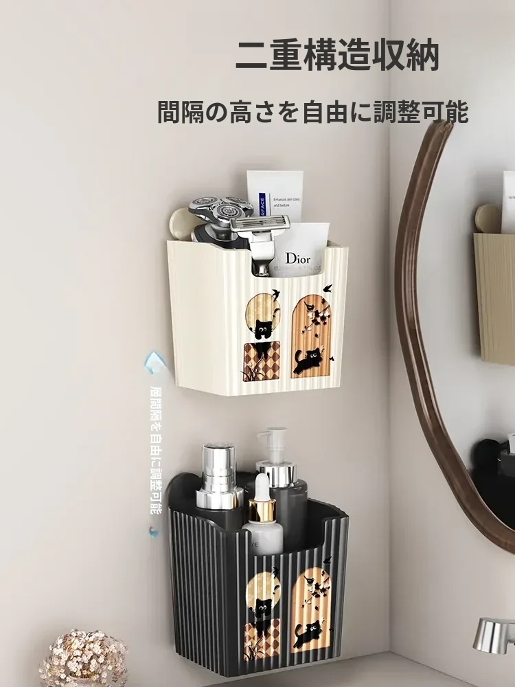 廃棄洗顔タオル収納ボックス!洗面台や化粧品の整理に最適なバスルーム用壁掛け収納ラック。穴あけ不要で簡単取り付け、すっきりとした空間を実現します!