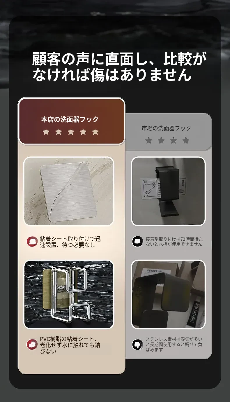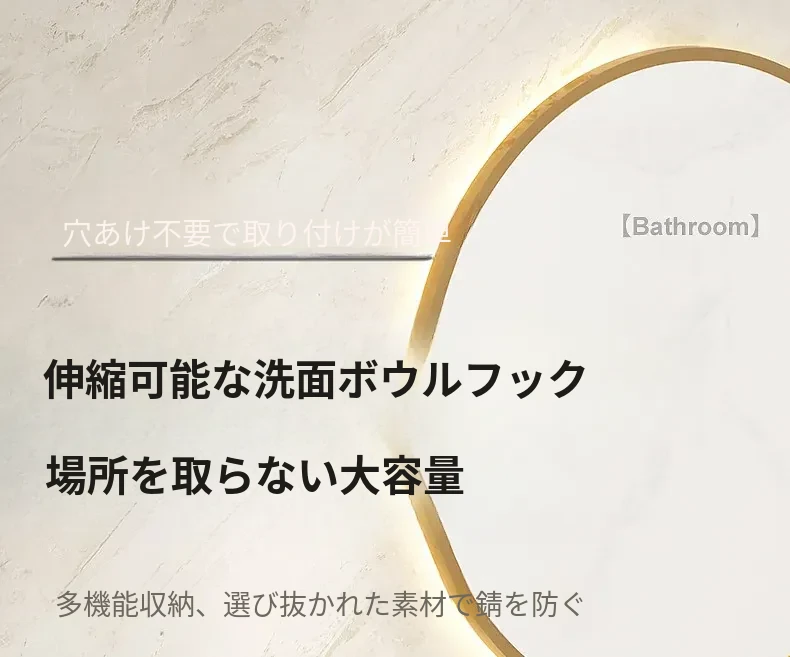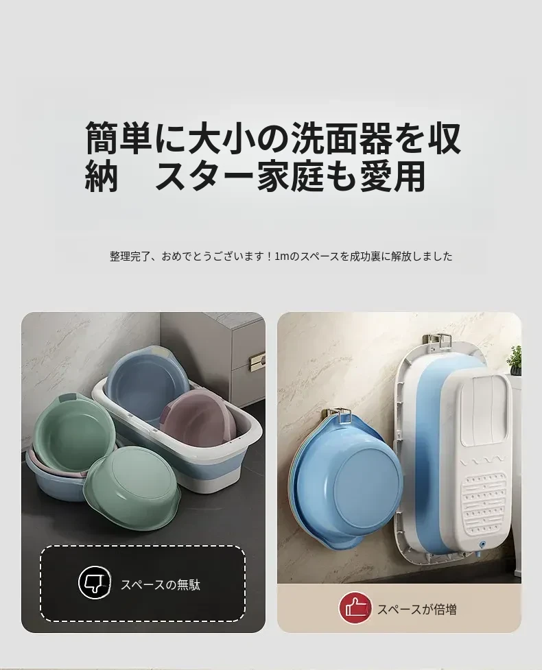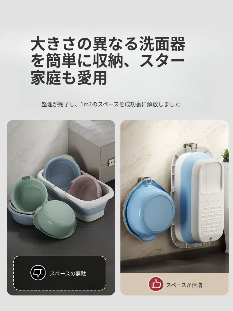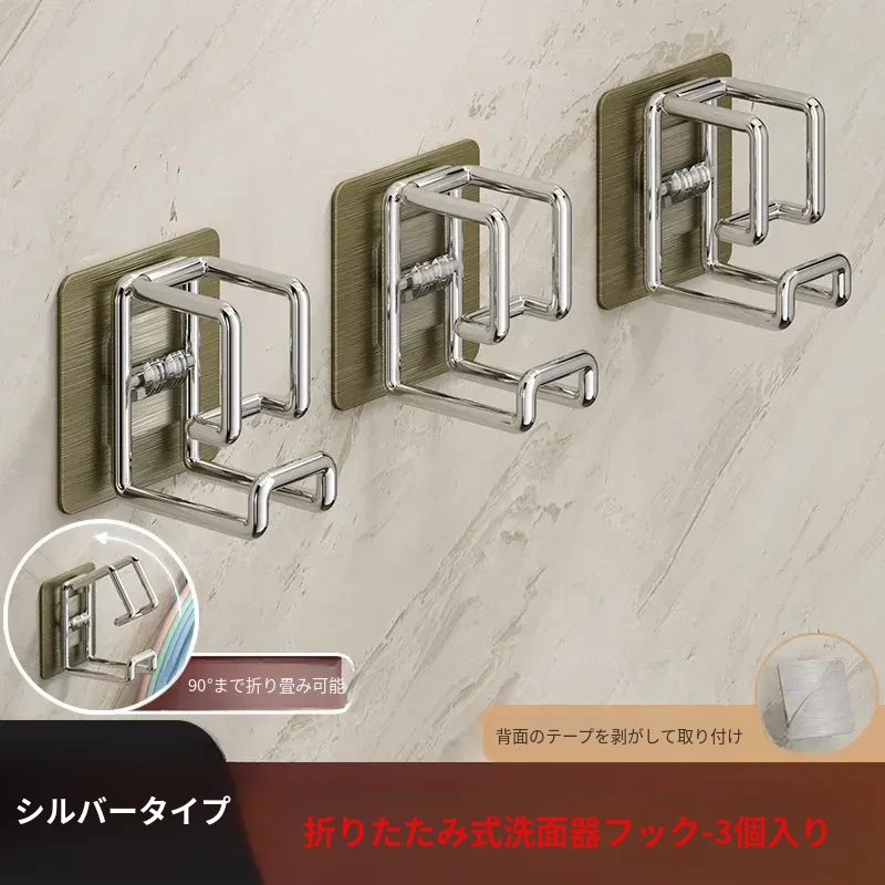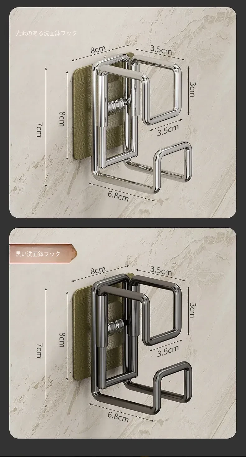 伸縮式洗面器収納ラック|穴あけ不要!バスルームに最適なフック付き壁掛け洗面器収納|省スペースでスッキリ整理!