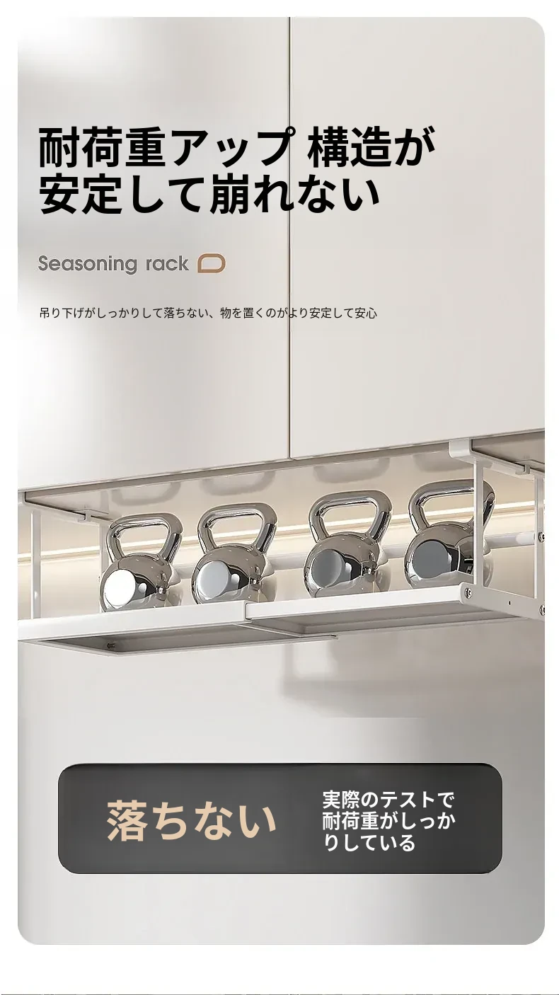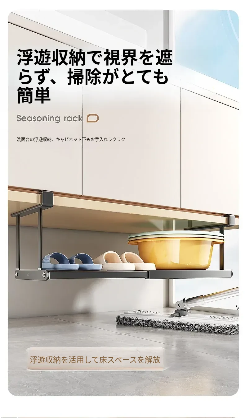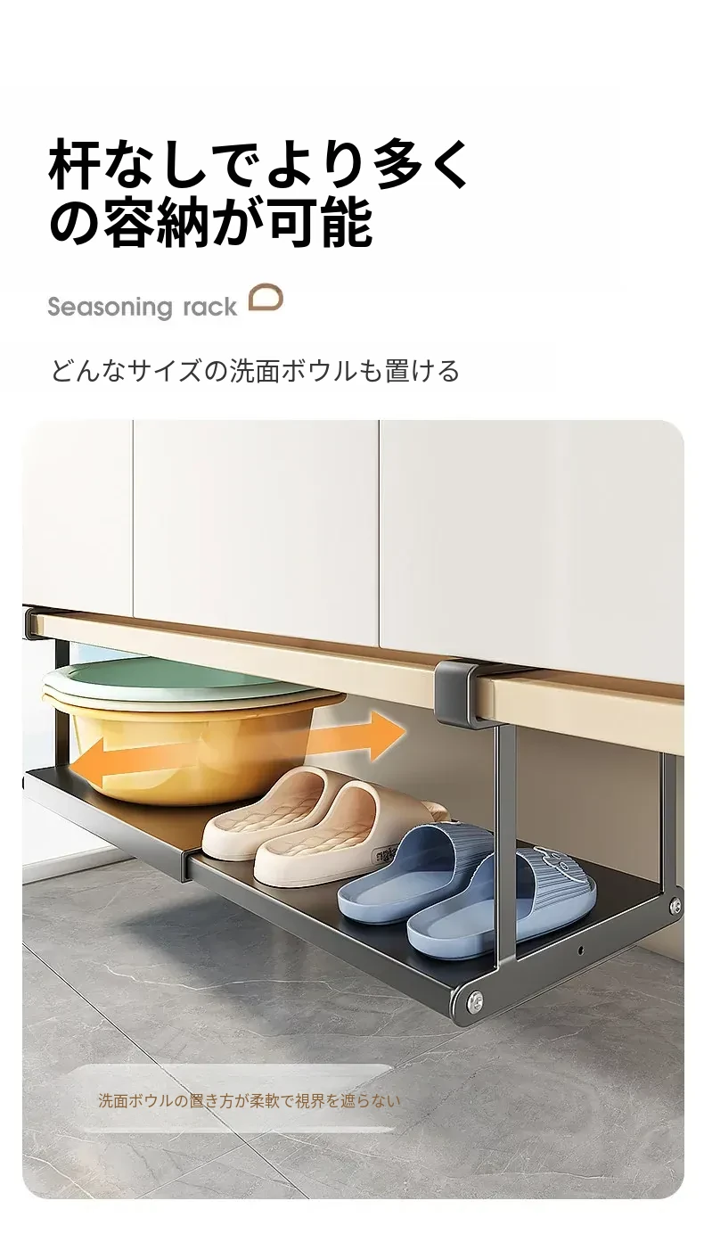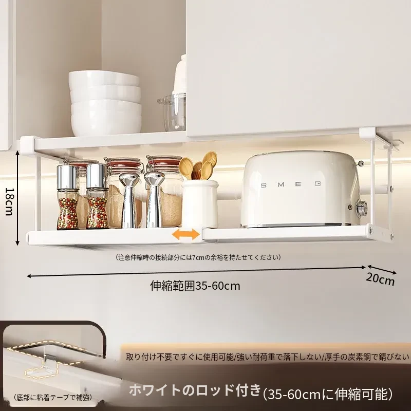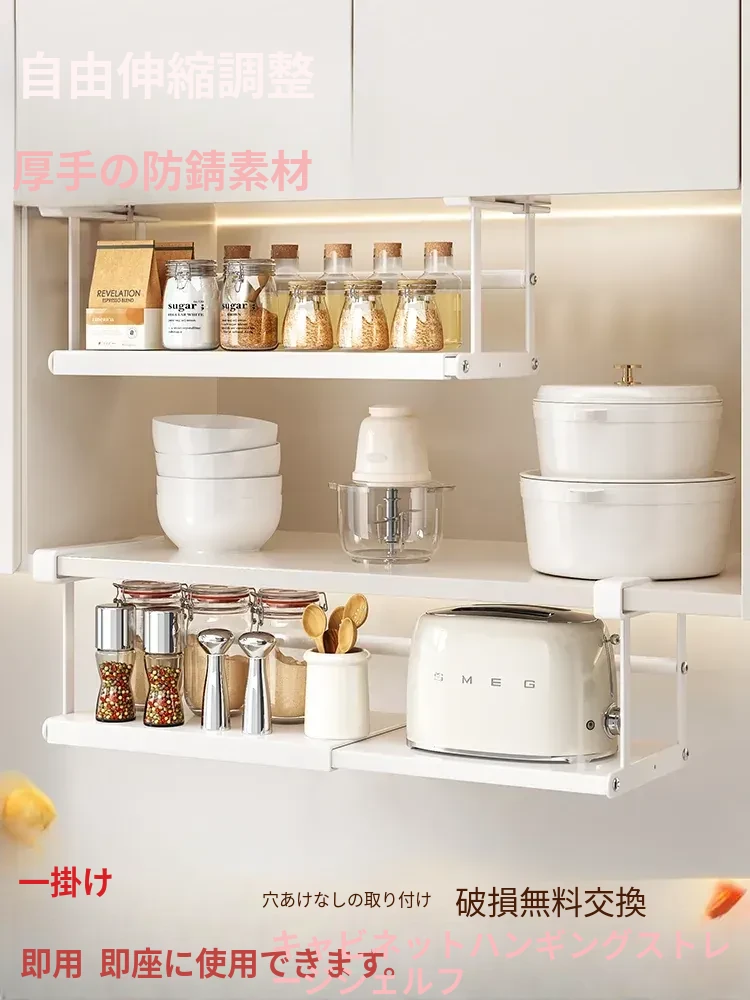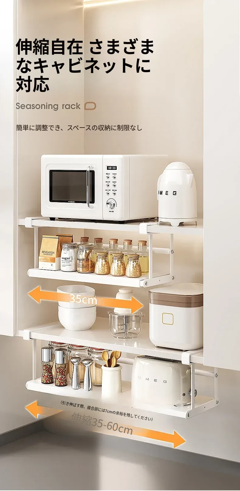 伸縮可能なキッチン収納ラック - 多機能調味料ハンガー、キャビネット下にぴったりの収納神器!整理整頓が簡単にでき、料理がもっと楽しくなるアイテムです。