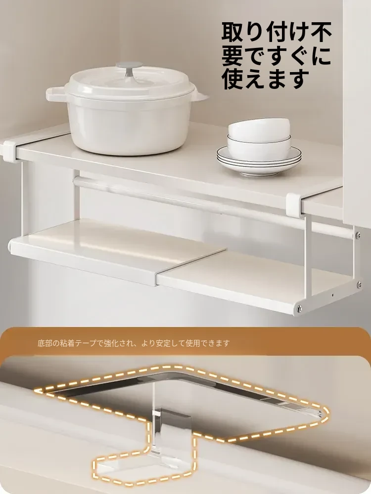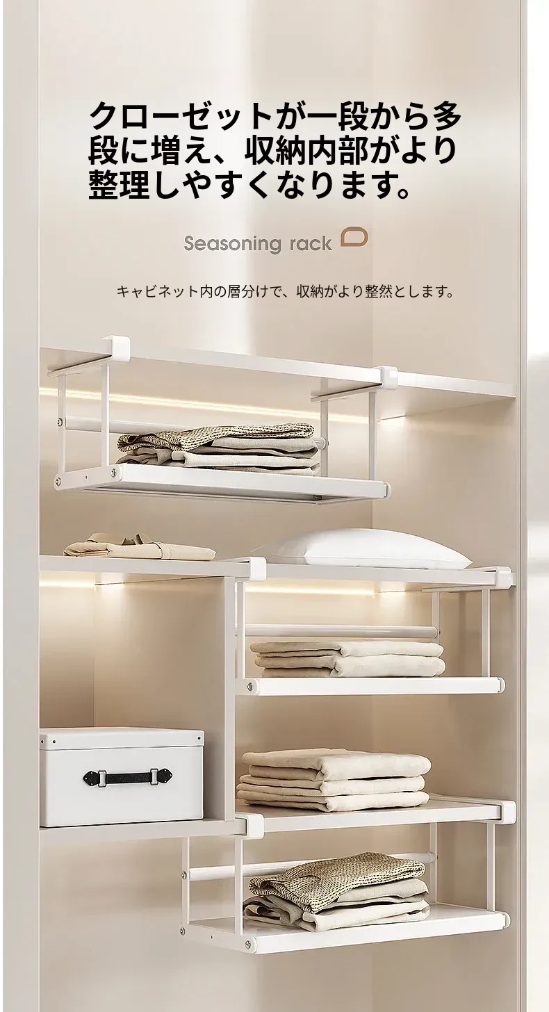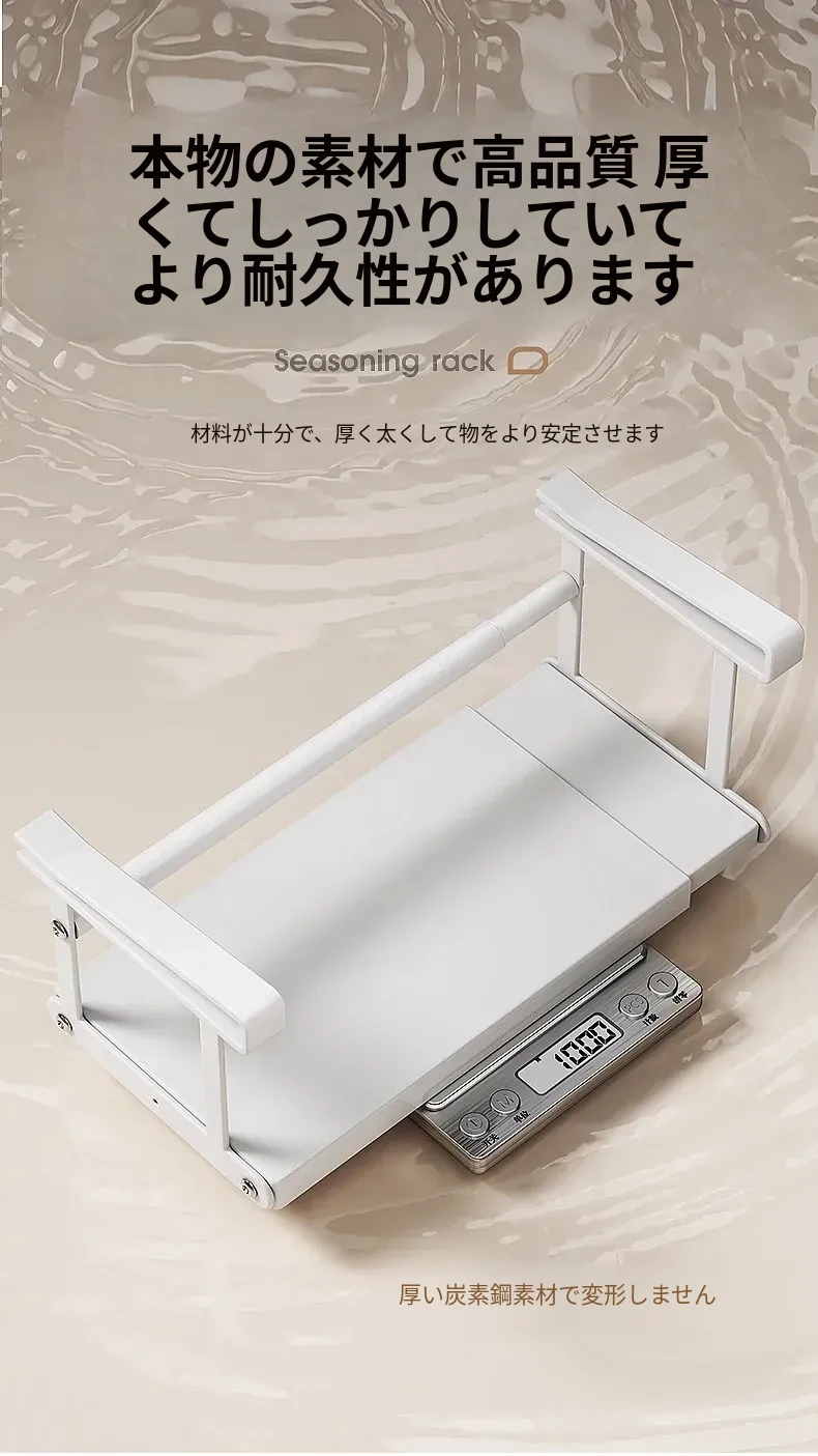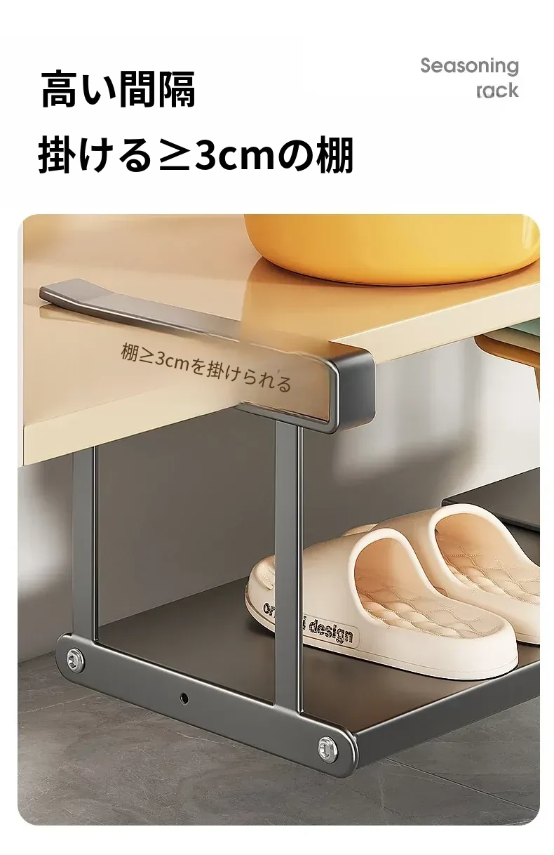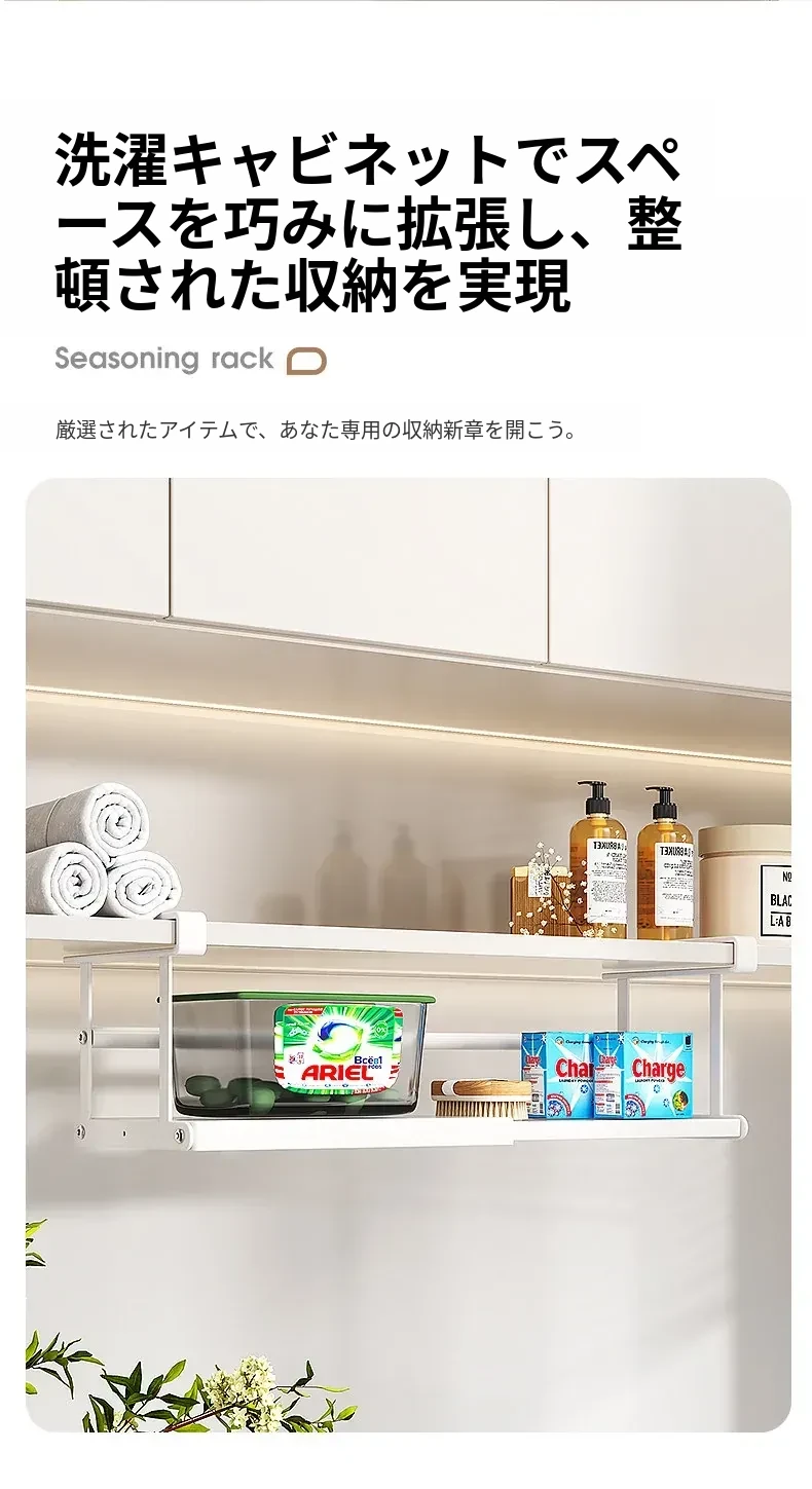 伸縮可能なキッチン収納ラック - 多機能調味料ハンガー、キャビネット下にぴったりの収納神器!整理整頓が簡単にでき、料理がもっと楽しくなるアイテムです。