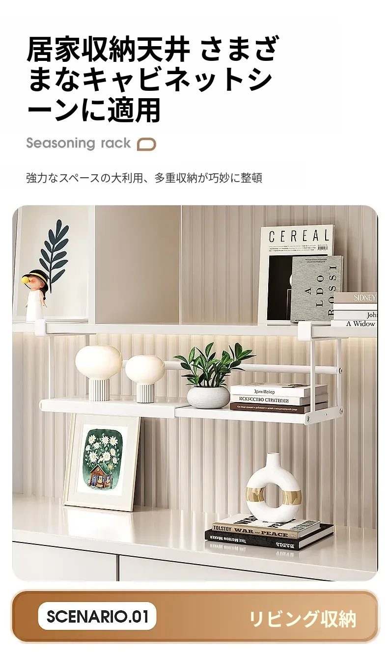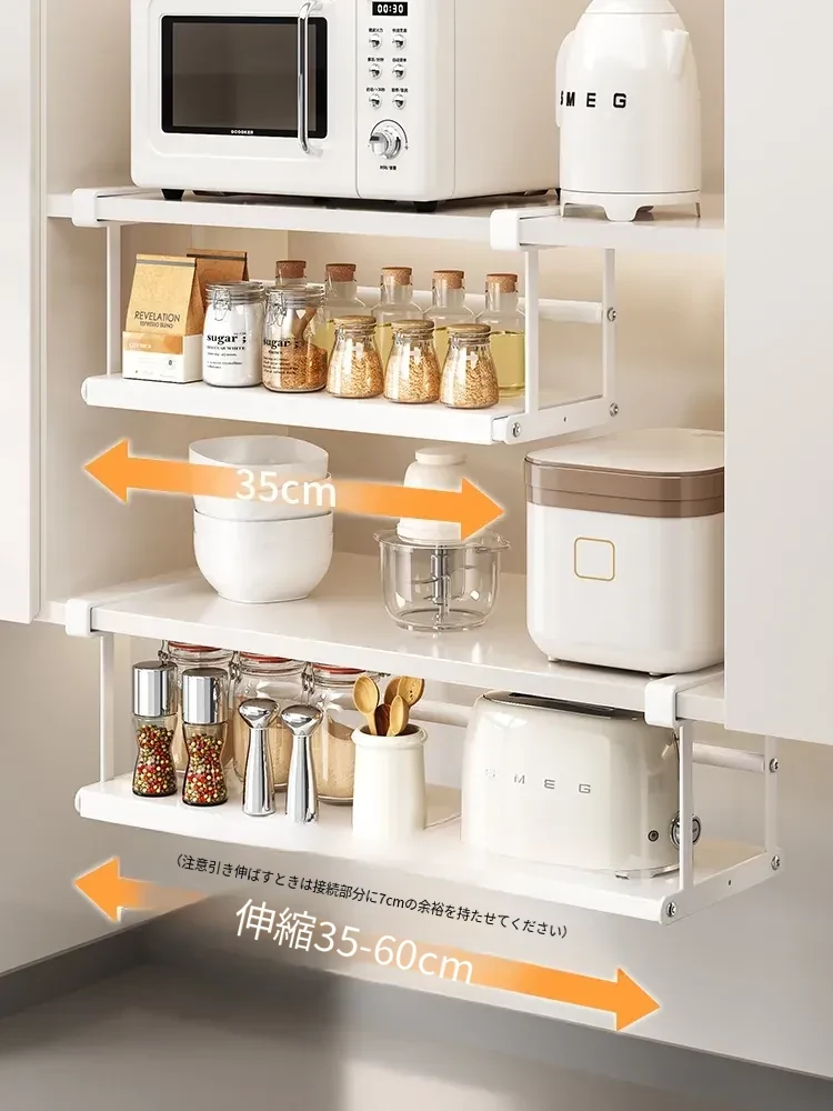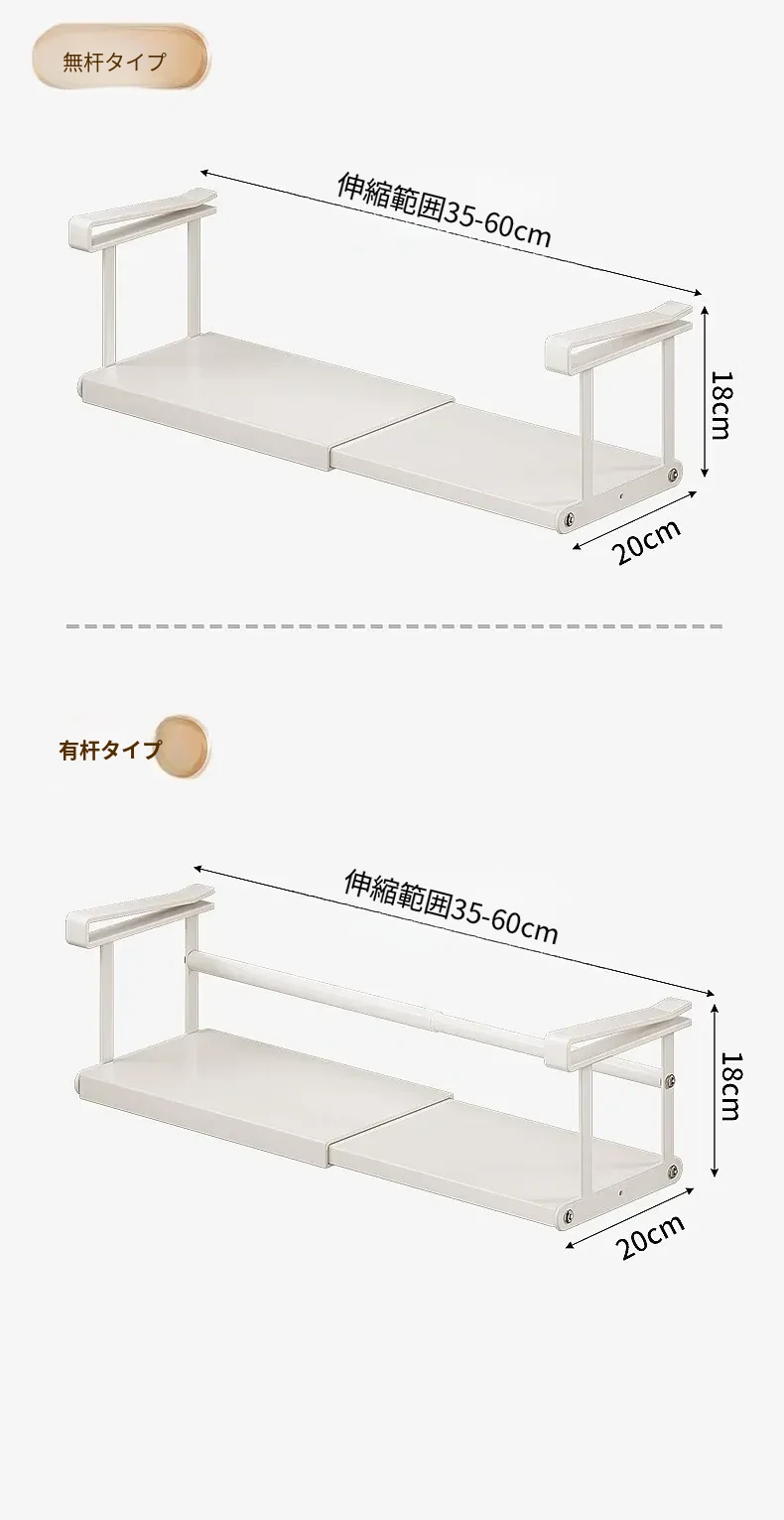 白色●キャビネット収納ラック【伸縮可能35-60CM】