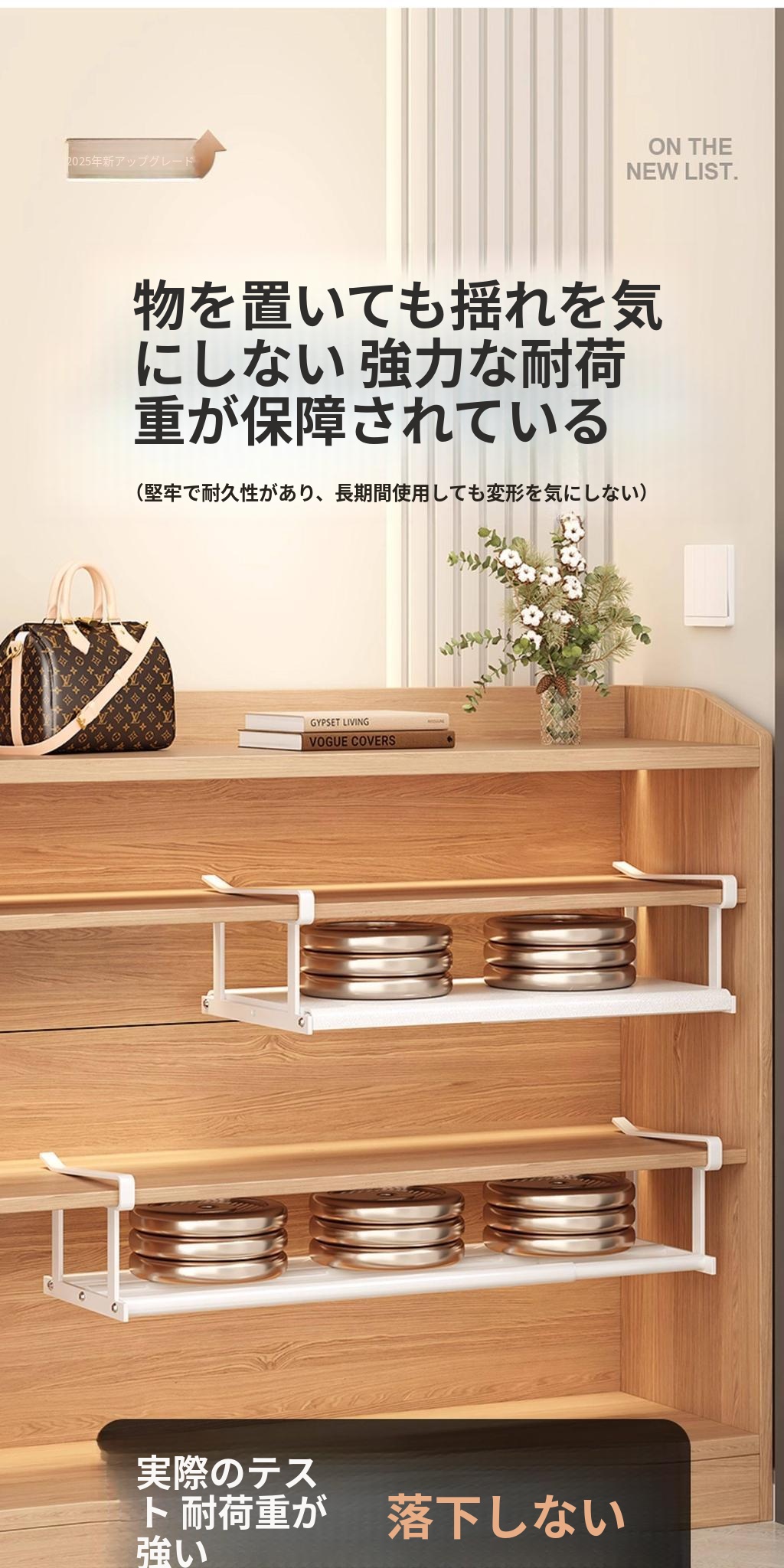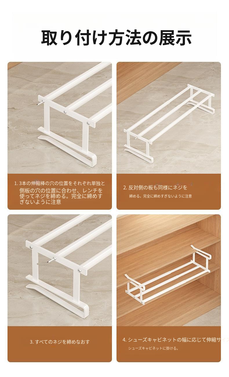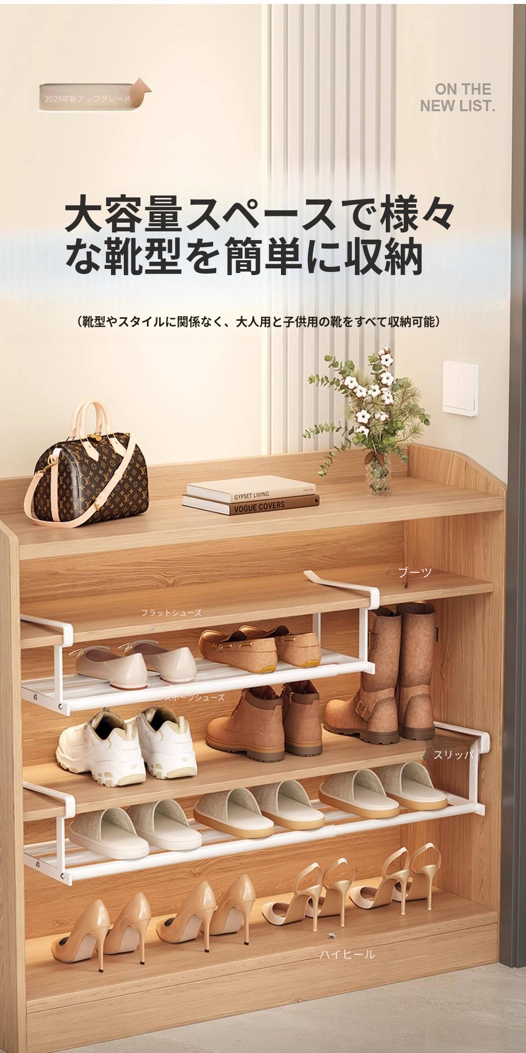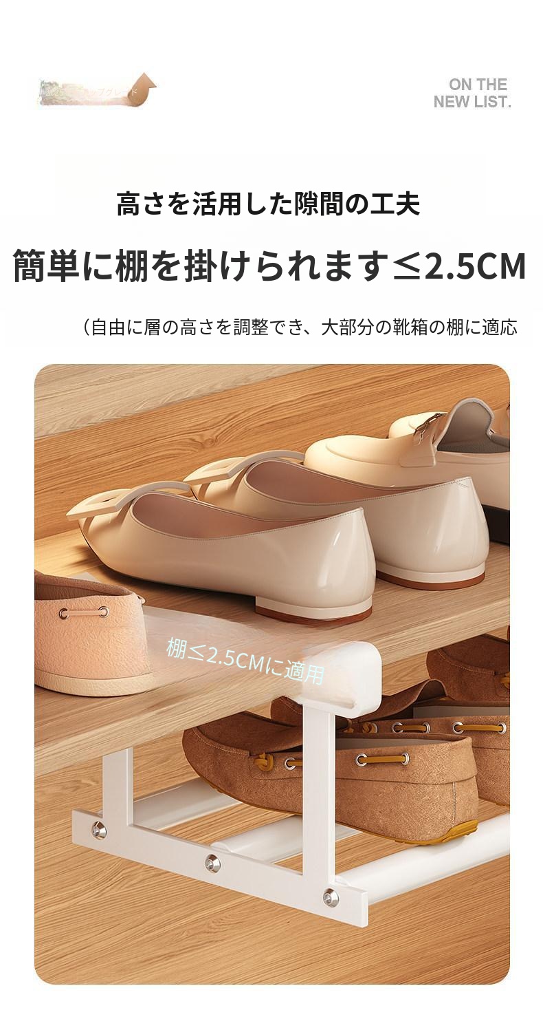 伸縮式シューズラック - 家庭用のスリムデザイン、下に吊り下げることで省スペースを実現!分層棚で靴をスッキリ収納、整理整頓をサポートする便利な収納アイテムです!