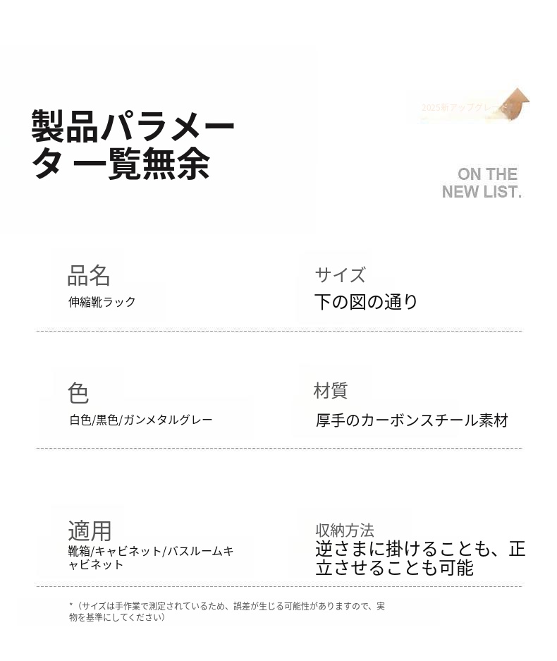 白●棚板伸縮タイプ【伸縮可能32-50CM】
