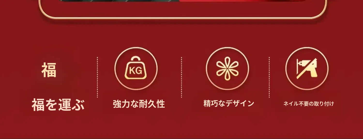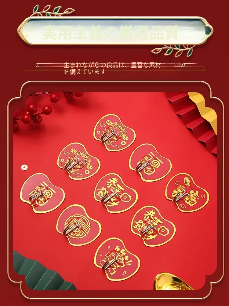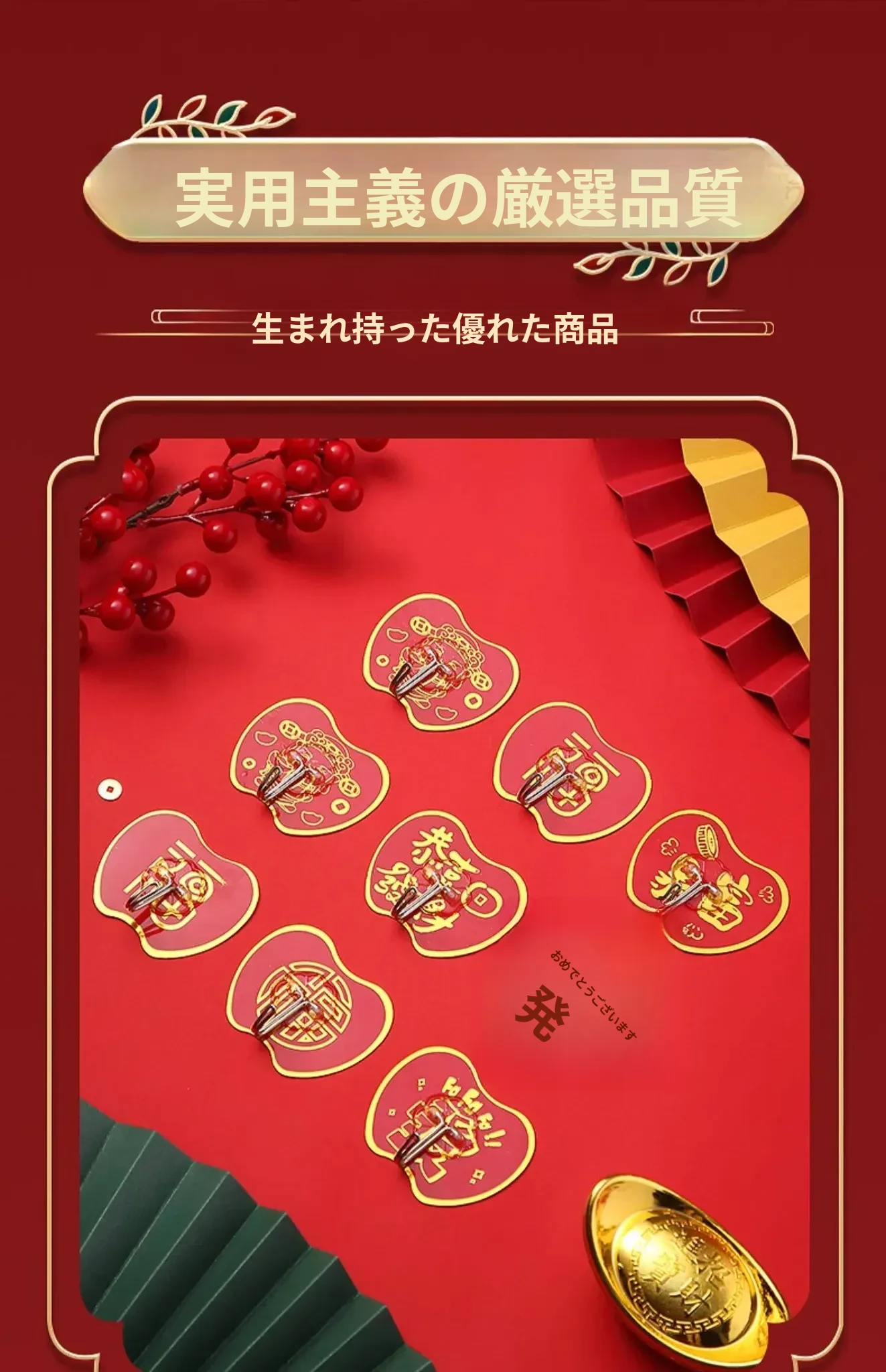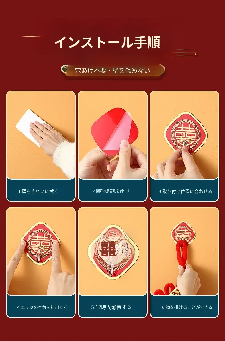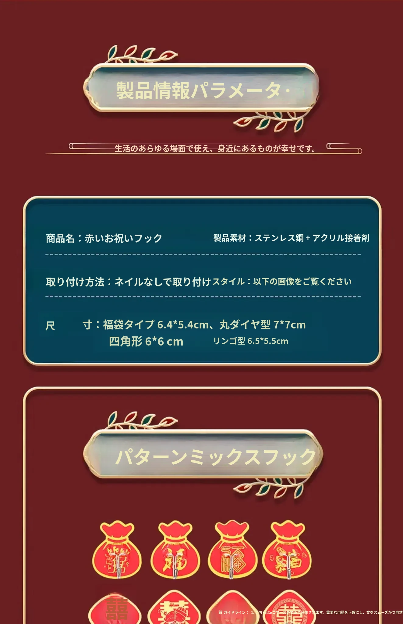 新年を祝う!福字デザインの強力粘着フック - 壁に穴を開けずに簡単取り付け、跡が残らない赤い粘着フックでおしゃれに飾ろう!