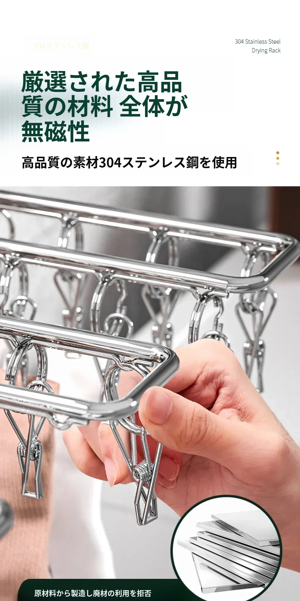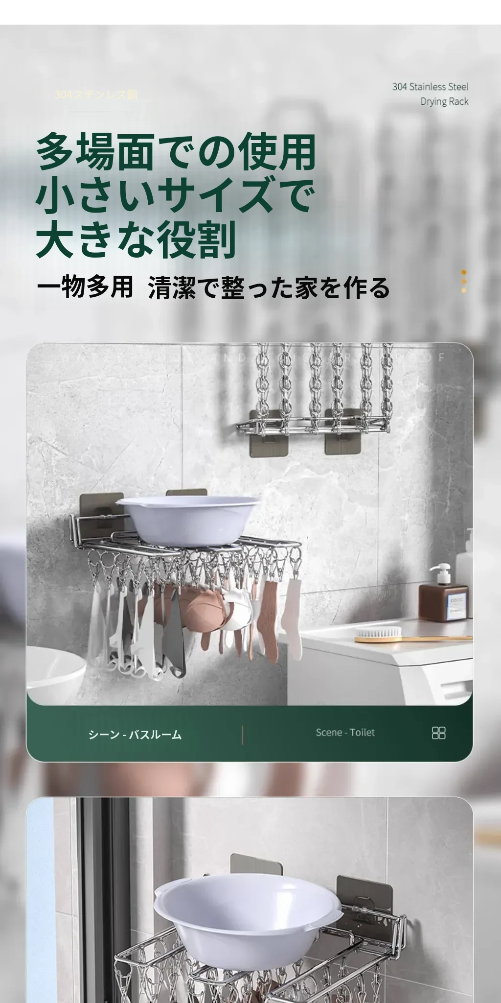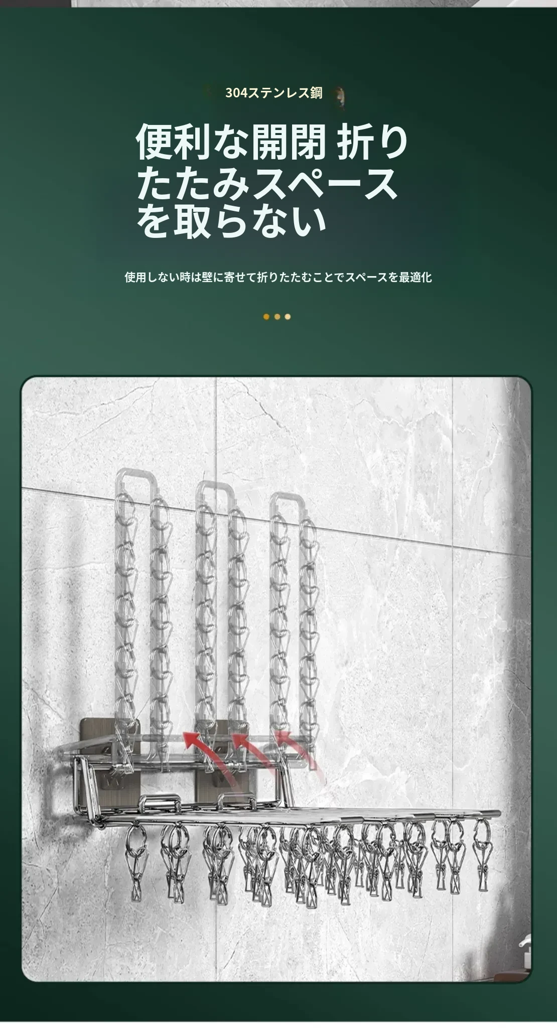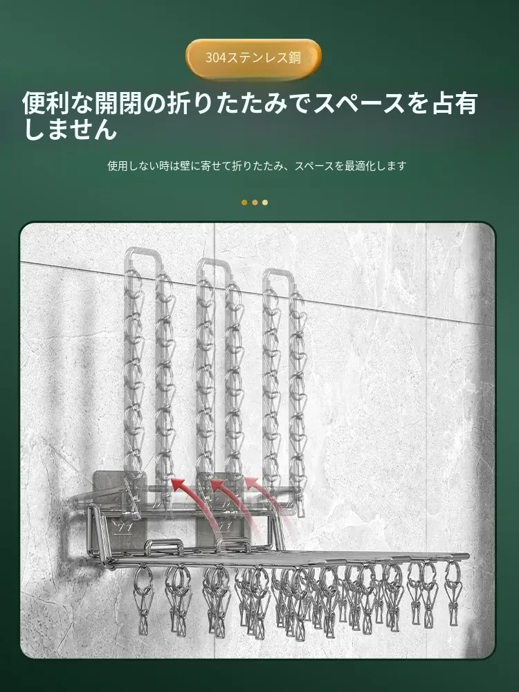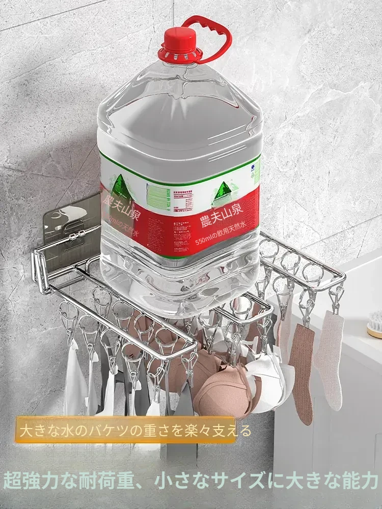 折りたたみ式ハンガー 多機能クリップ付き 壁掛けタイプ 穴あけ不要 バルコニーや浴室で大活躍!下着や靴下をスマートに干せる便利グッズ!
