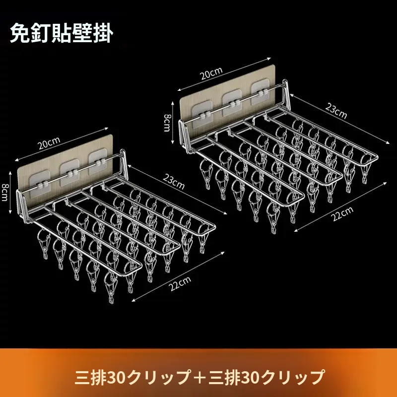 トリプル列●30クリップ【折りたたみ壁掛け靴下ラック】