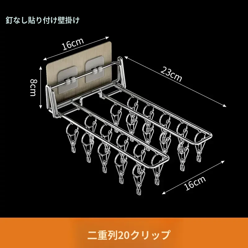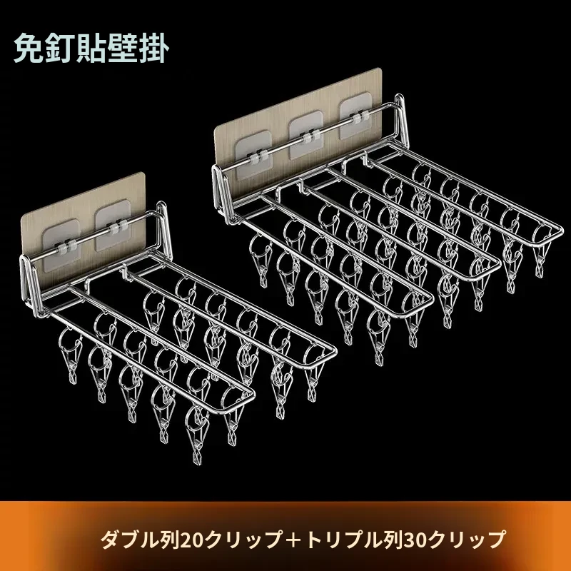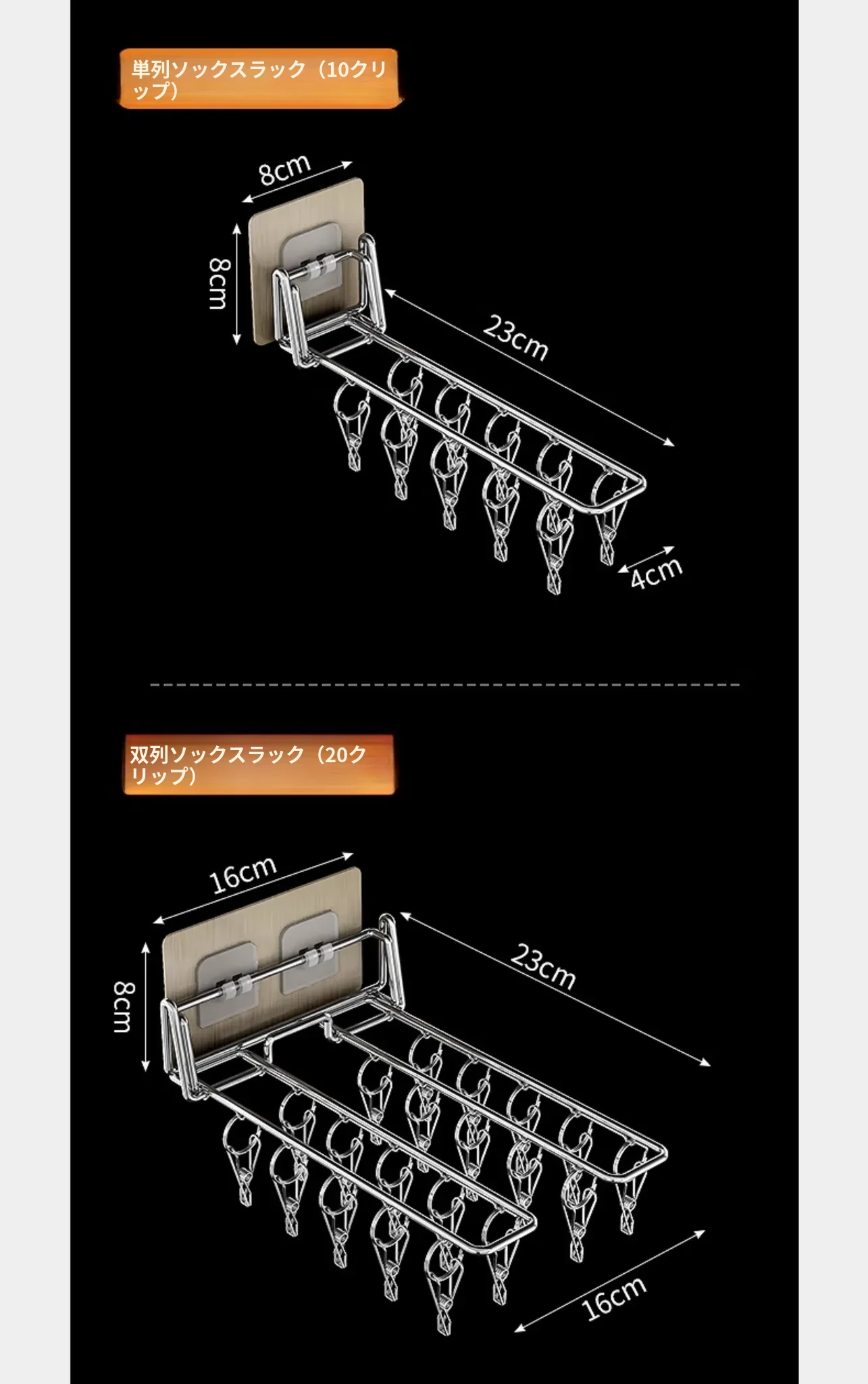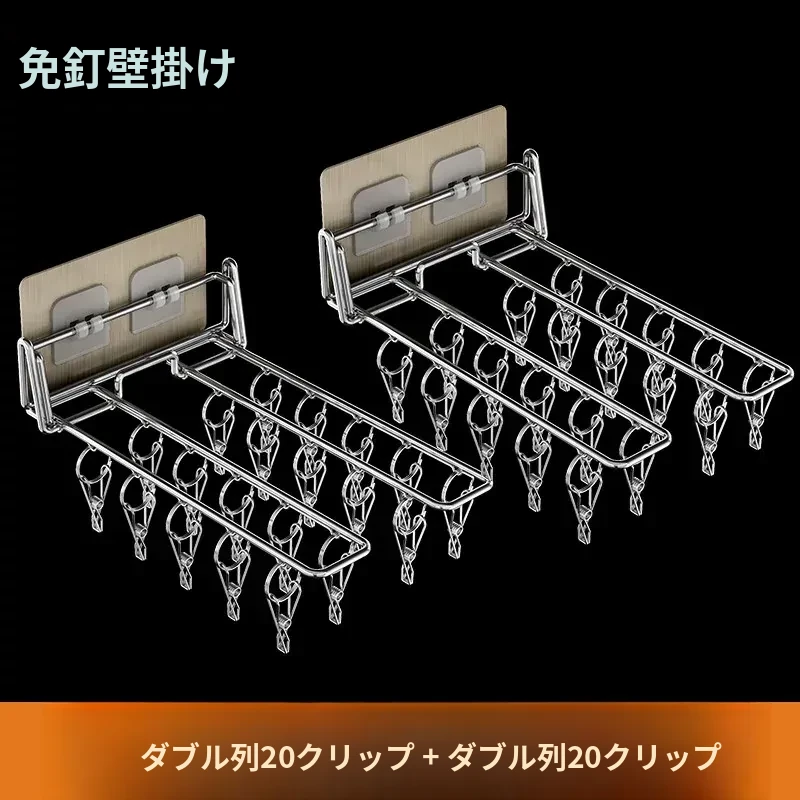 ダブル列●20クリップ【折りたたみ壁掛け靴下ラック】