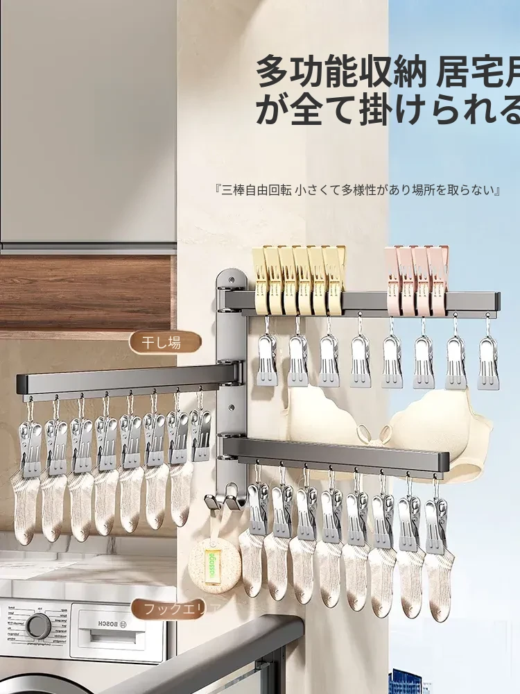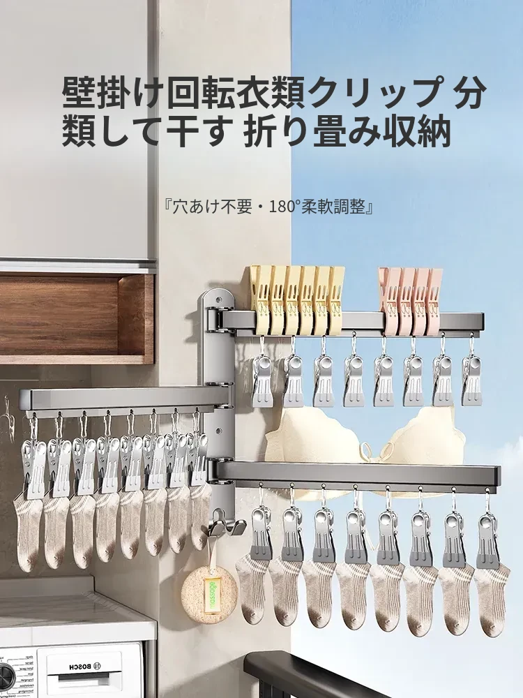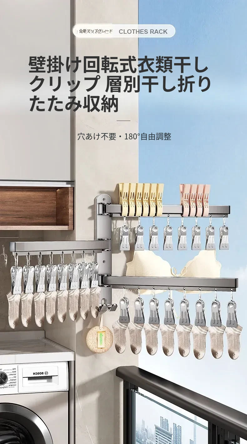 靴下干しスタンド!穴を開けずに折りたたみ可能、下着や靴下をすっきり収納できる便利アイテム。バルコニーで大活躍する多機能回転クリップ付き!あなたの洗濯ライフをもっと快適に!