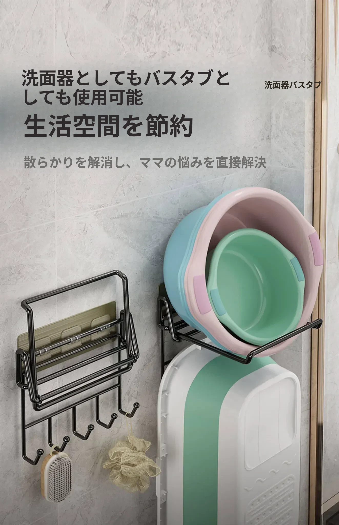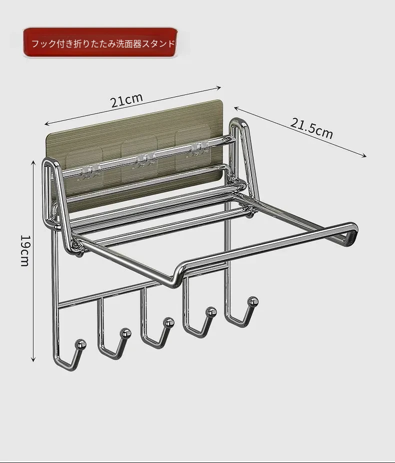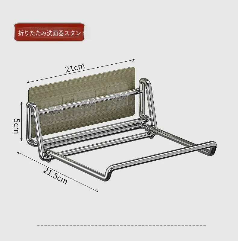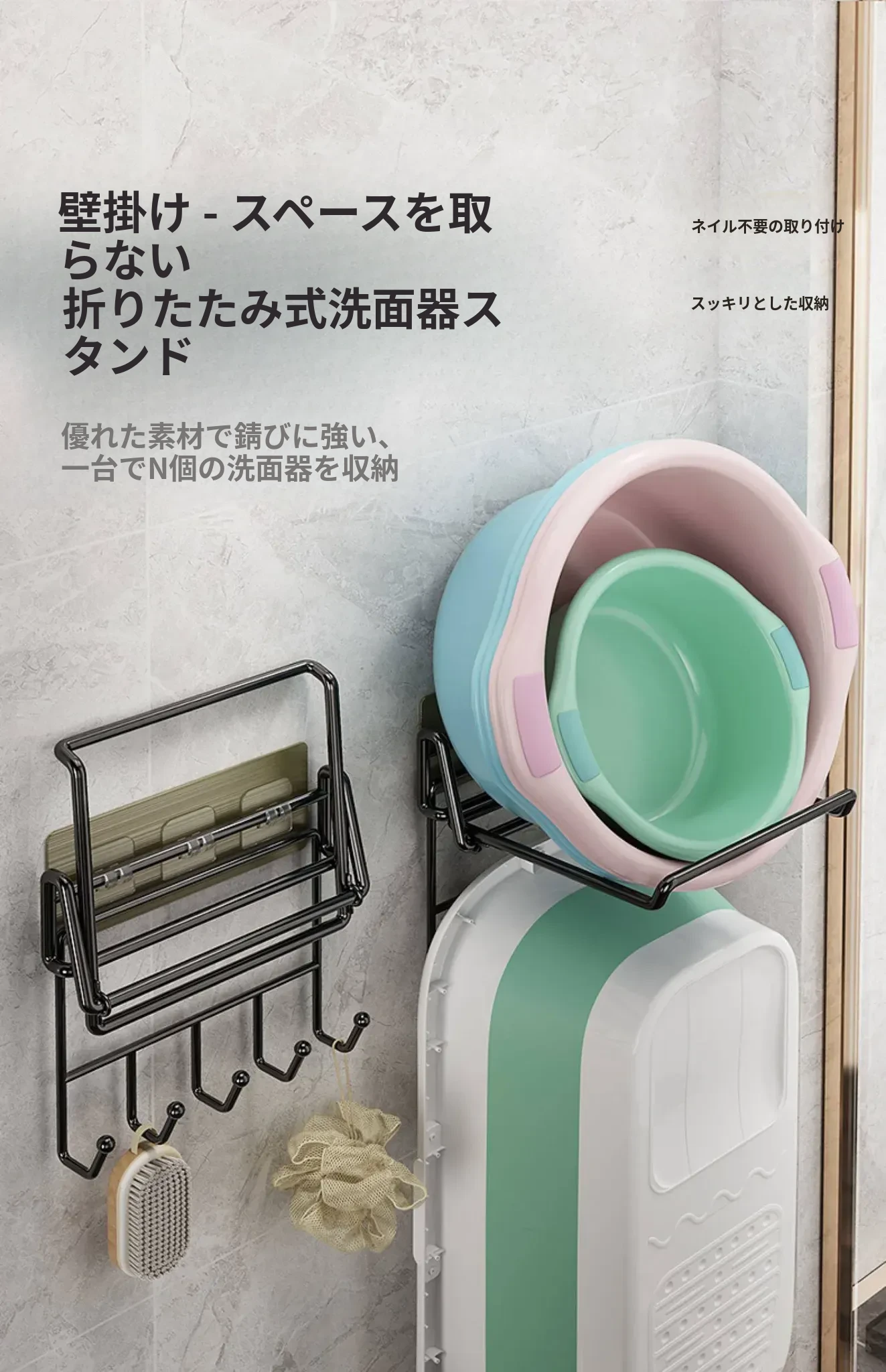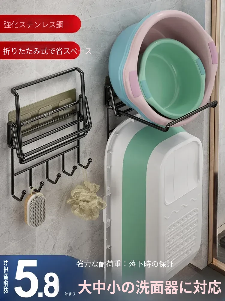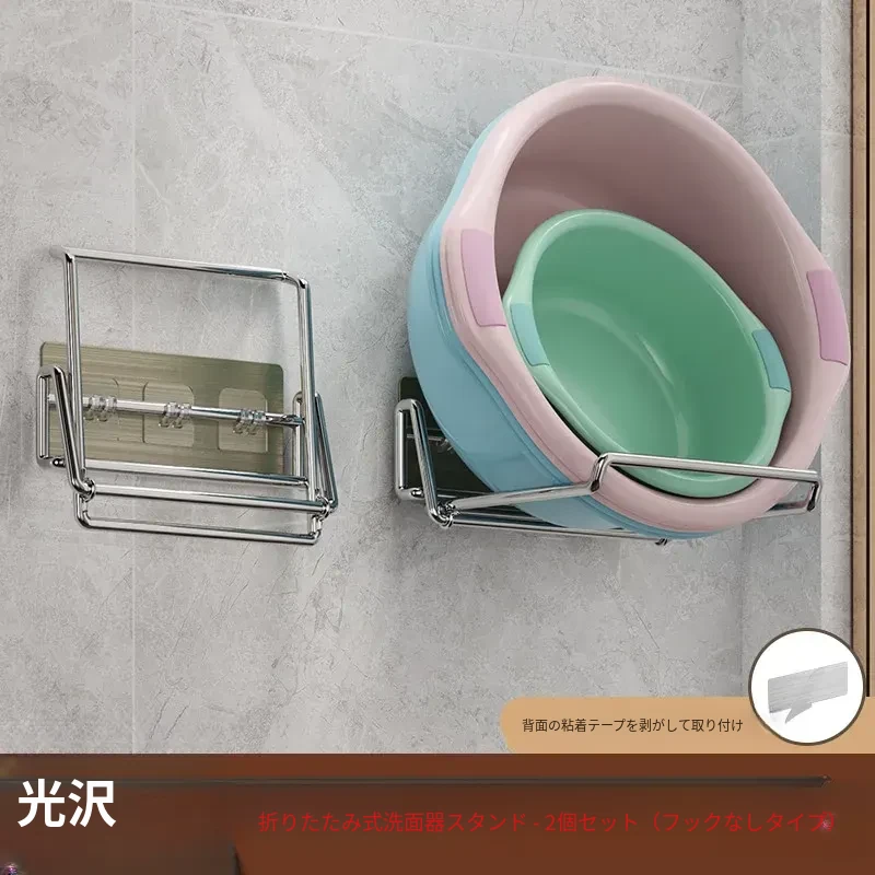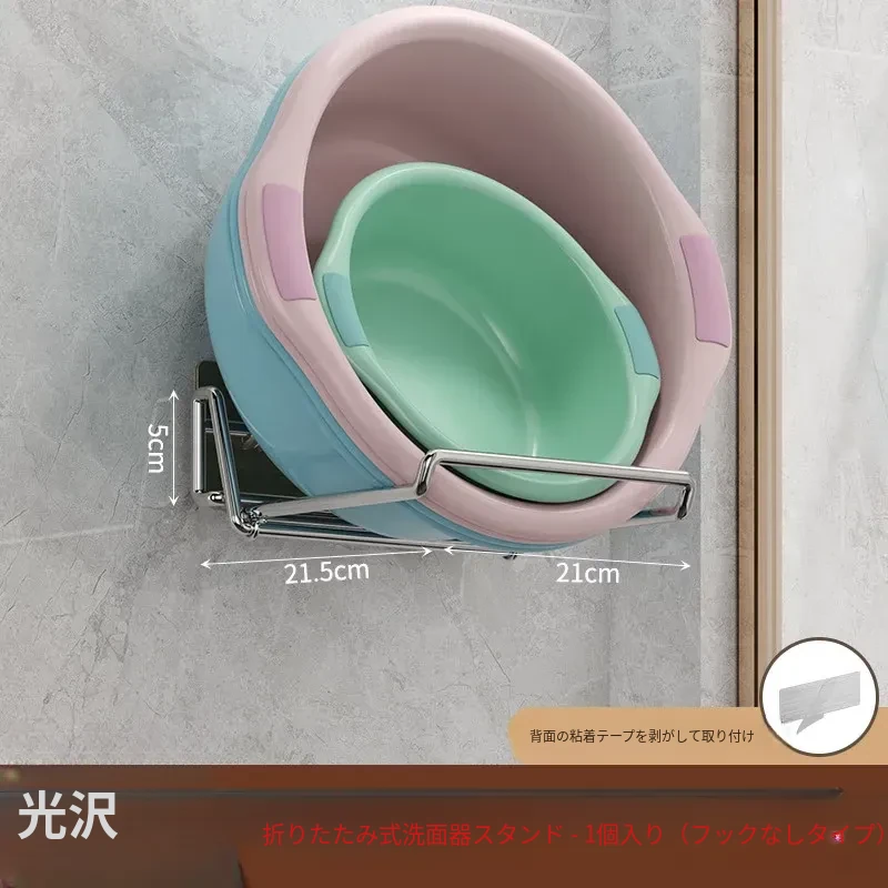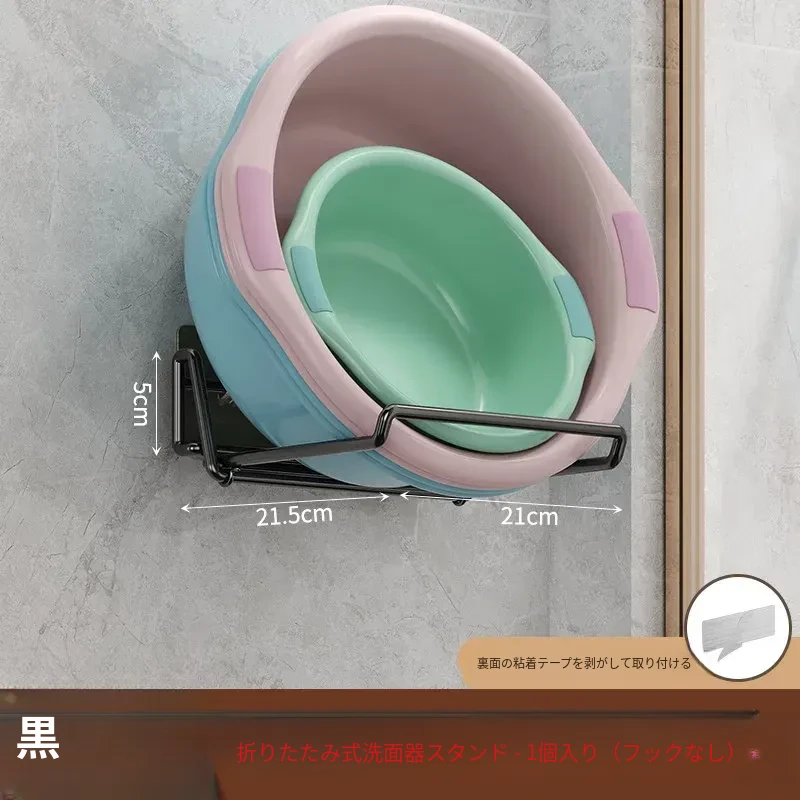 折りたたみ式壁掛け洗面器スタンド - トイレやバスルームにぴったり!ネジ不要で簡単取り付け、洗面器や小物をすっきり収納できる便利アイテム。おしゃれなデザインで、お部屋をスッキリ整えましょう!