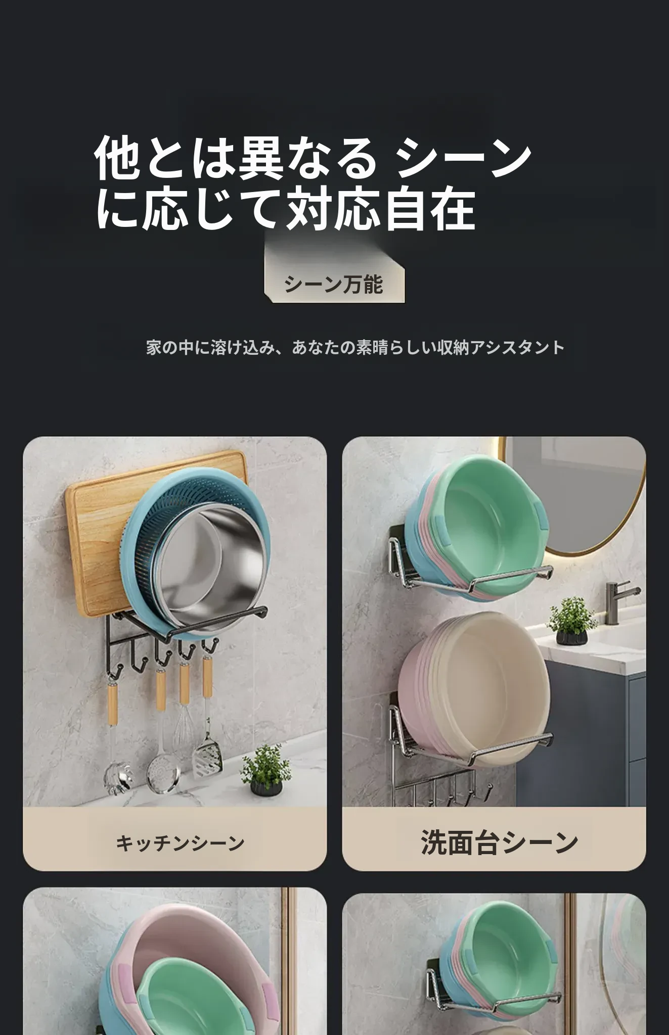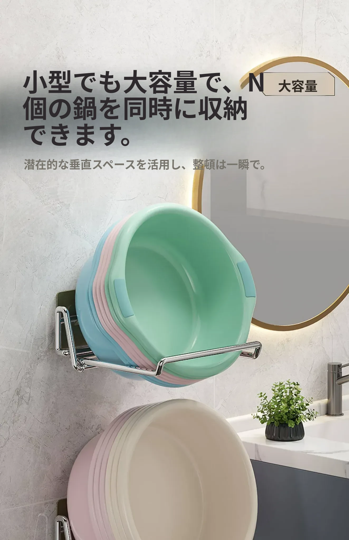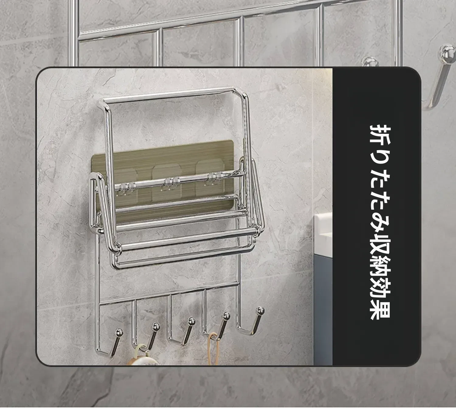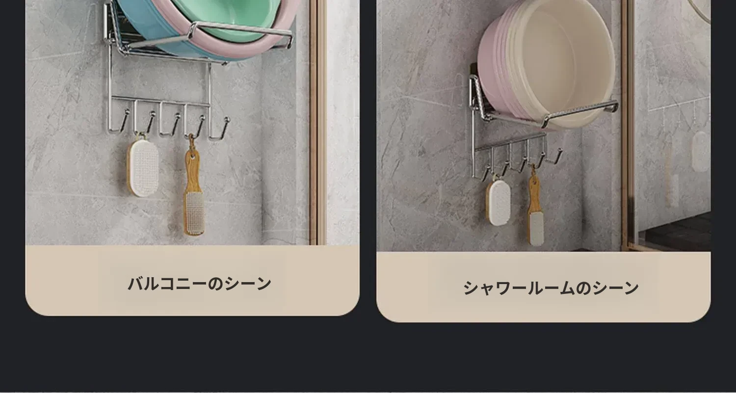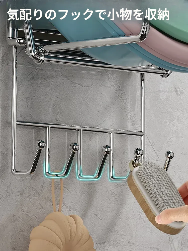 折りたたみ式壁掛け洗面器スタンド - トイレやバスルームにぴったり!ネジ不要で簡単取り付け、洗面器や小物をすっきり収納できる便利アイテム。おしゃれなデザインで、お部屋をスッキリ整えましょう!