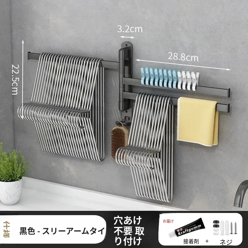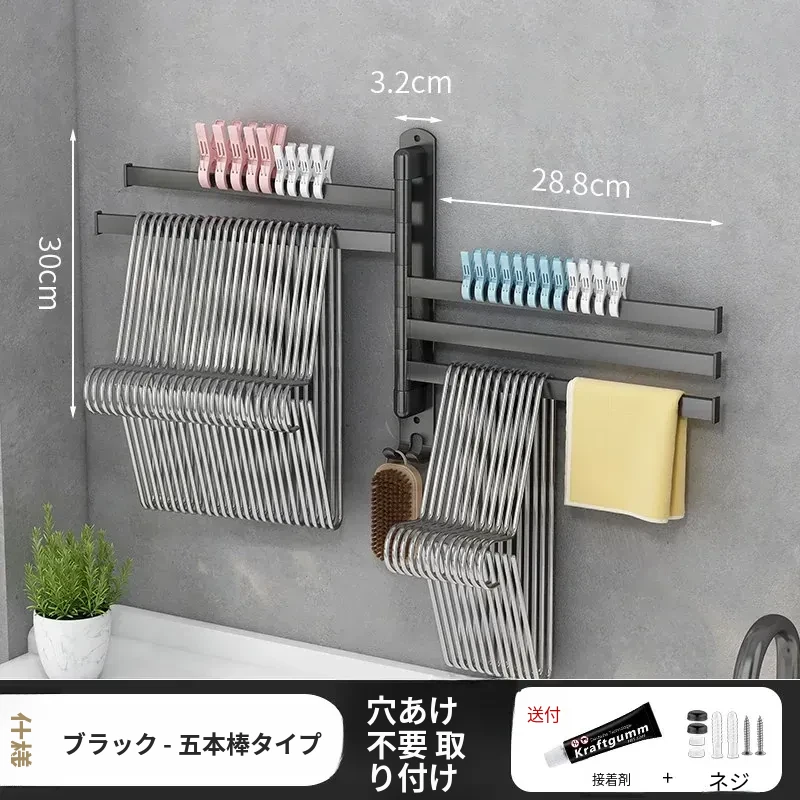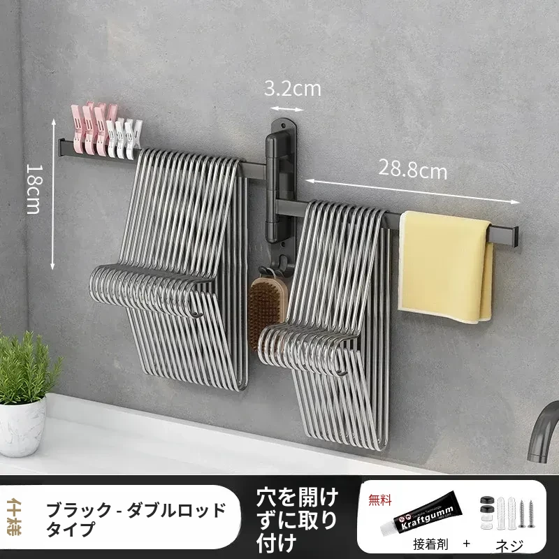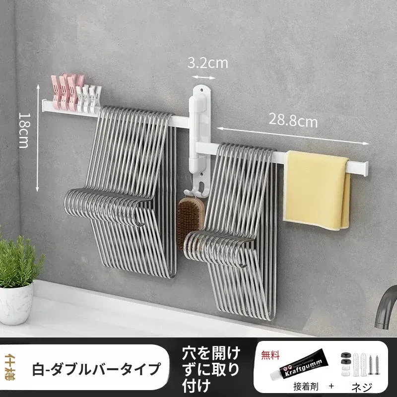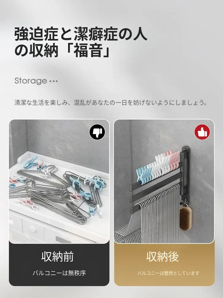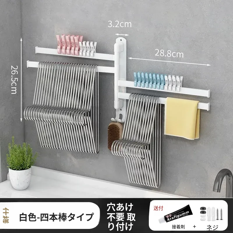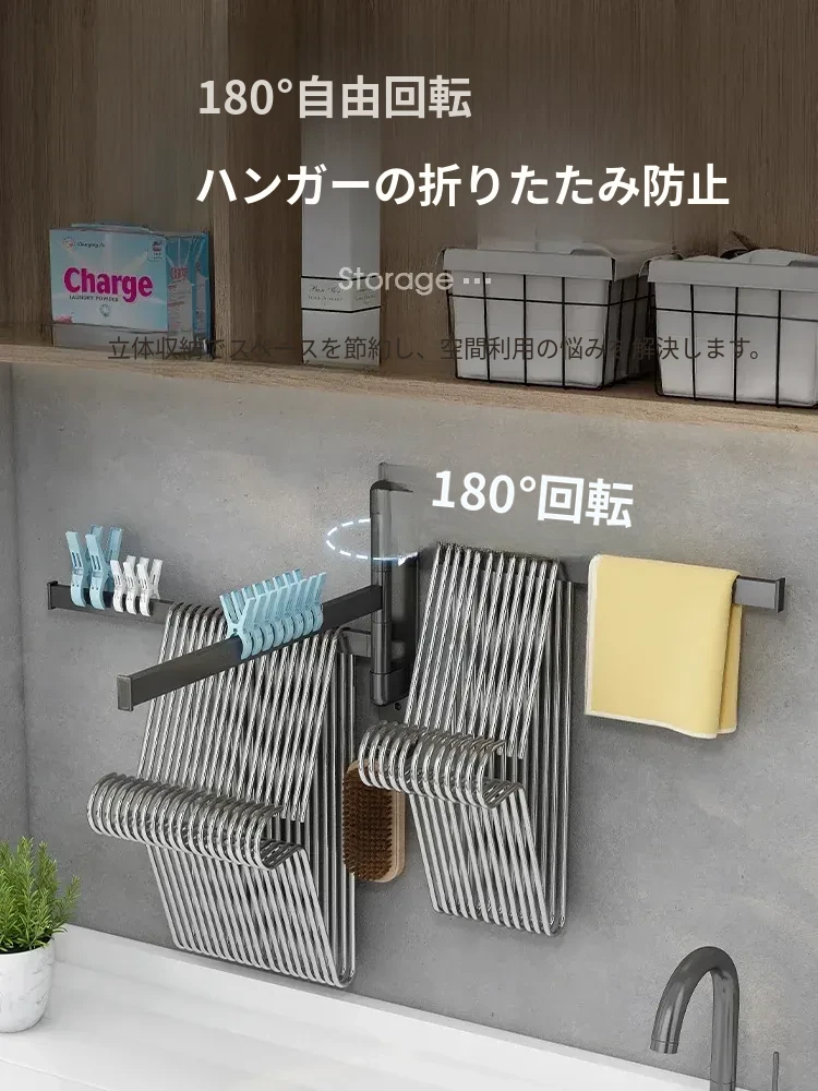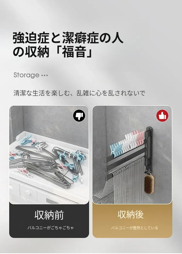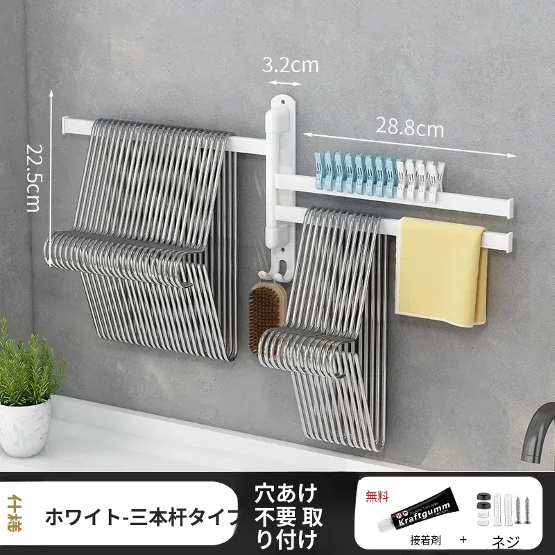 バルコニー整理収納ハンガー!折りたたみ式衣類干しラック、壁掛けフックで穴なし設置可能。スペースを有効活用して、すっきりとした空間を実現する便利なアイテム!