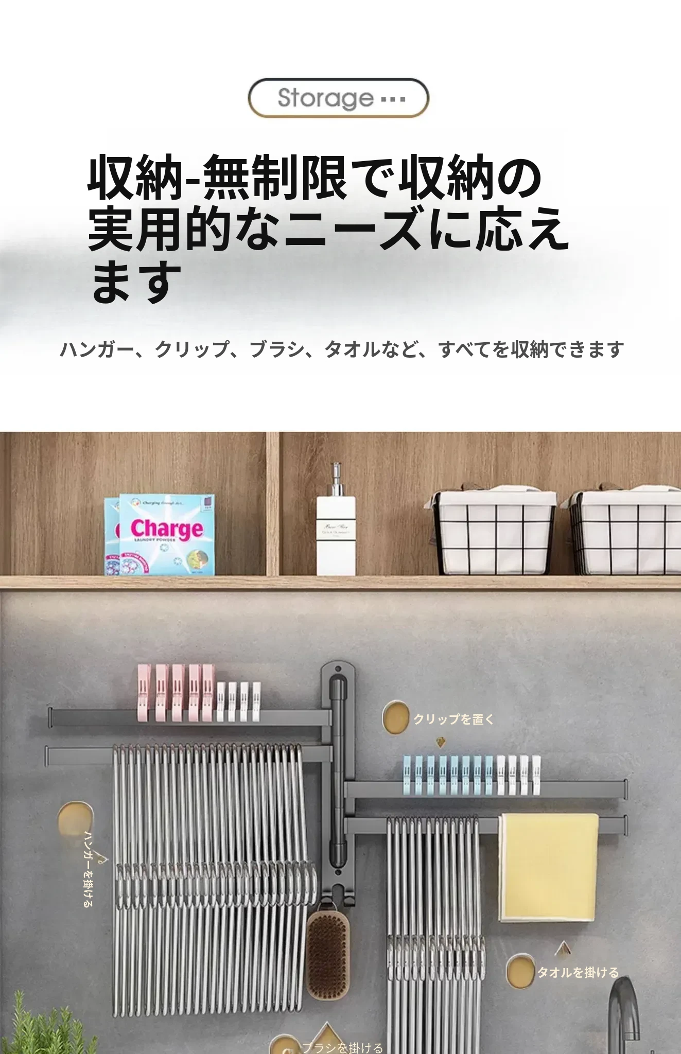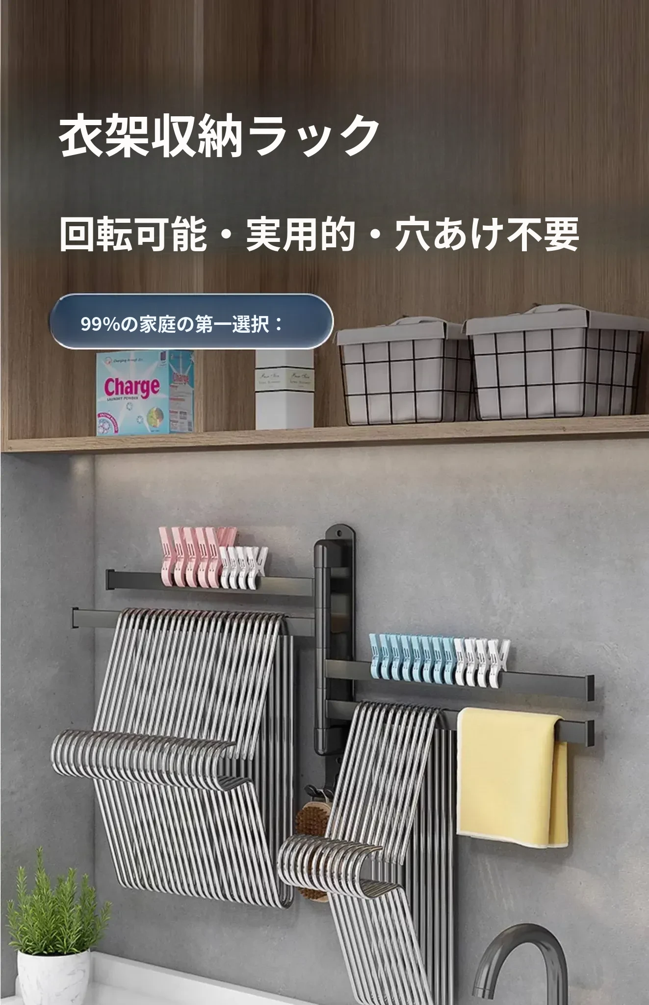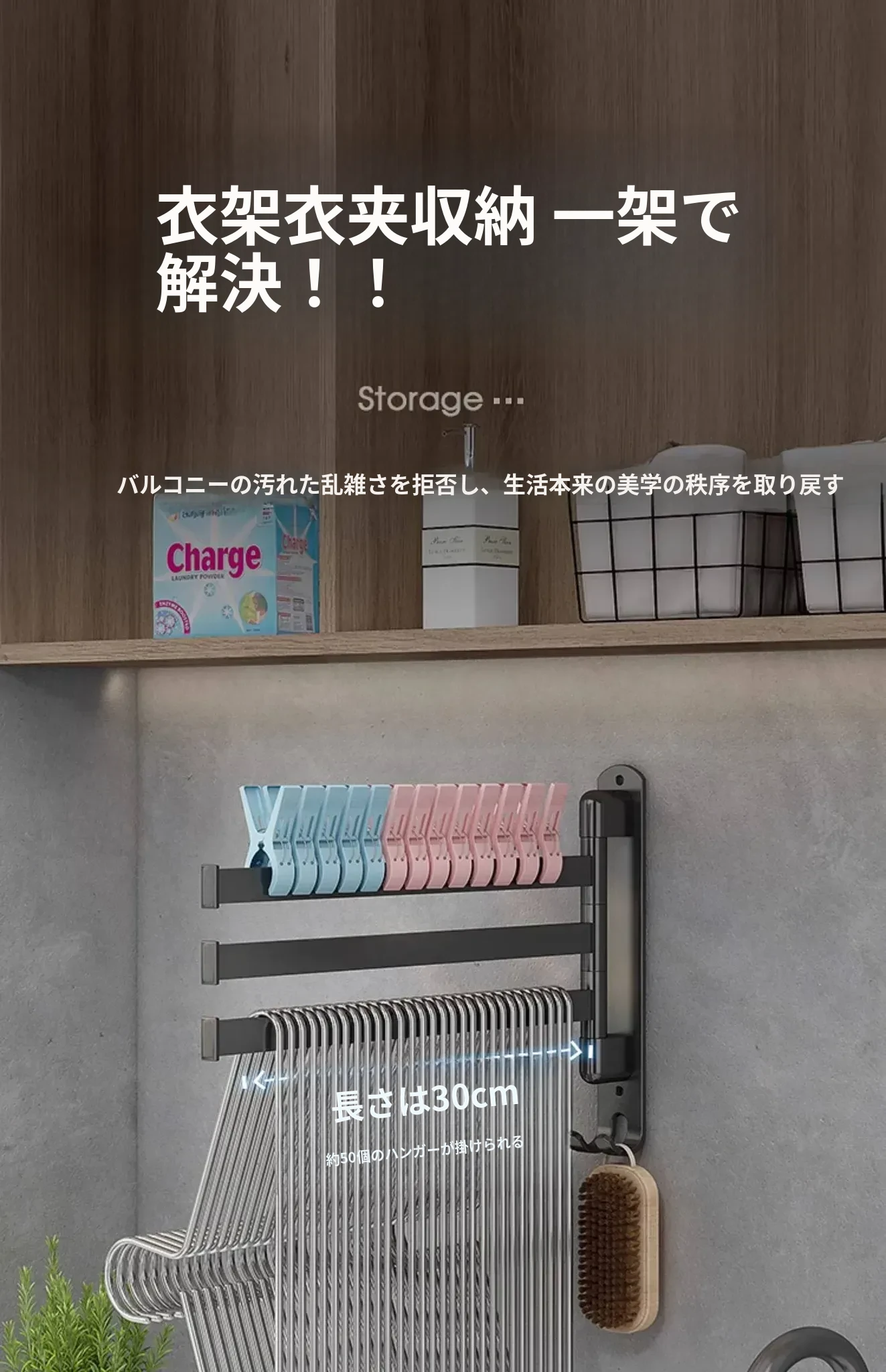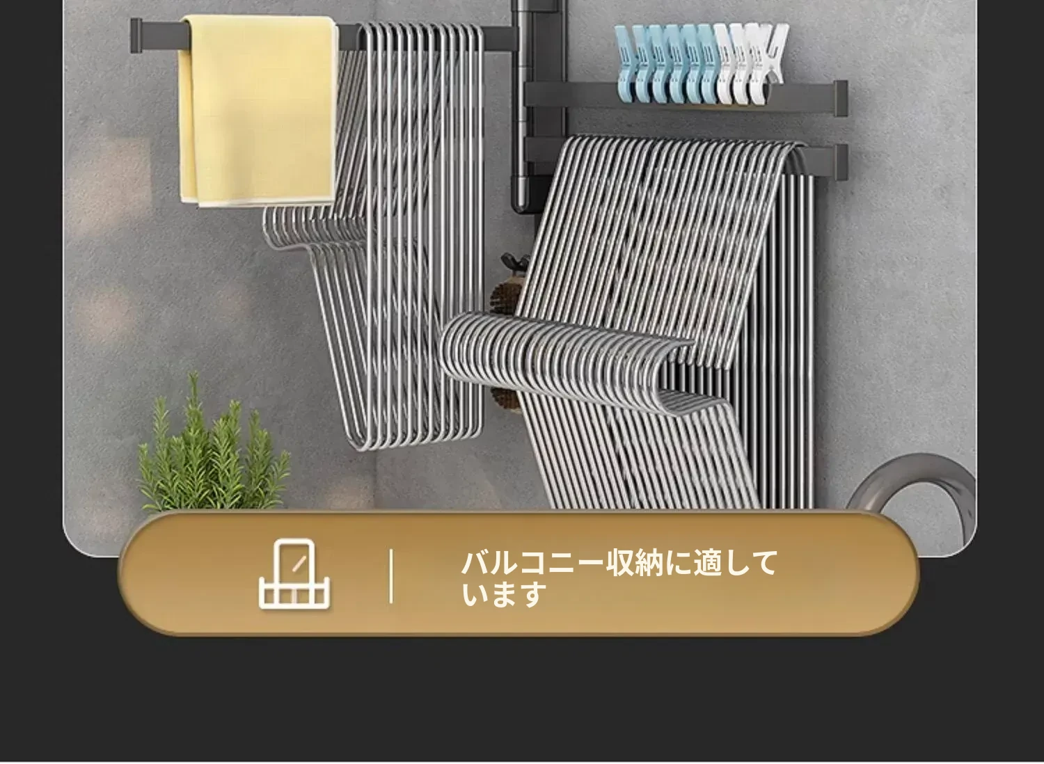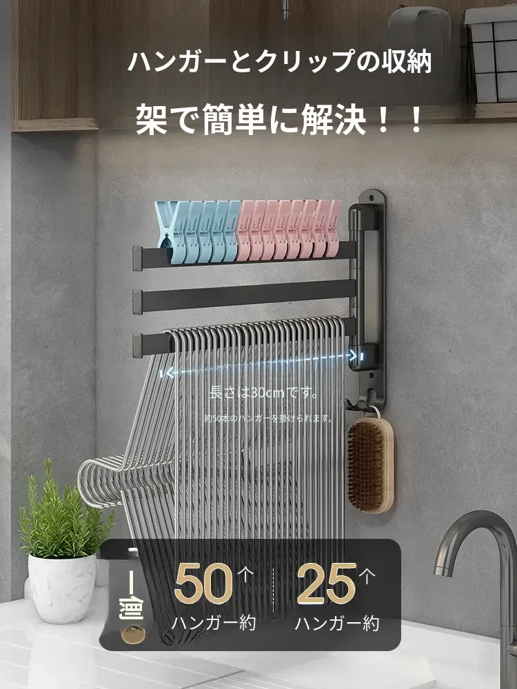 バルコニー整理収納ハンガー!折りたたみ式衣類干しラック、壁掛けフックで穴なし設置可能。スペースを有効活用して、すっきりとした空間を実現する便利なアイテム!
