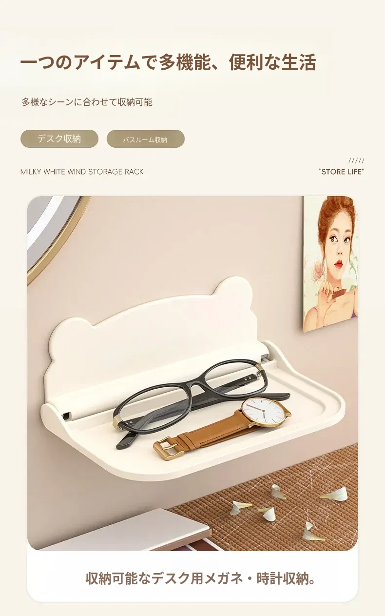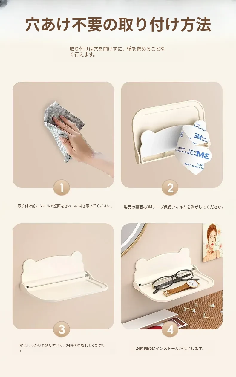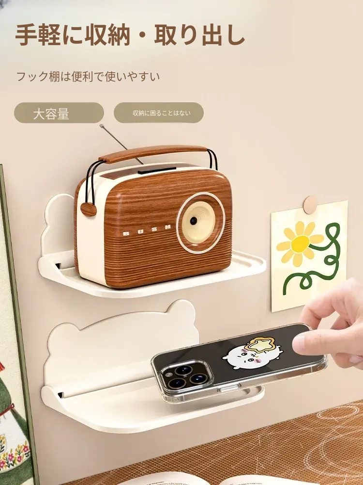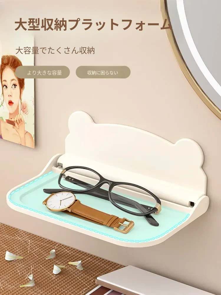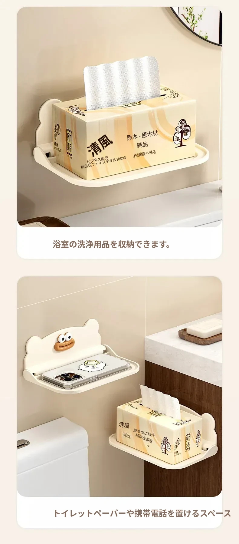 トイレやバスルームに最適!壁掛け折りたたみティッシュホルダー・スマホスタンド付き!穴を開けずに簡単取り付け!寮や寝室でも使える便利な収納ラック!