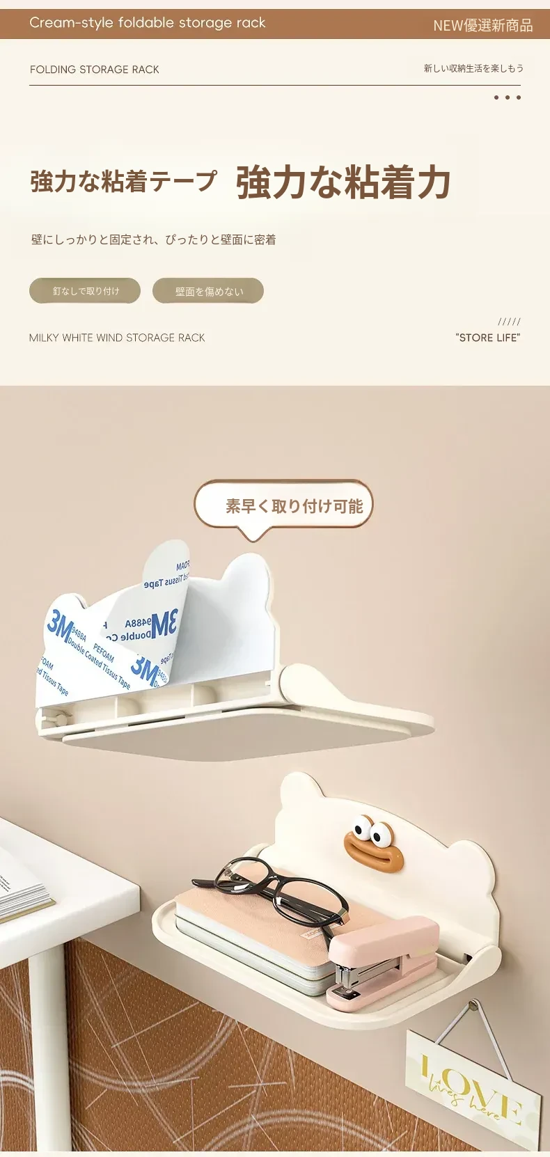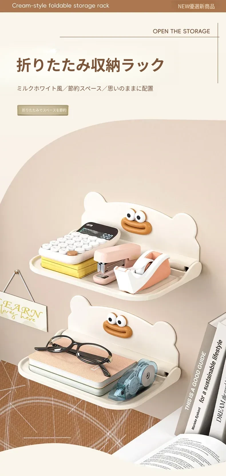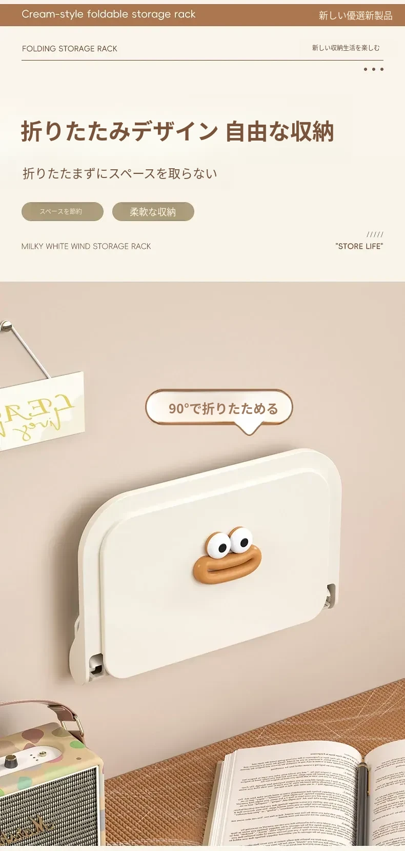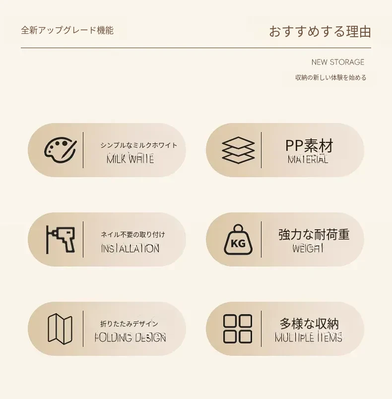 ミルクホワイト【1個入り】折りたたみ収納ラック