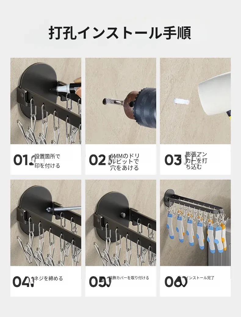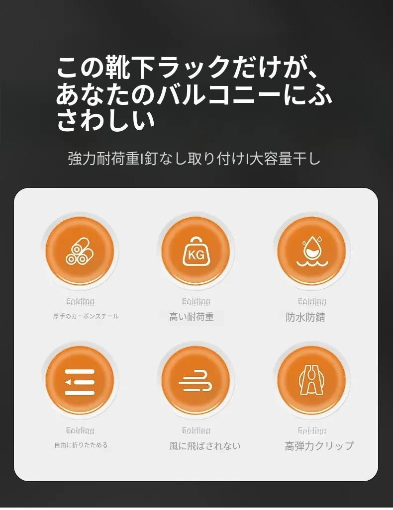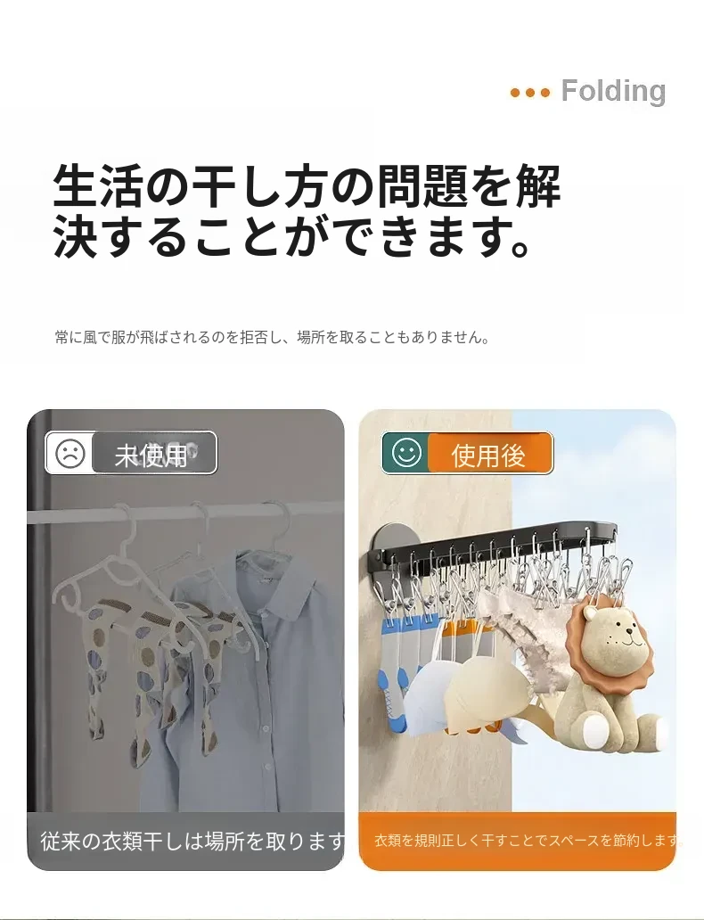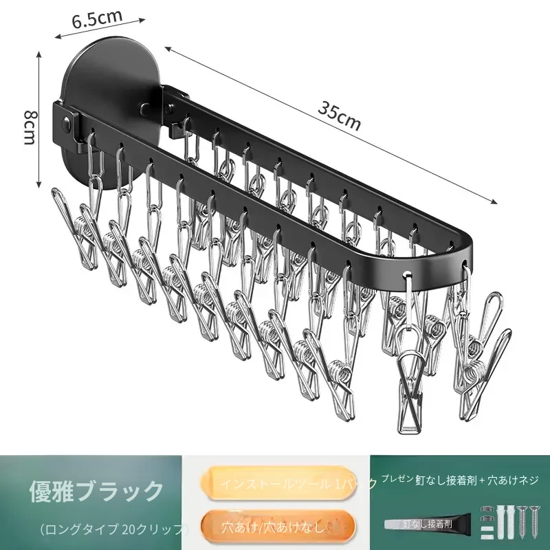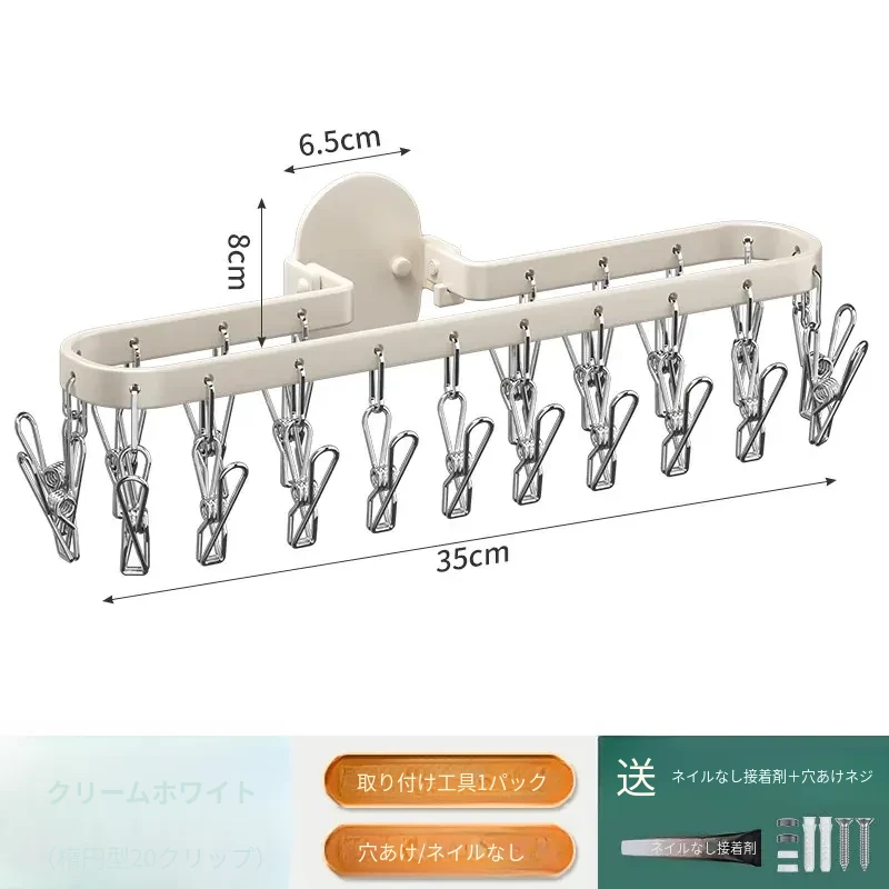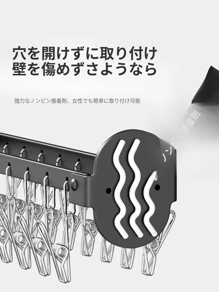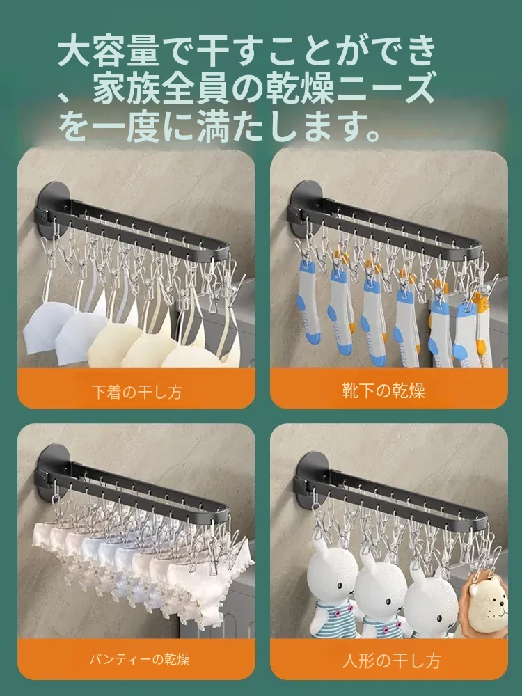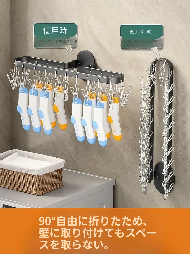 折りたたみ式靴下干し神器!穴あけ不要のバルコニー壁掛け多機能衣類干しラック。多クリップ付きで家庭用に最適、衣類も靴下もすっきり乾かせる便利アイテム!