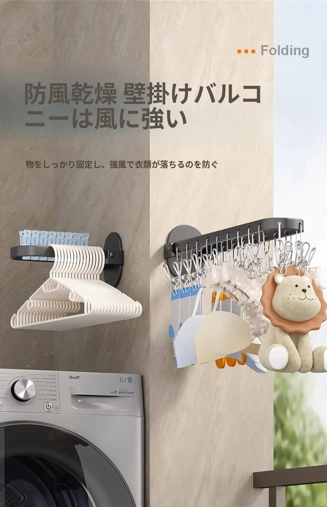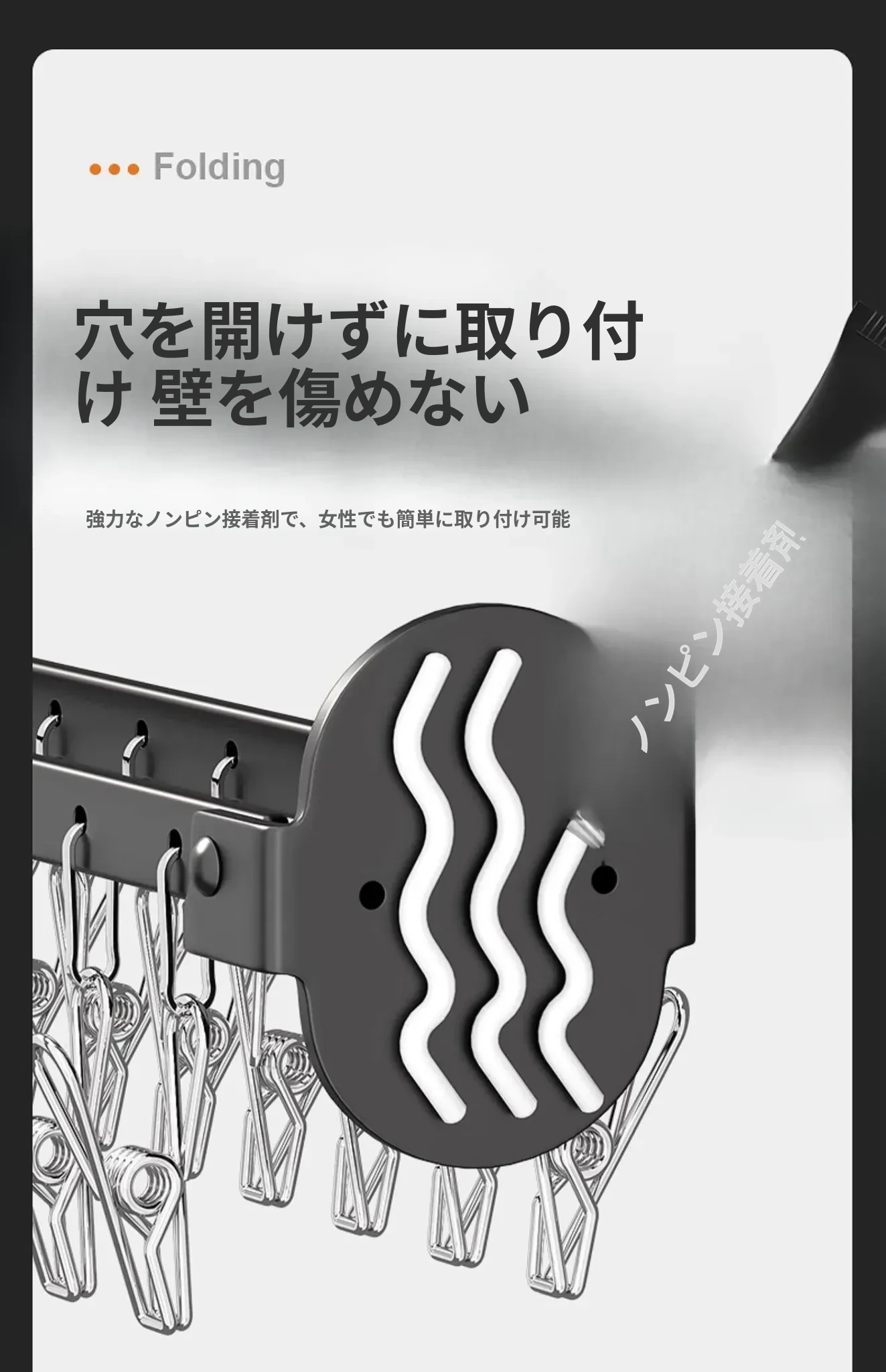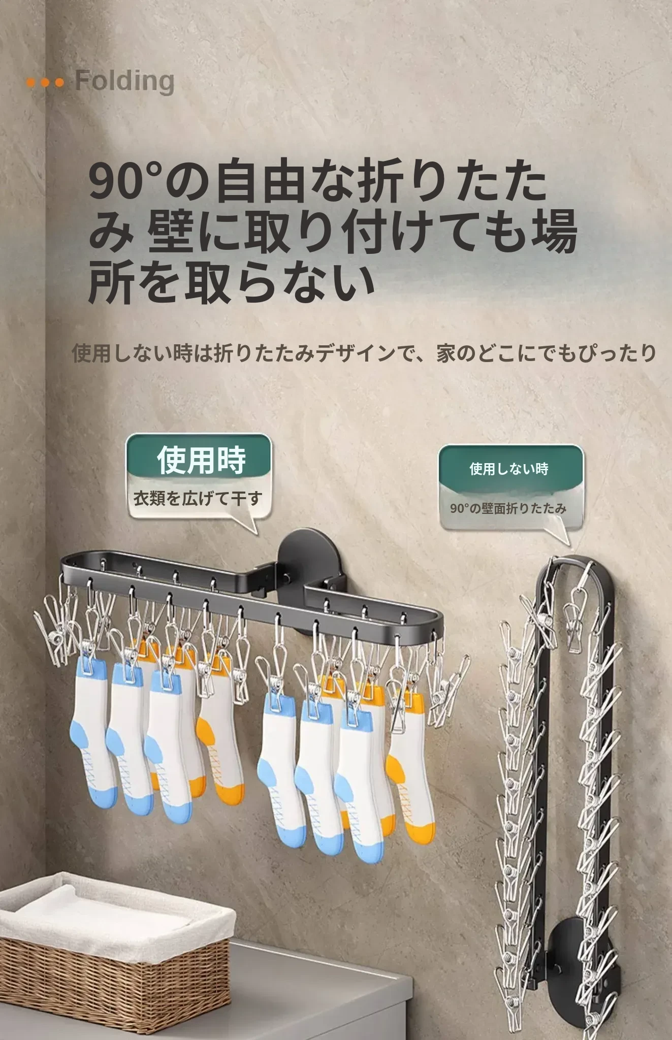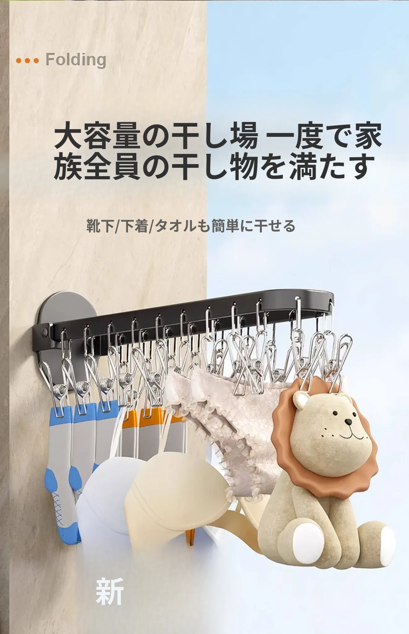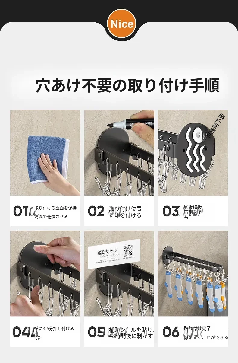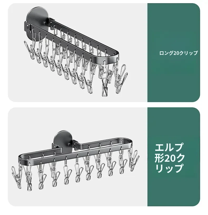 折りたたみ式靴下干し神器!穴あけ不要のバルコニー壁掛け多機能衣類干しラック。多クリップ付きで家庭用に最適、衣類も靴下もすっきり乾かせる便利アイテム!