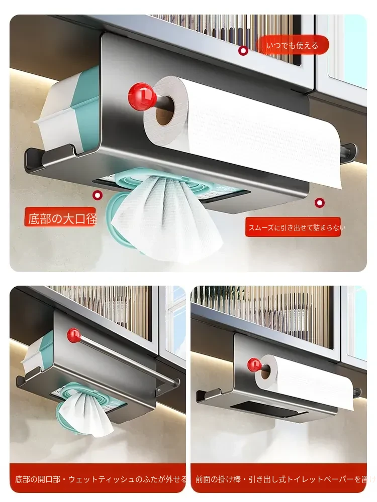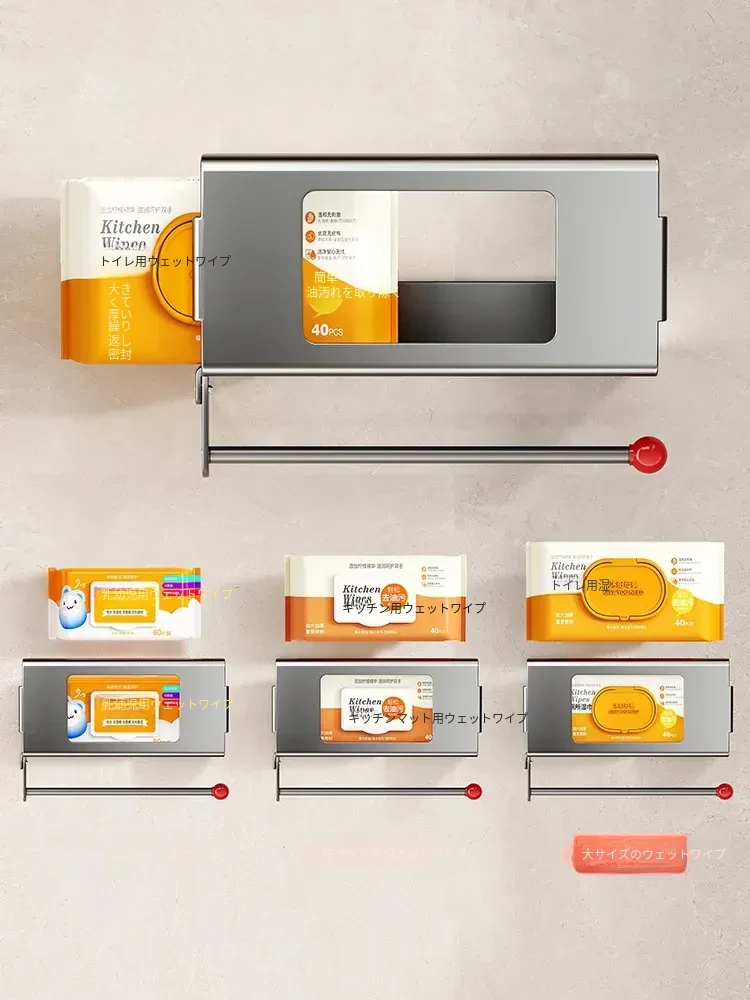 キッチン用ウェットティッシュ収納ボックス 吊り下げ式ペーパーボックス 便利なオーガナイザー キャビネット用ティッシュホルダー 抽出式ペーパーラックで、使いやすさとスタイルを兼ね備えた空間を演出!