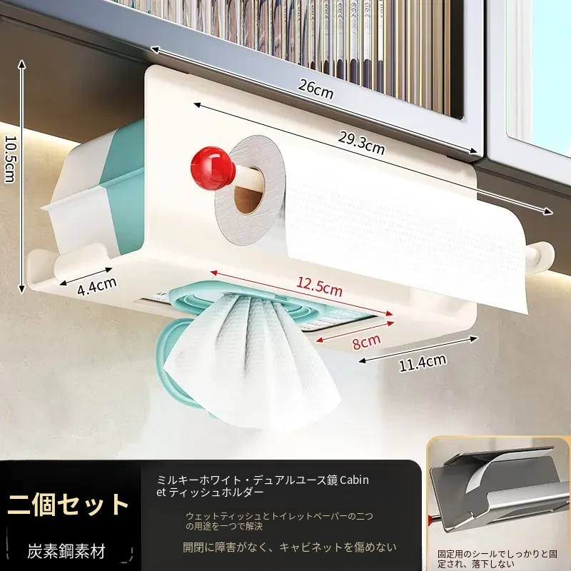 ナチュラルホワイト●キャビネットペーパーホルダー【ティッシュ/ロールペーパー共用】2個入り