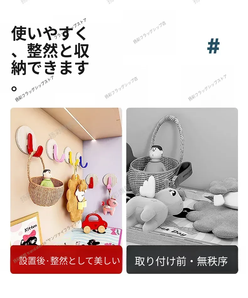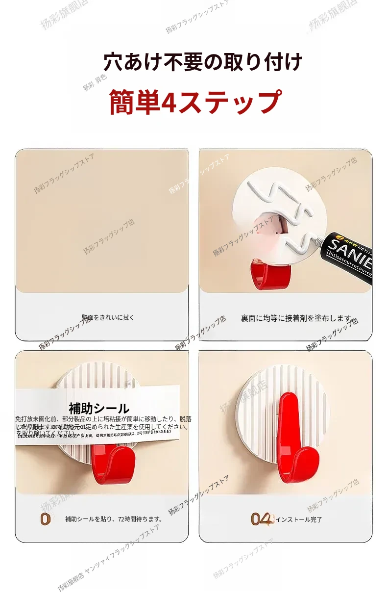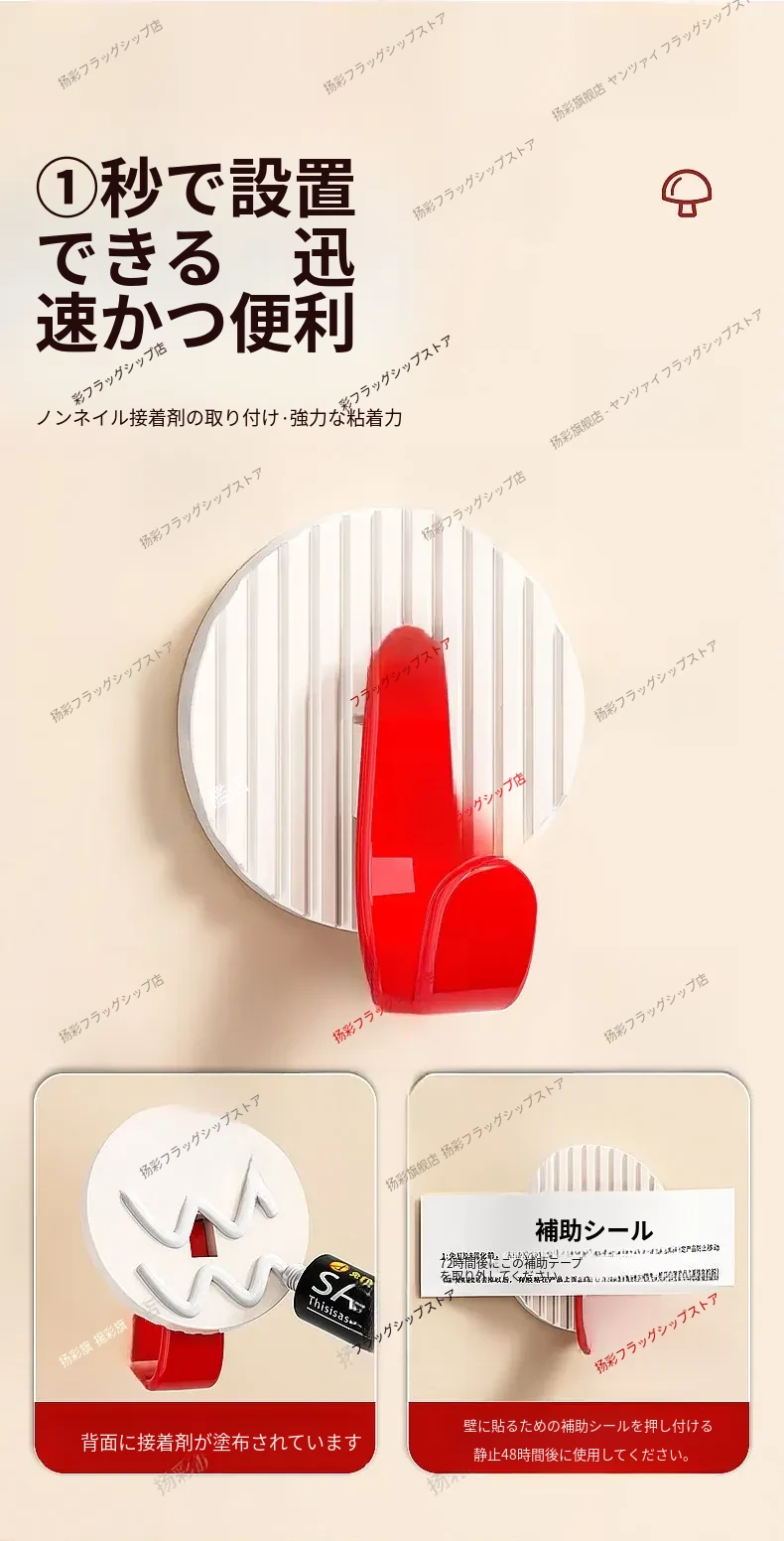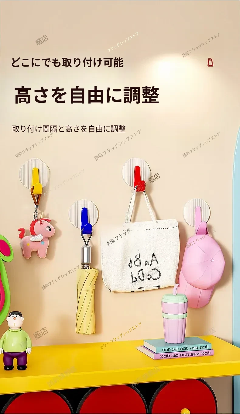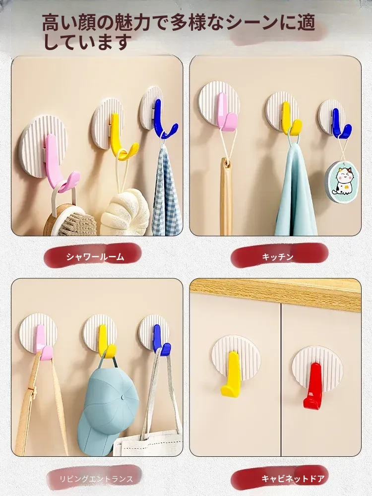 玄関用強力粘着フック|キーハンガー&帽子置きに最適!穴あけ不要で簡単取り付け、すっきり整理整頓を実現!おしゃれなデザインで玄関をもっと魅力的に!