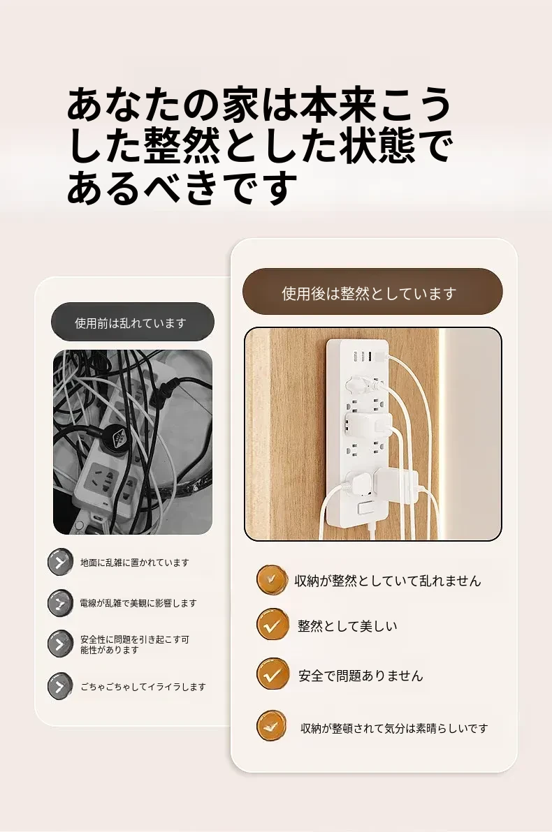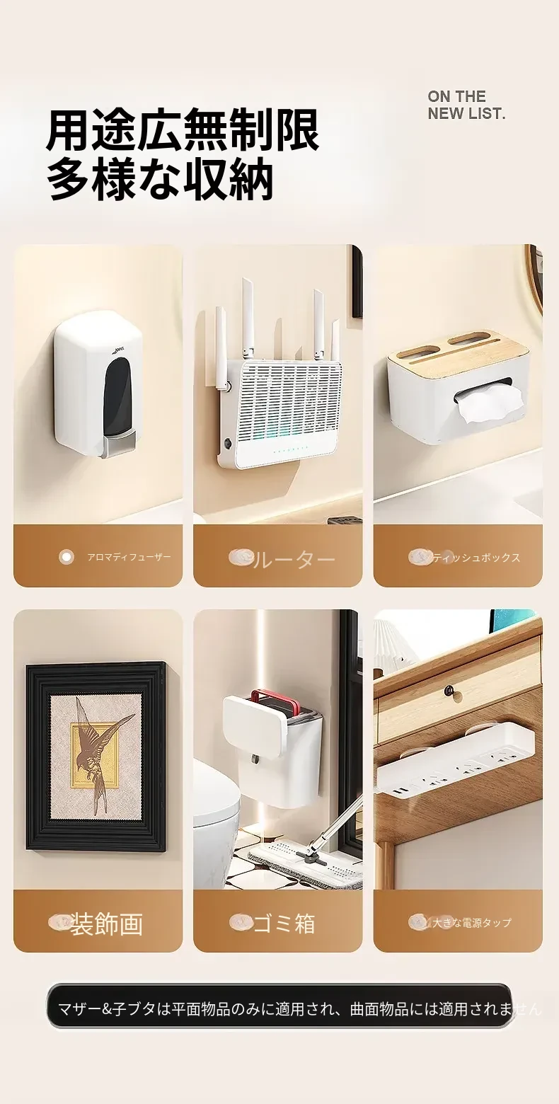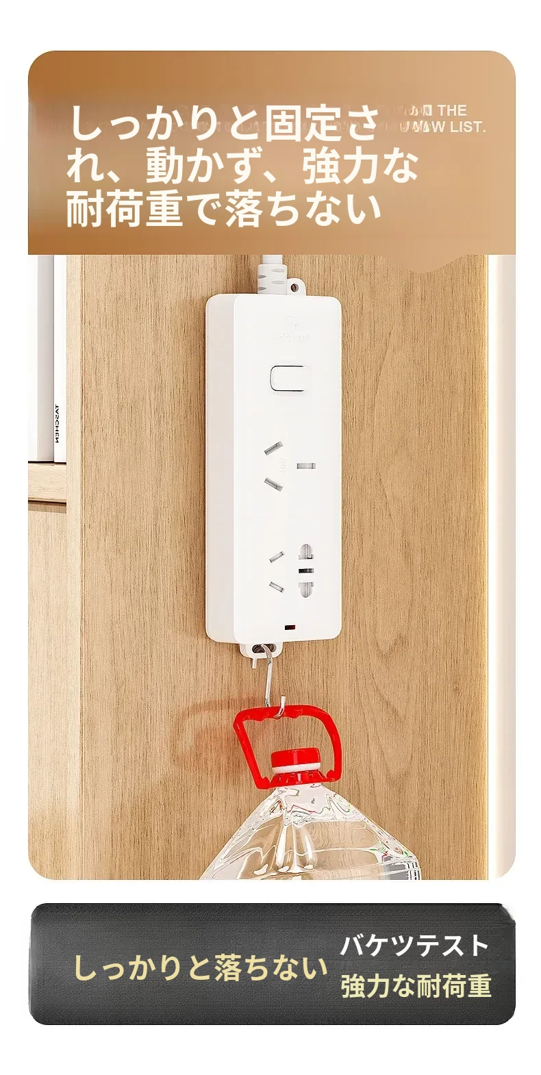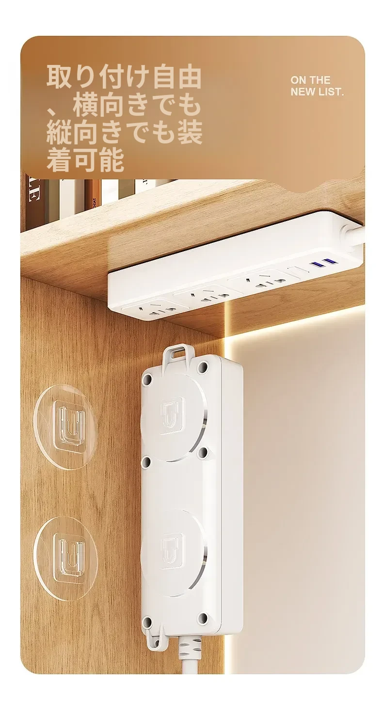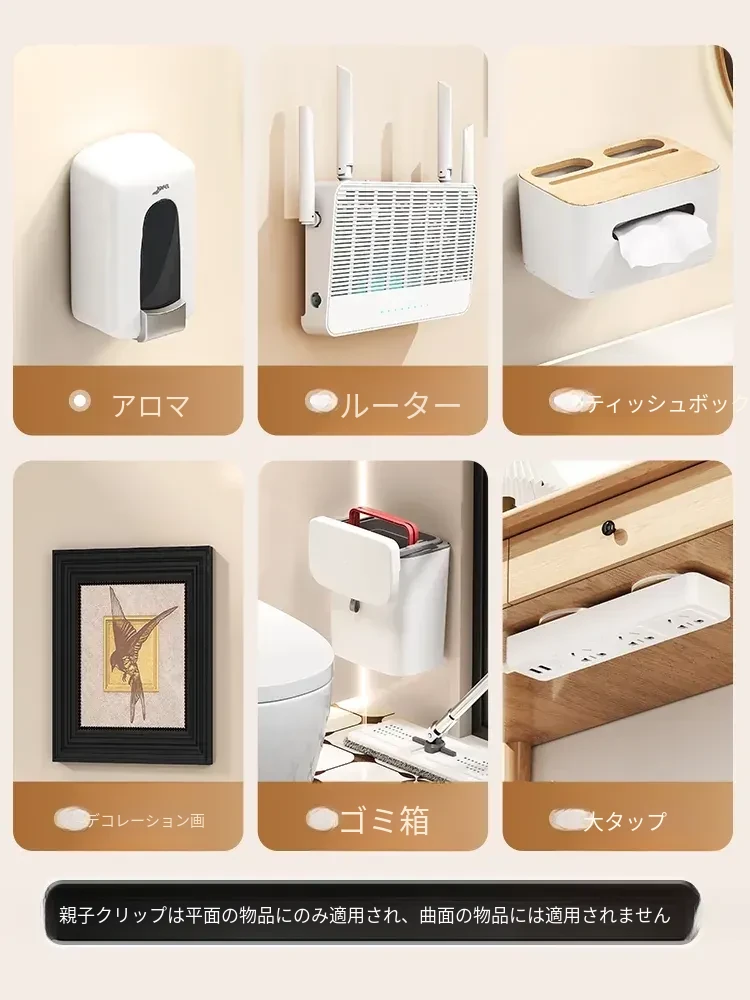 強力で厚みのある子母クリップ、ネジ不要のフック付きコンセント固定器!壁に傷をつけず、簡単に取り付け可能。お部屋をスッキリ整理整頓!