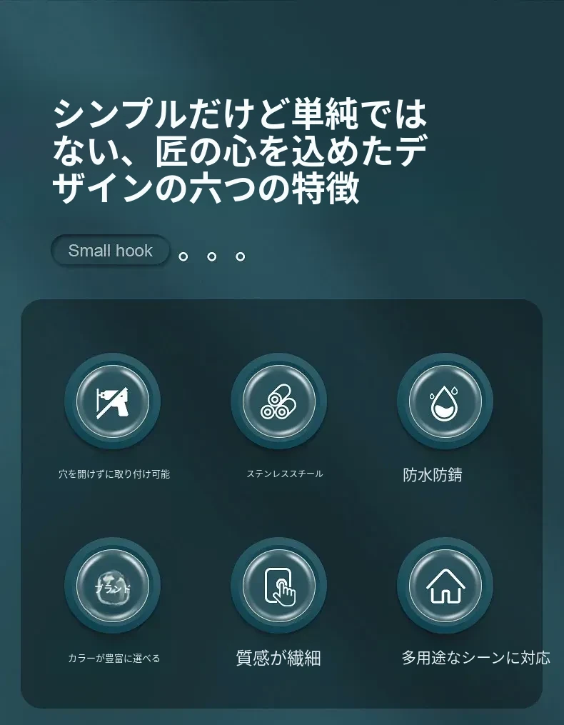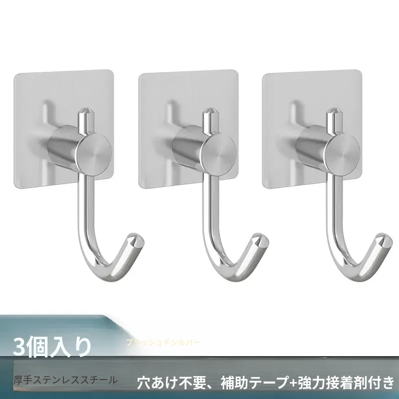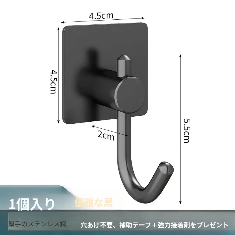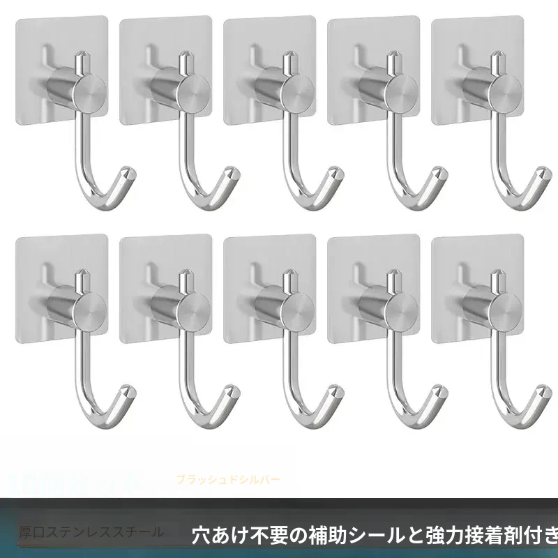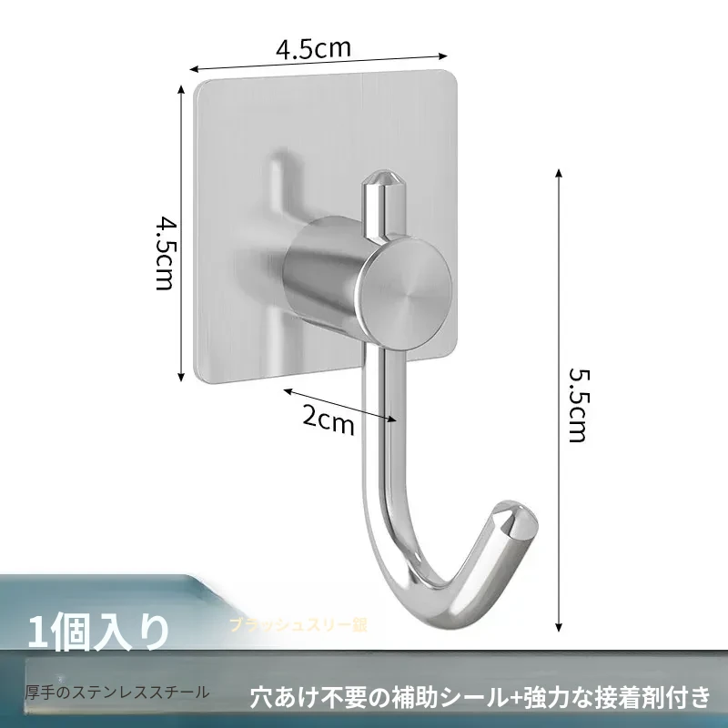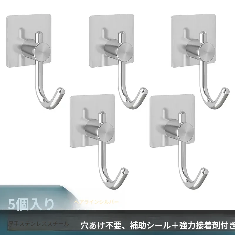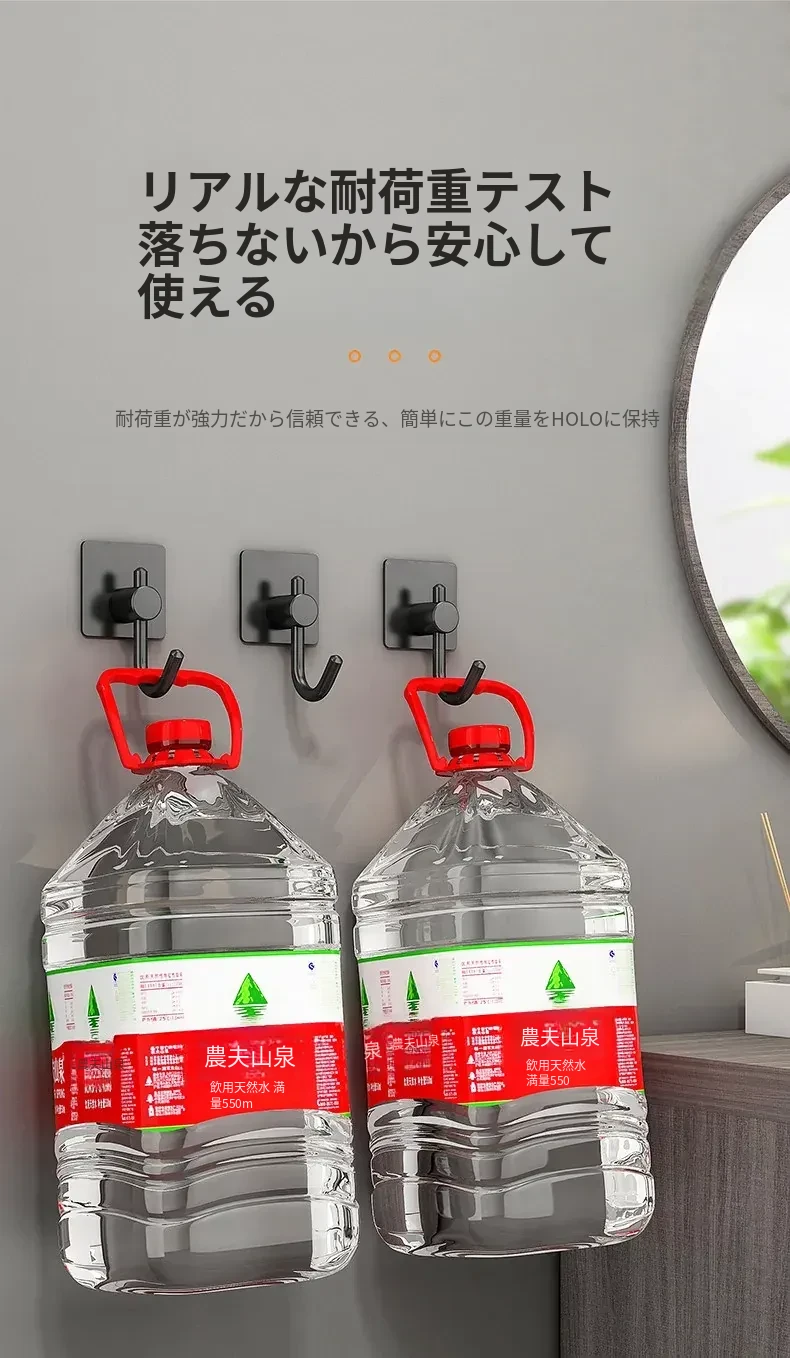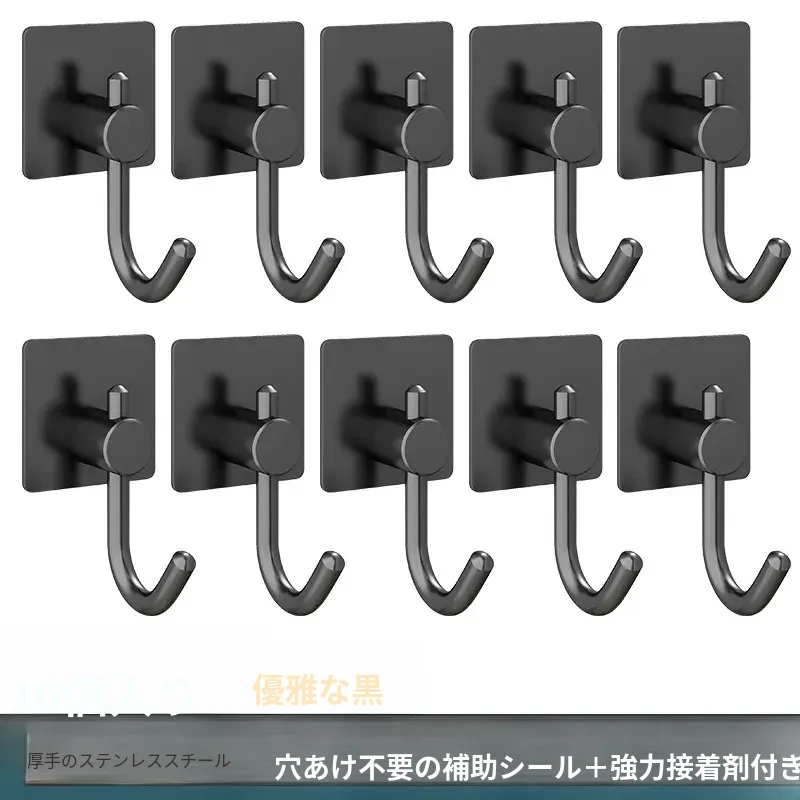 強力粘着フック - 穴あけ不要!壁に傷をつけずに簡単取り付け、衣類やキッチン用品をしっかり収納。無痕で美しい仕上がり、玄関やドア裏にもピッタリ!あなたの生活を便利にする必需品です。