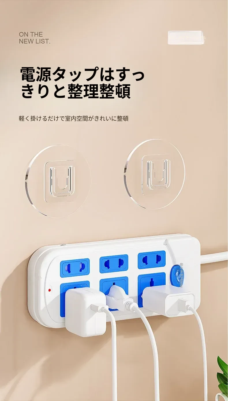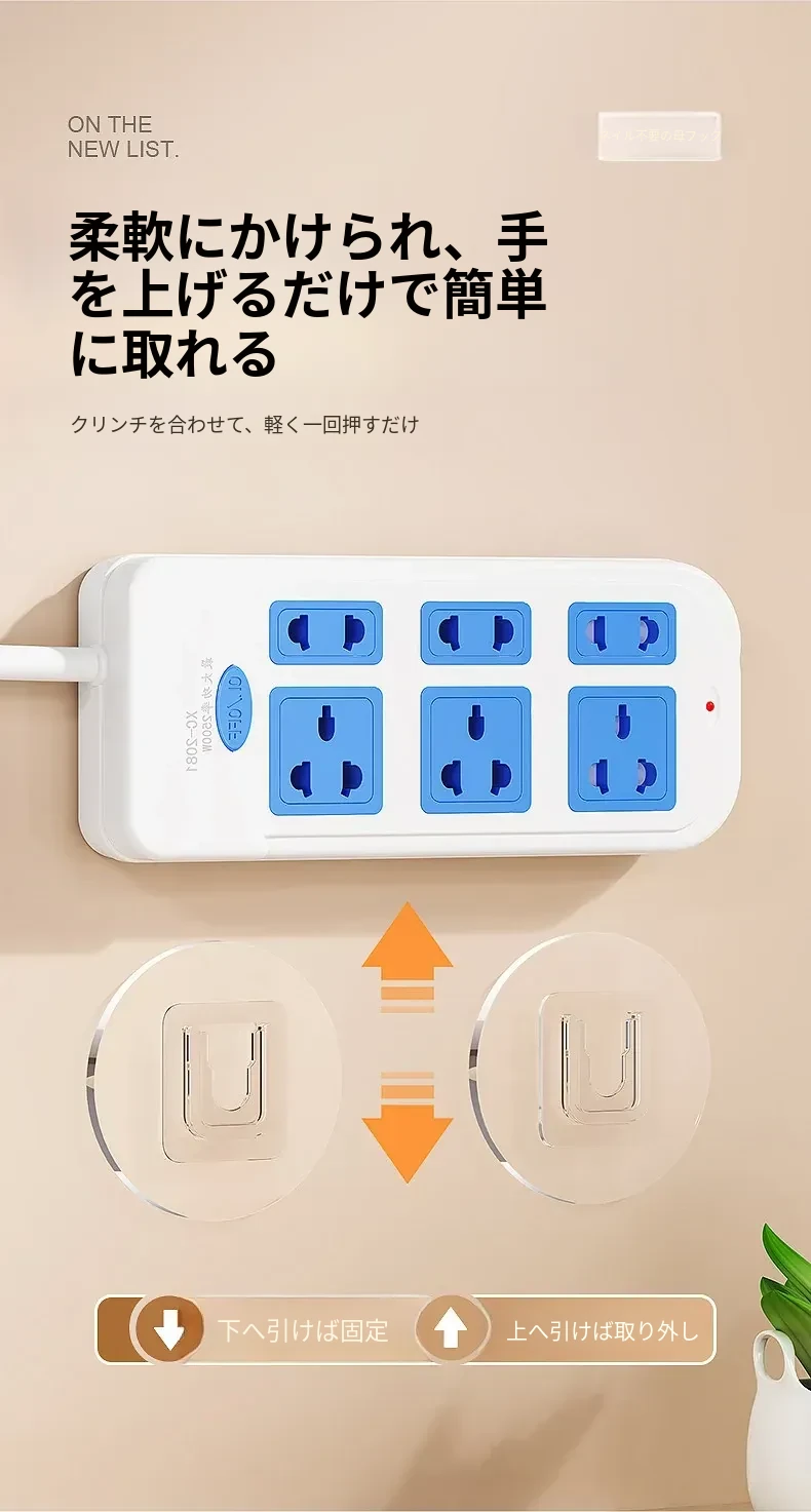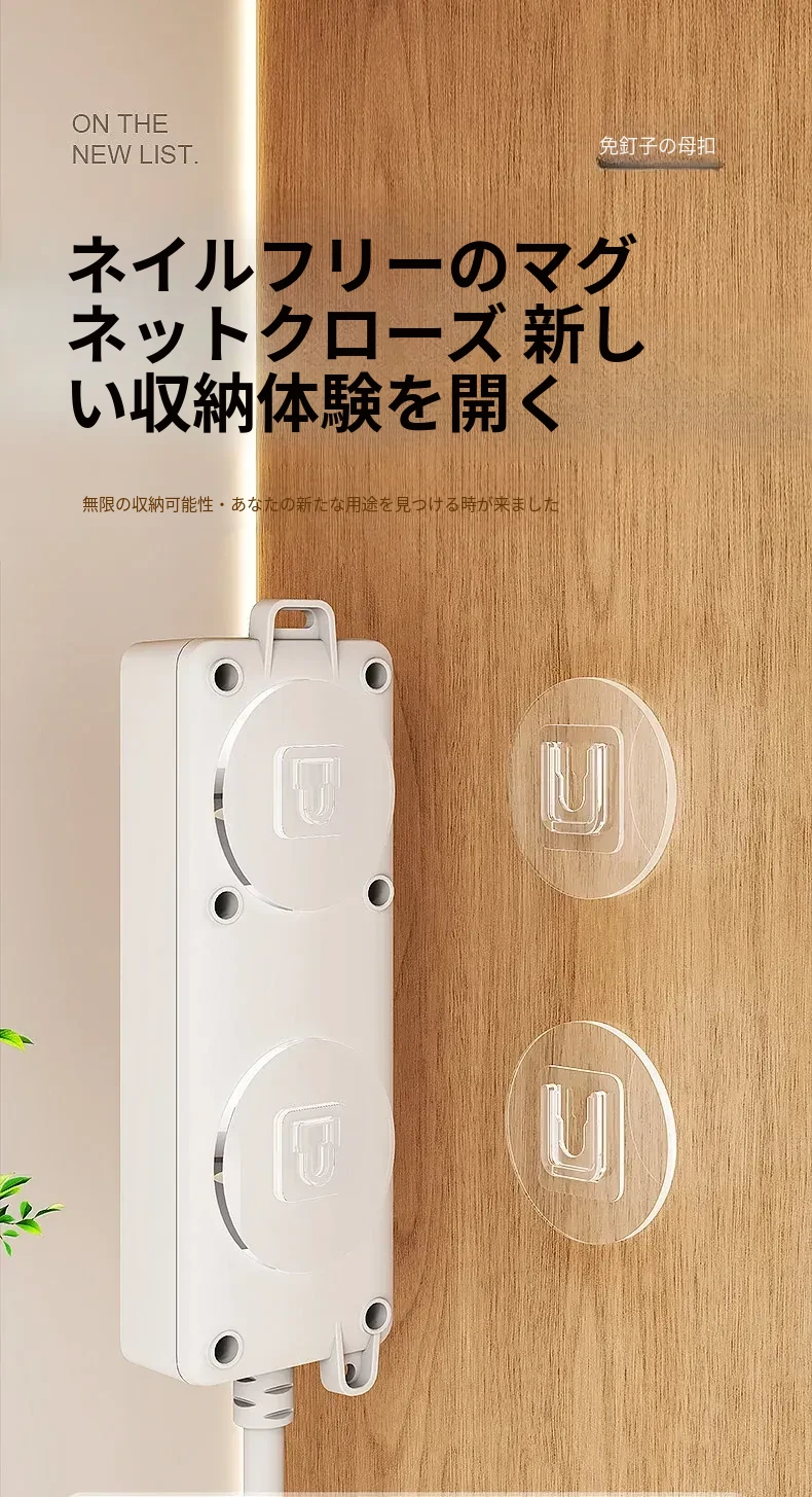 【強力無痕取り付け】子母式フックで簡単設置!穴あけ不要の粘着式壁掛け固定器【耐荷重】でしっかりサポート、便利な配線管理に最適!おしゃれなデザインでお部屋をスッキリ整頓!