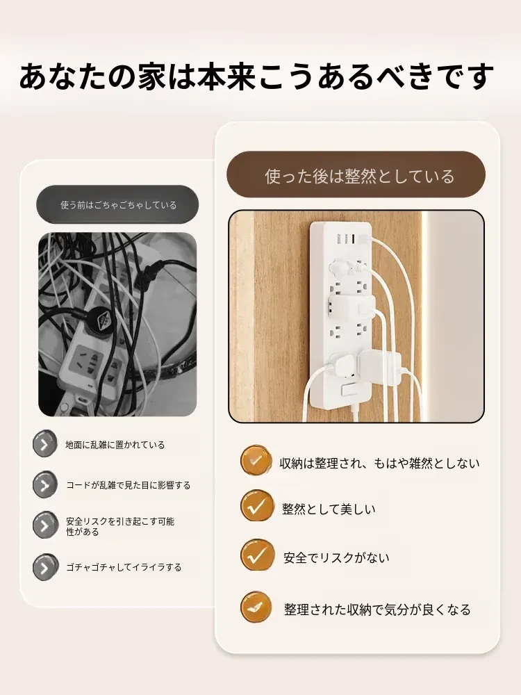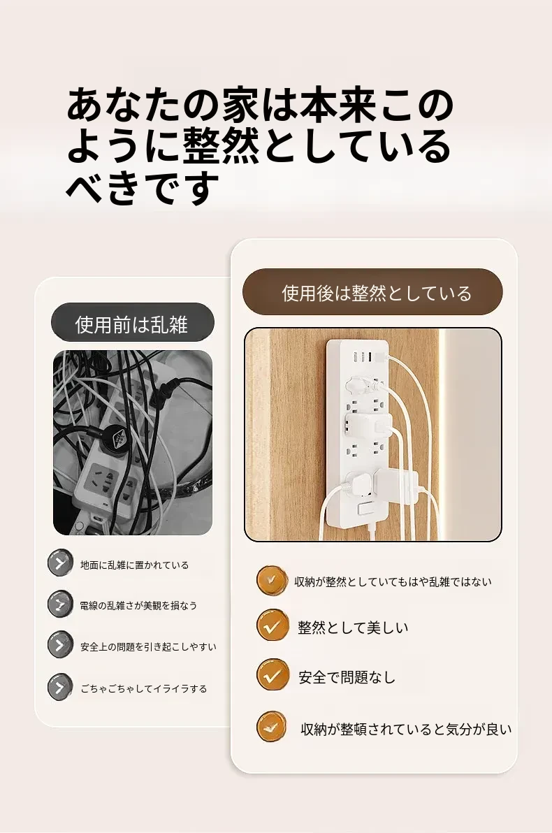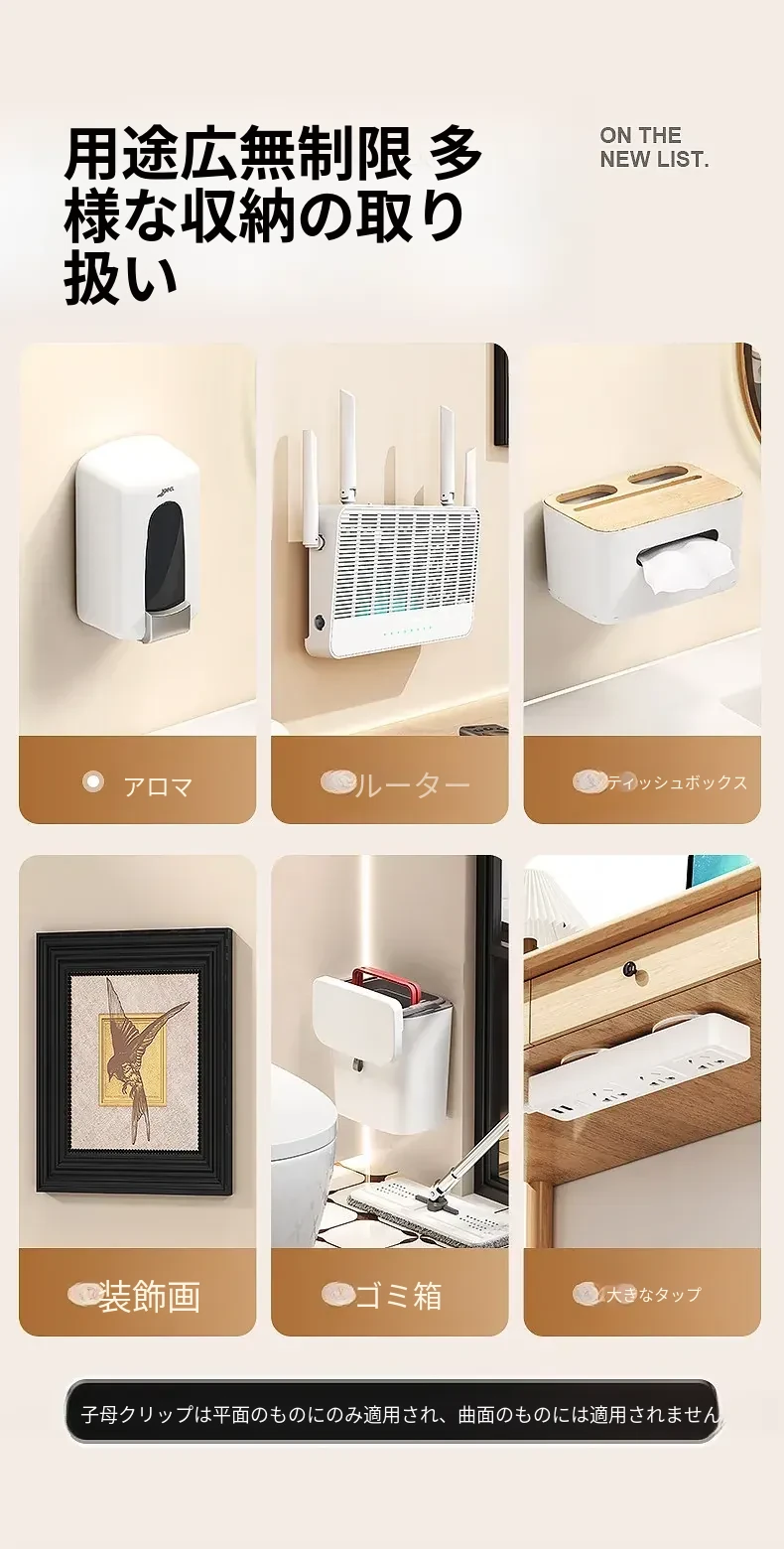 【強力無痕取り付け】子母式フックで簡単設置!穴あけ不要の粘着式壁掛け固定器【耐荷重】でしっかりサポート、便利な配線管理に最適!おしゃれなデザインでお部屋をスッキリ整頓!