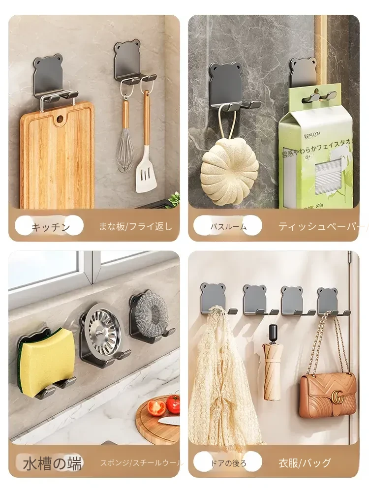 グレー【4個セット】ダブルフックデザイン/強力耐荷重