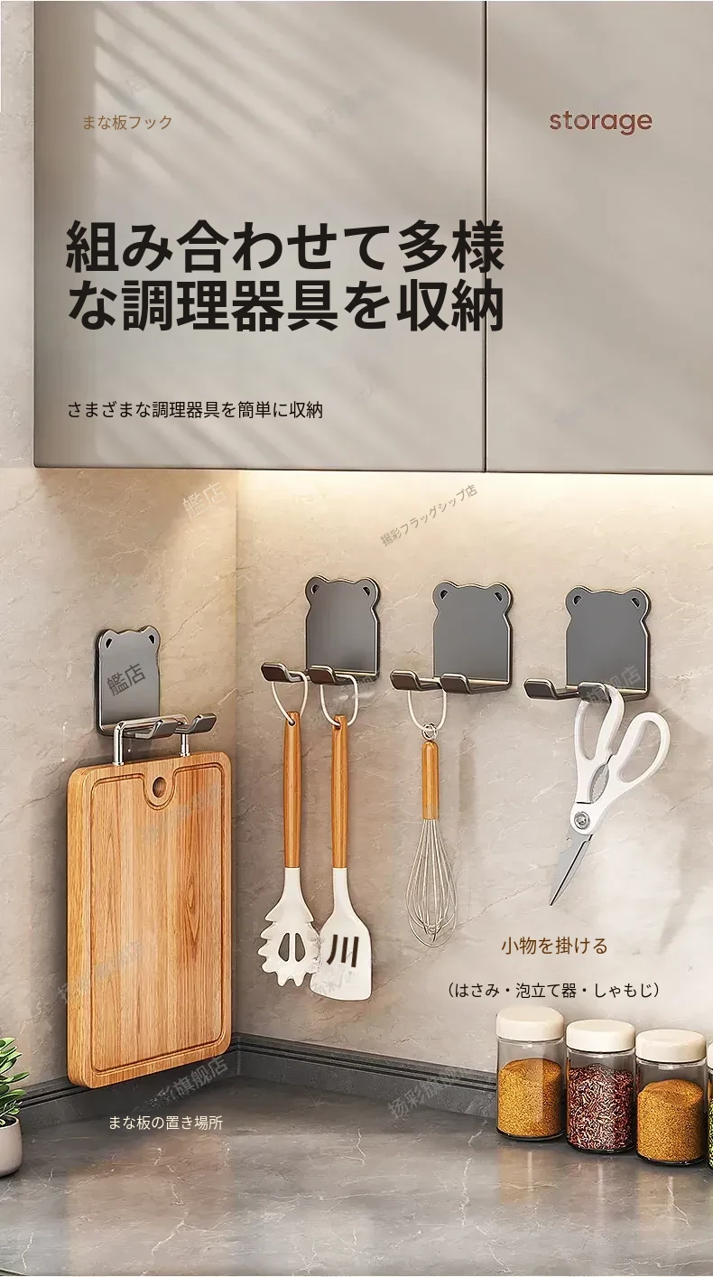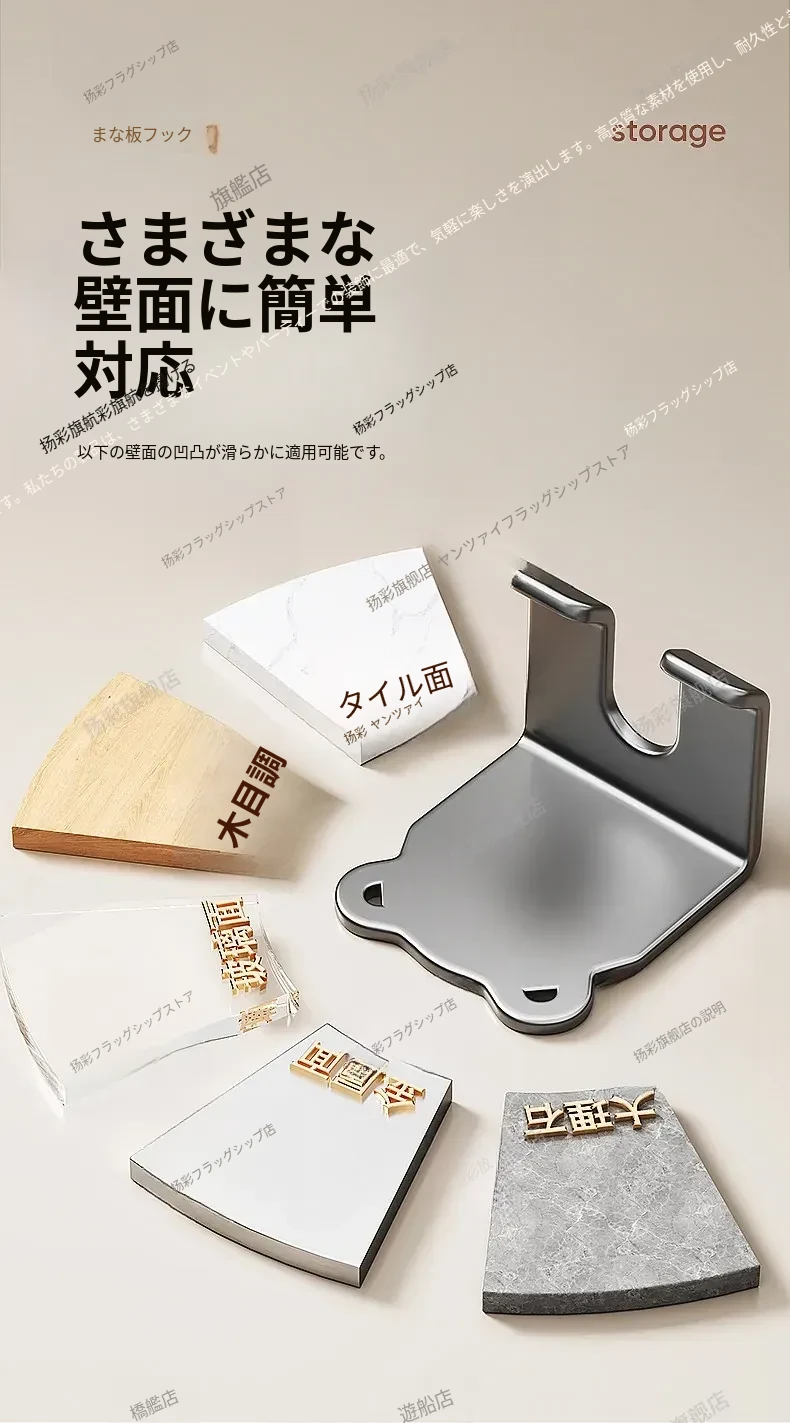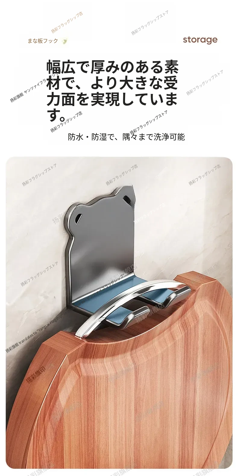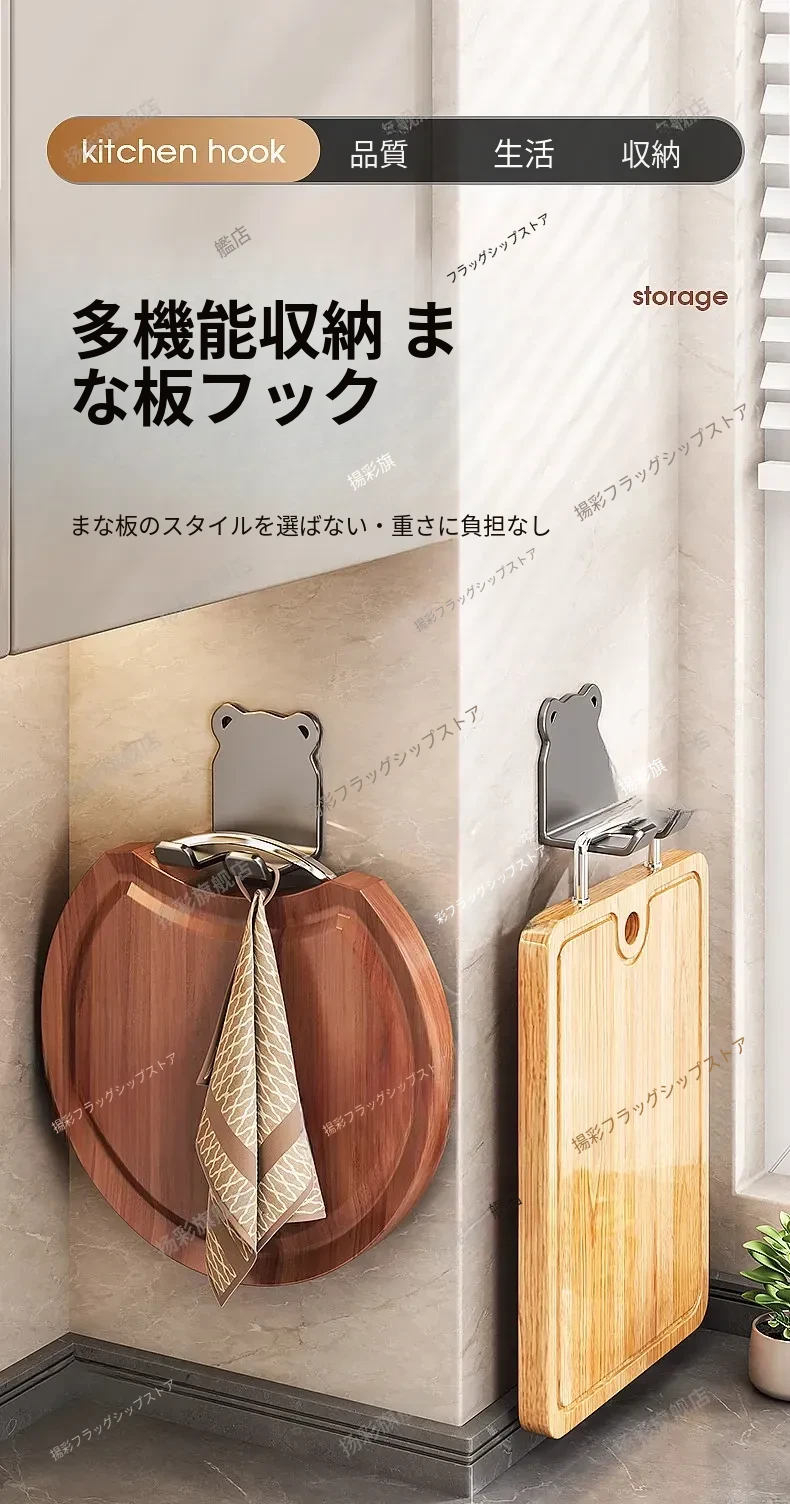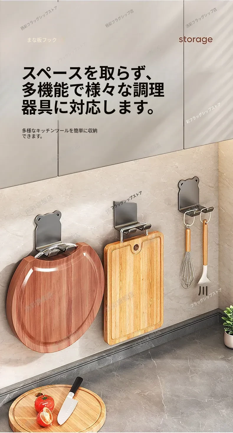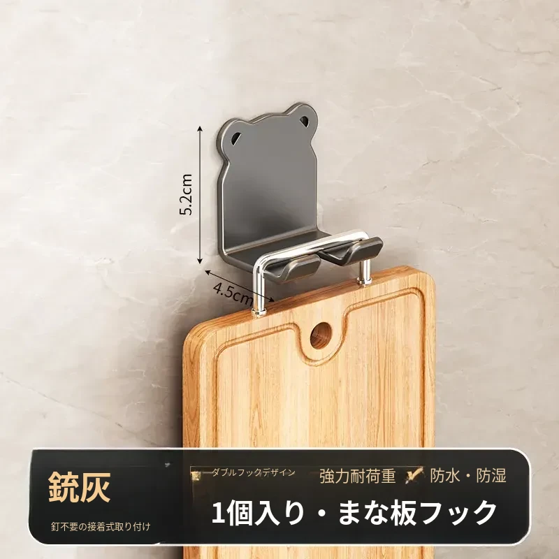 穴あけ不要!強力耐荷重のキッチン用まな板フック 便利な壁掛け収納ラックで、調理器具やまな板をスマートに整理整頓!キッチンをスッキリさせる必需品です。