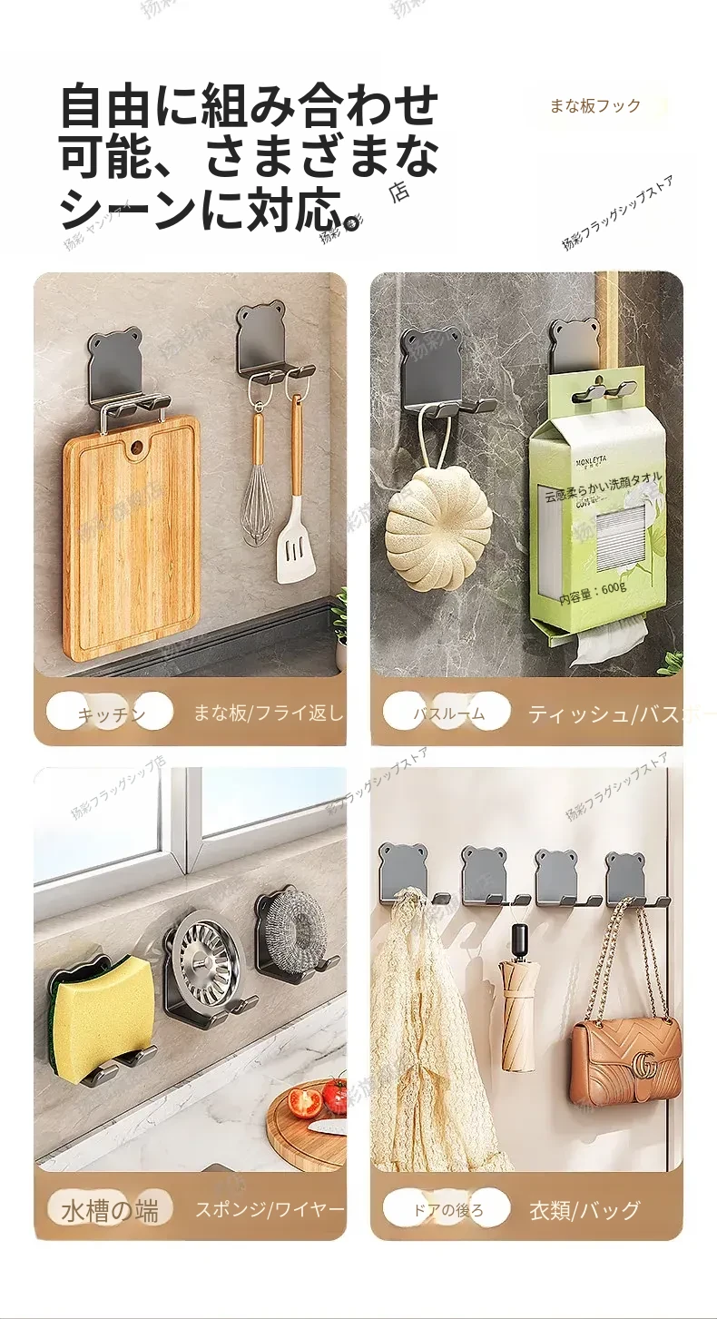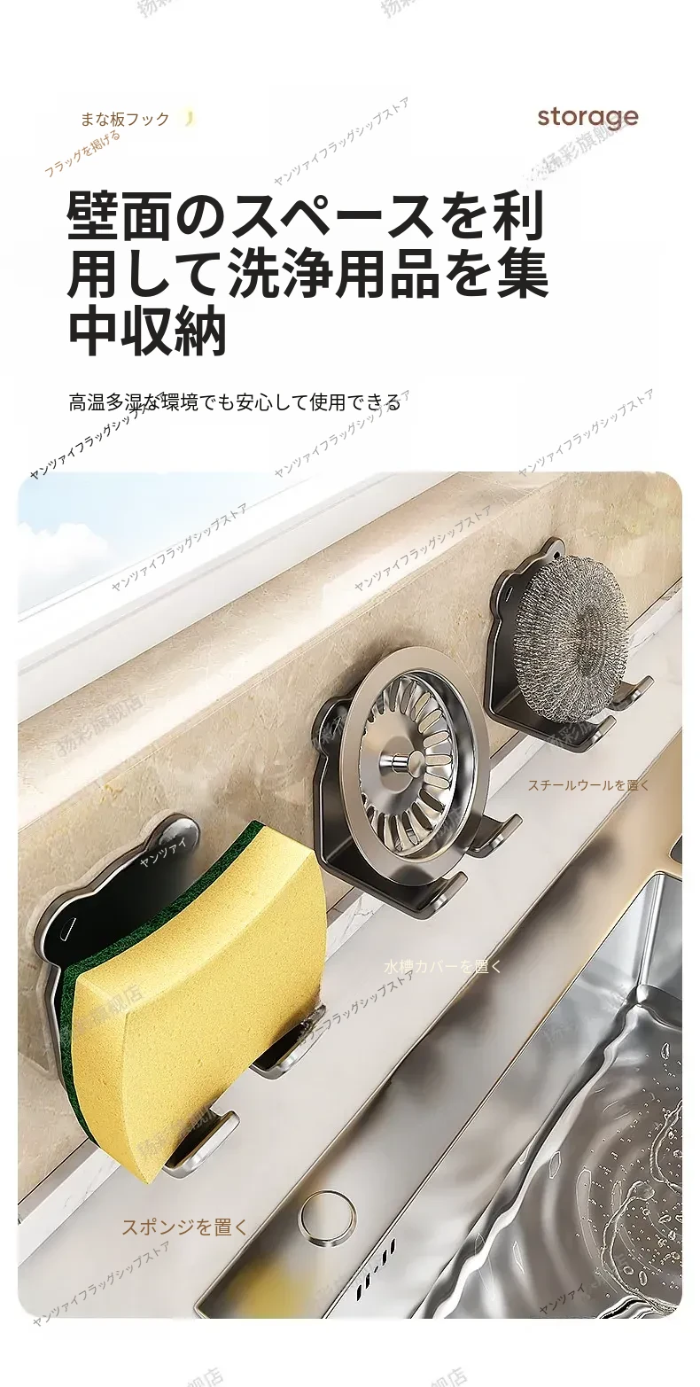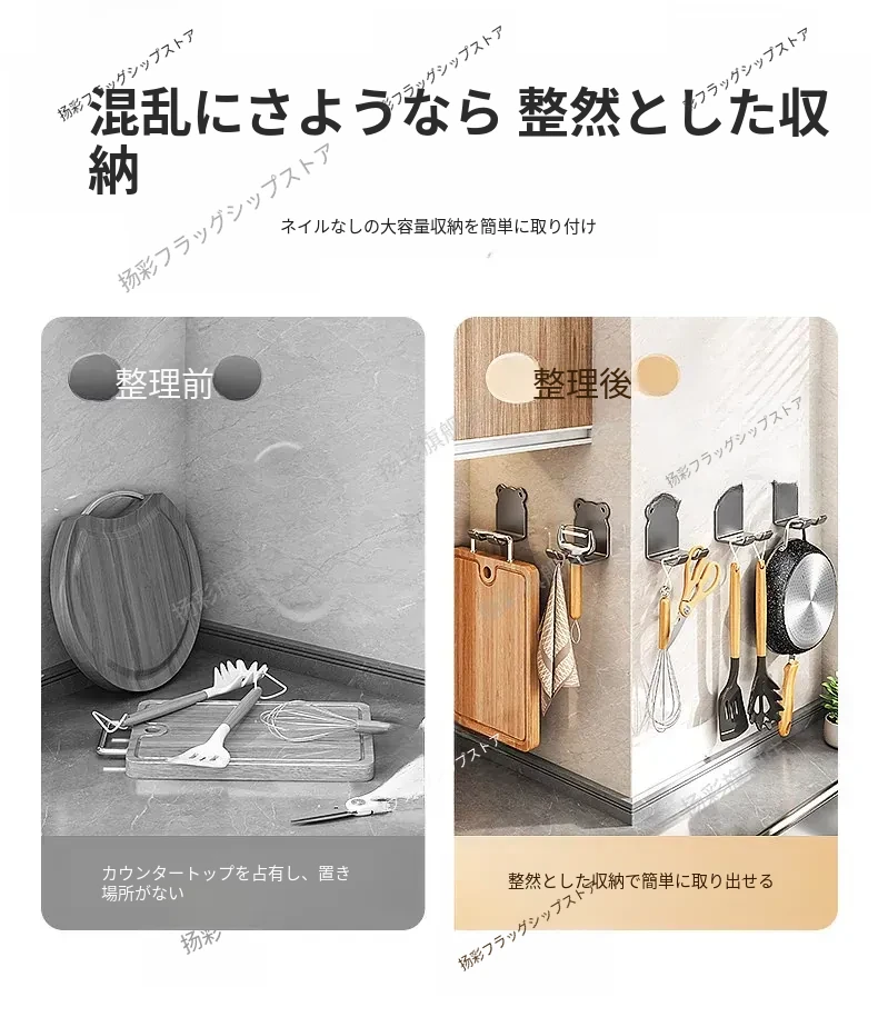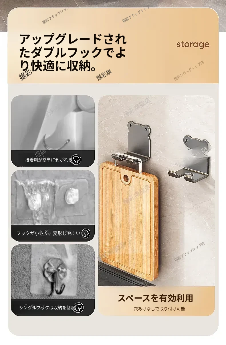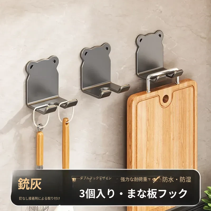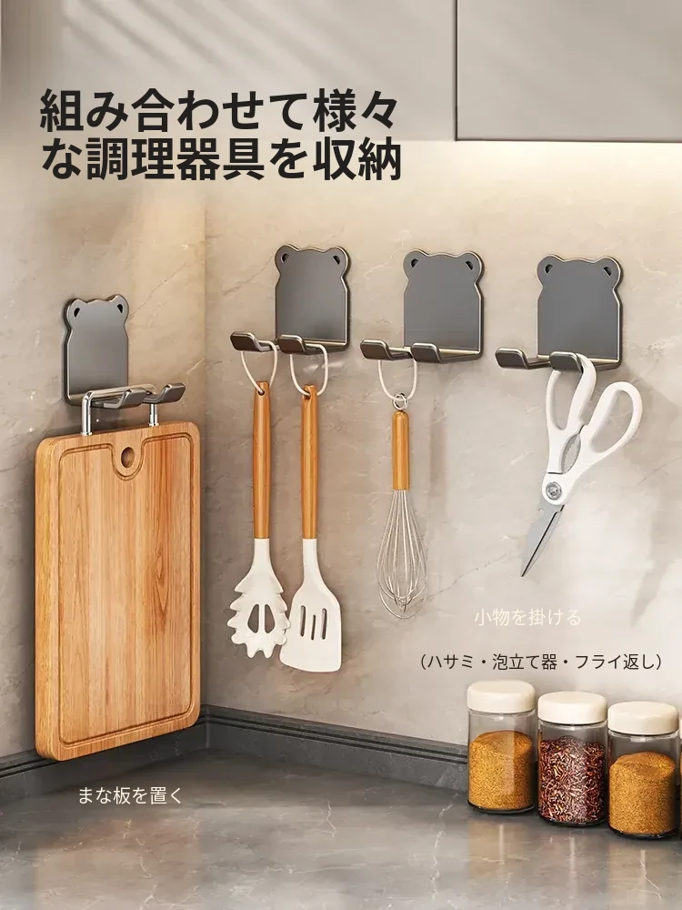 穴あけ不要!強力耐荷重のキッチン用まな板フック 便利な壁掛け収納ラックで、調理器具やまな板をスマートに整理整頓!キッチンをスッキリさせる必需品です。