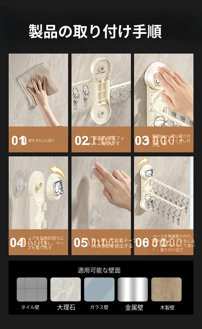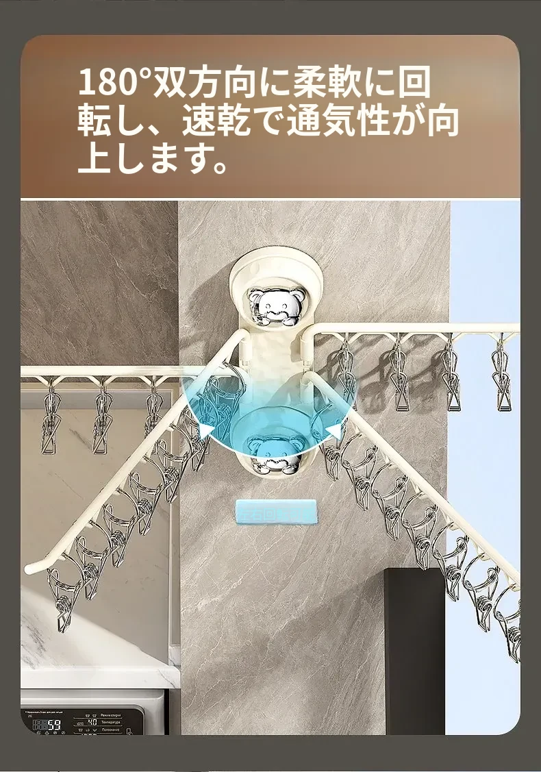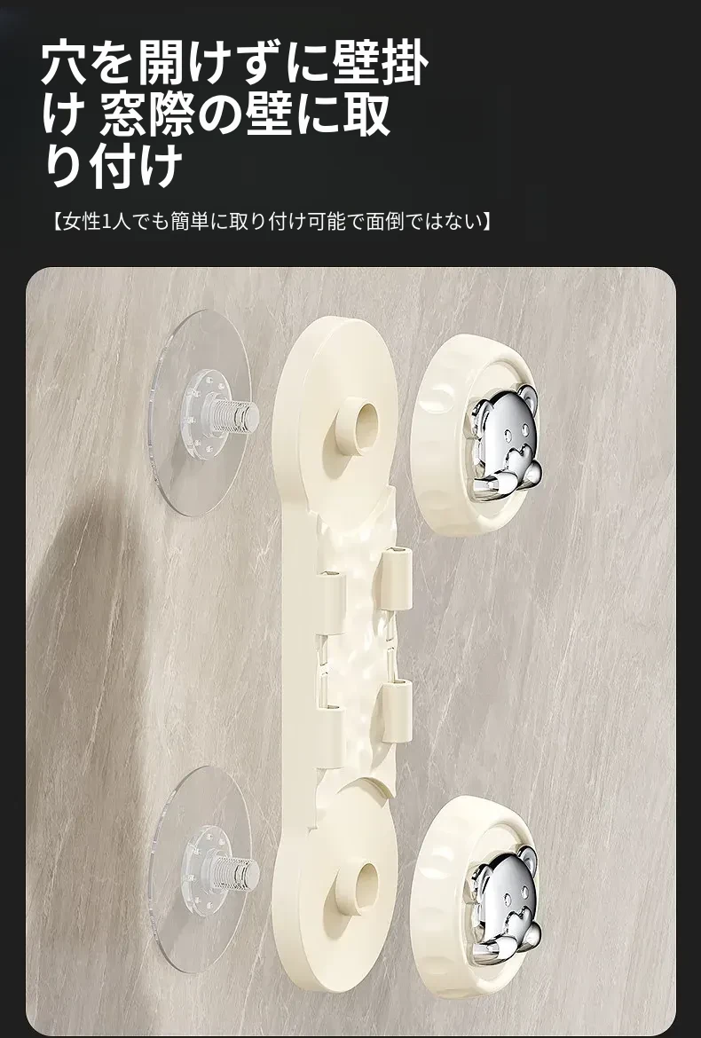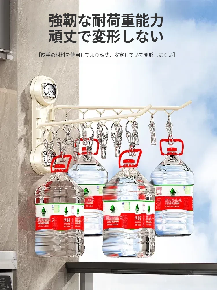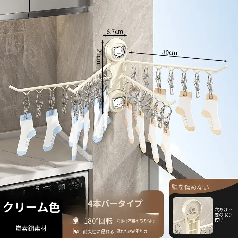 【ミルクホワイト】吸盤干しラック-4本●28クリップ