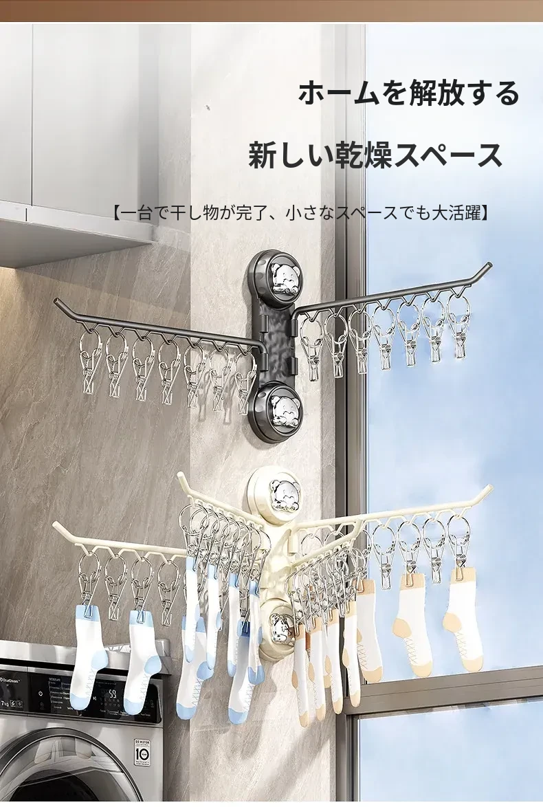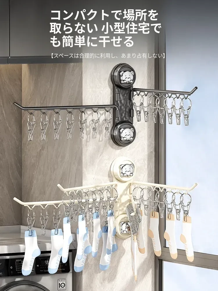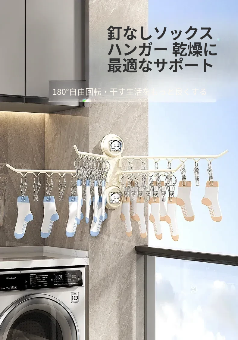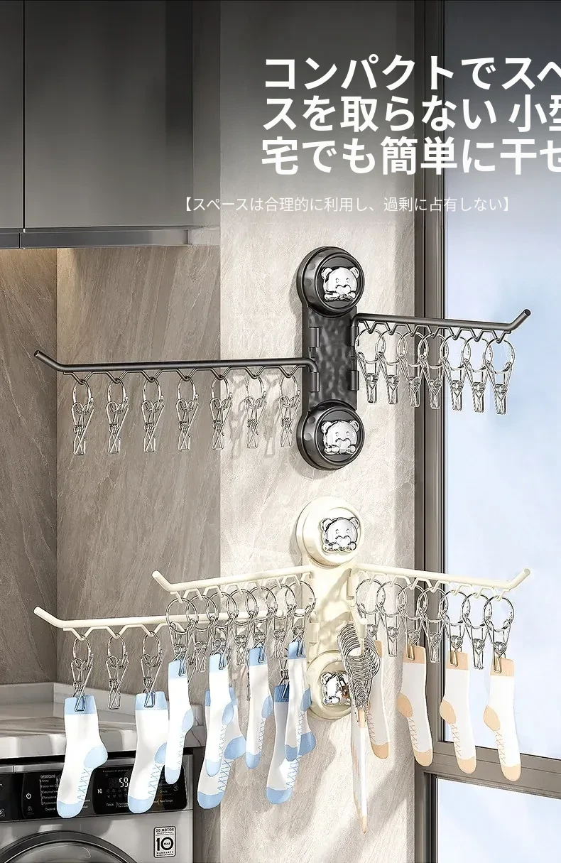 吸盤付き靴下干しラック - バルコニー用多機能折りたたみ靴下乾燥器!クリップ付きで回転可能なインナーウェア&靴下干しハンガー、スペースを節約しながら便利に使えます!