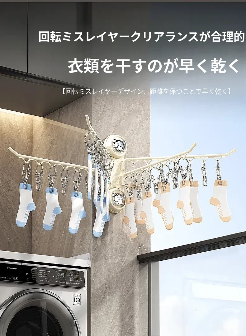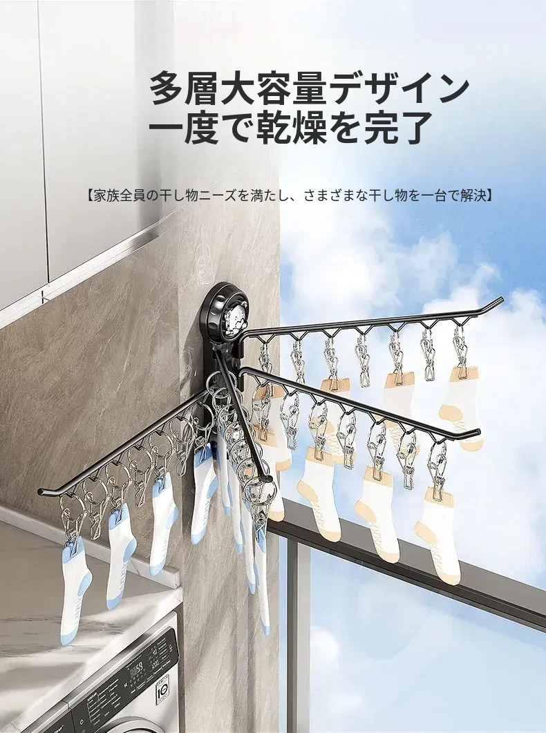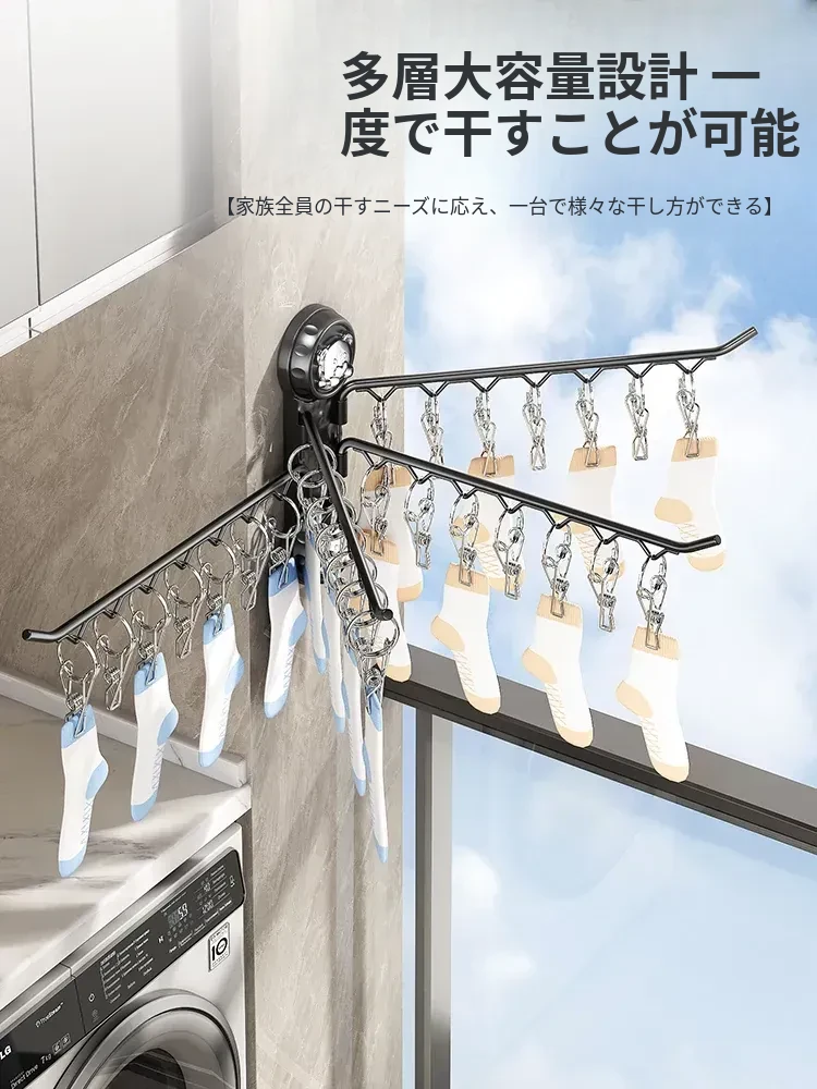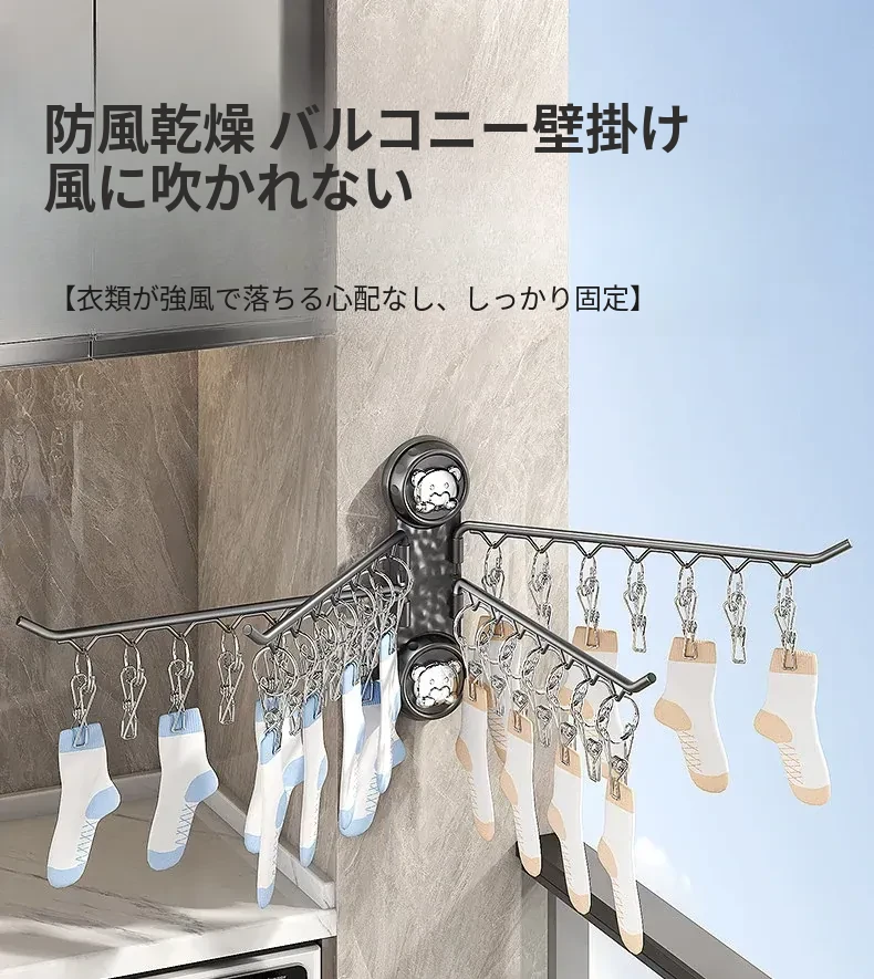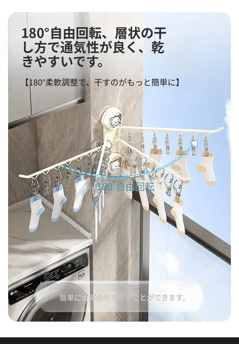 吸盤付き靴下干しラック - バルコニー用多機能折りたたみ靴下乾燥器!クリップ付きで回転可能なインナーウェア&靴下干しハンガー、スペースを節約しながら便利に使えます!