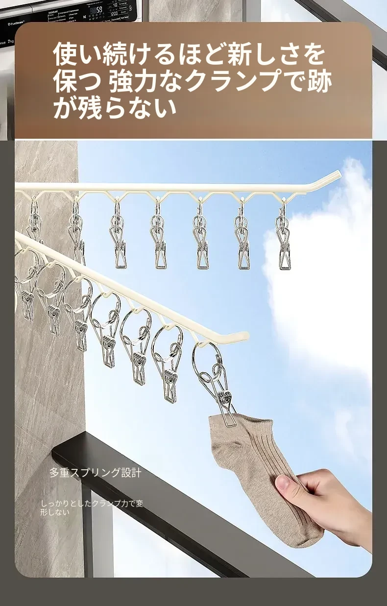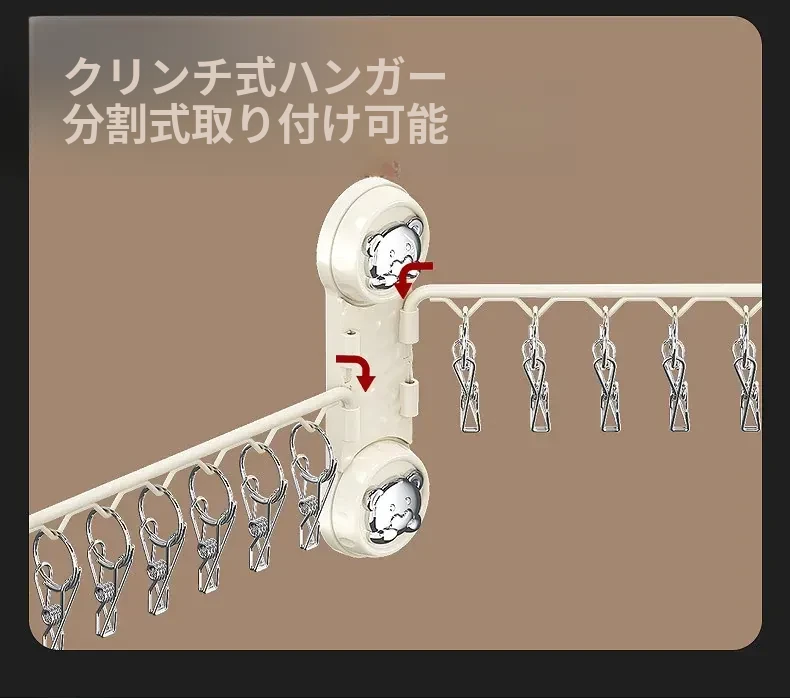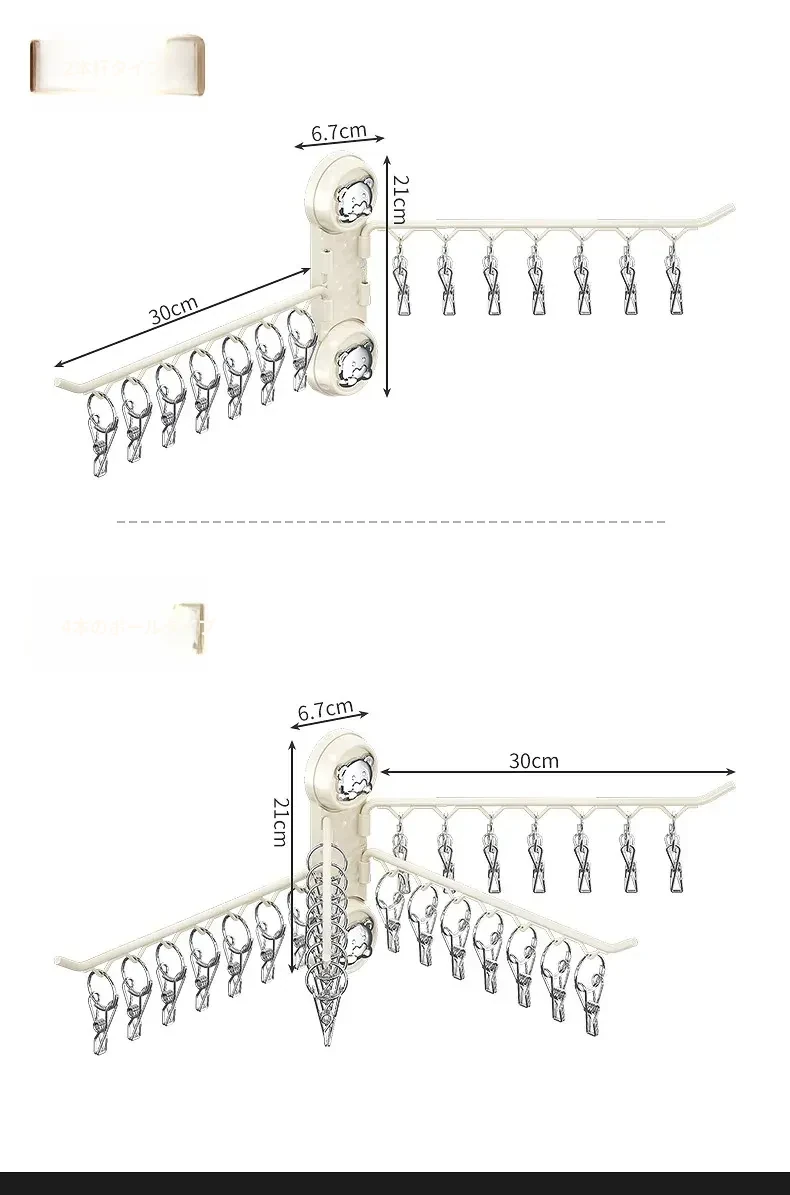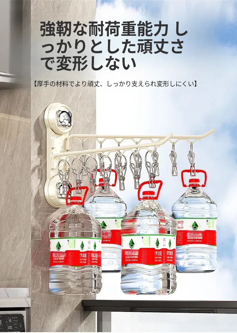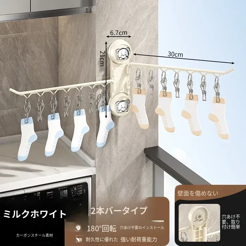 【ミルクホワイト】吸盤干しラック-2本●14クリップ