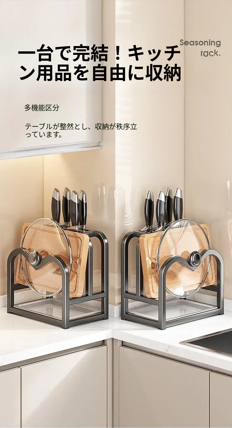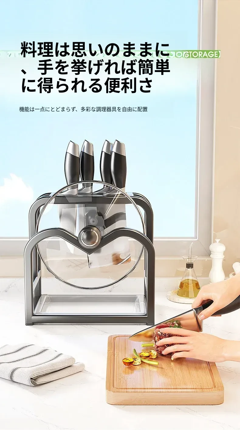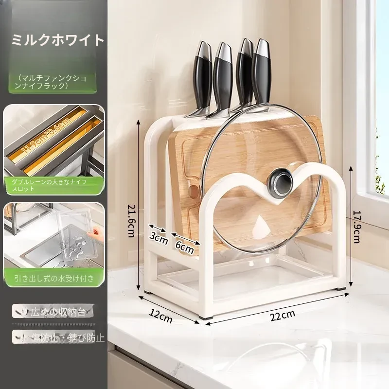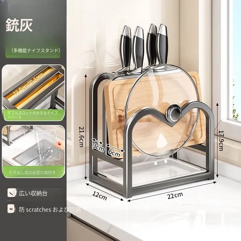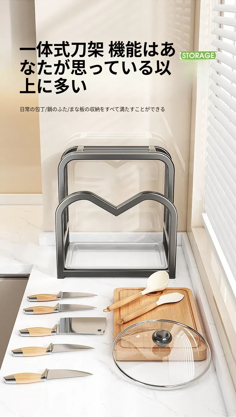 キッチンナイフラック・マルチ機能カッティングボード・家庭用台面収納・鍋蓋・包丁スタンド一体型整理トレー!スペースを有効活用し、料理をもっと楽しく!