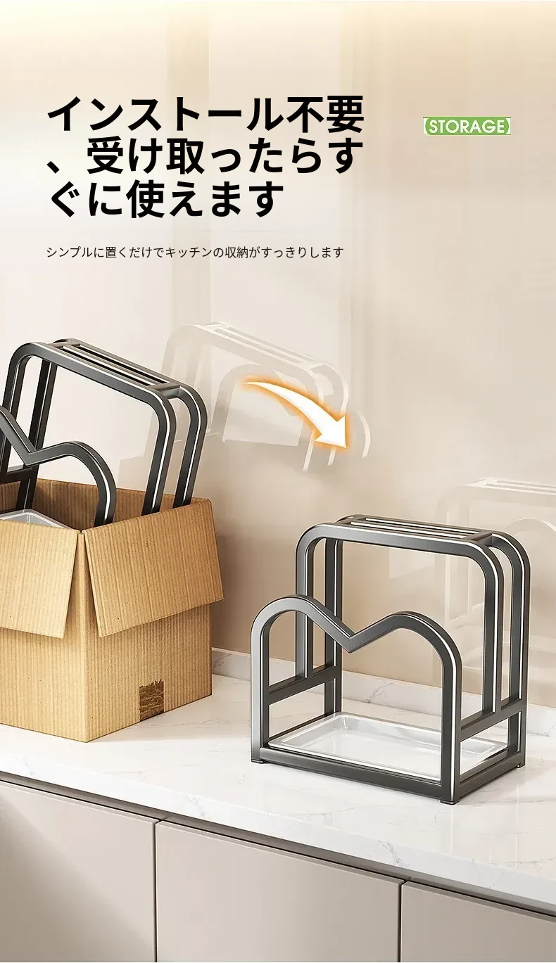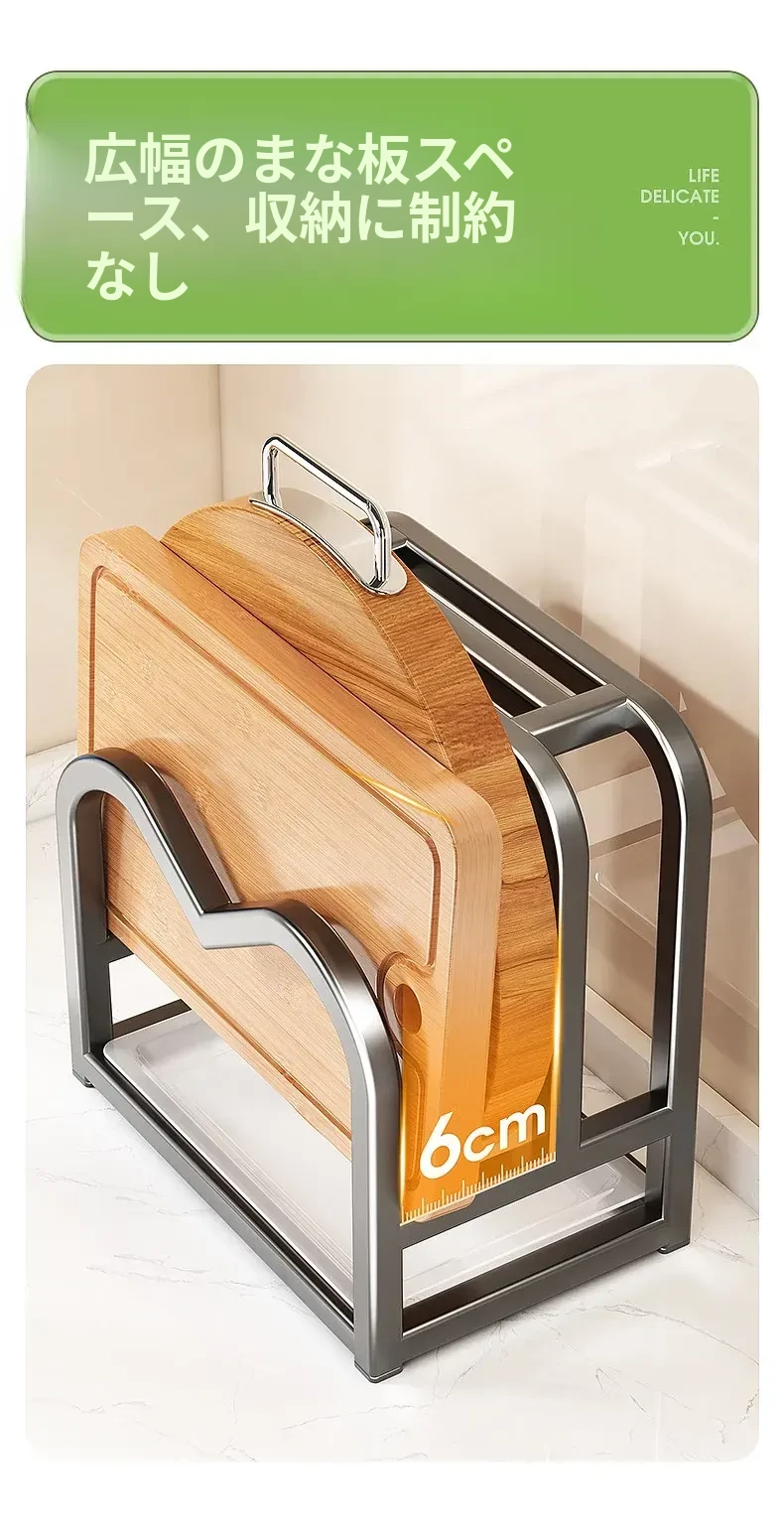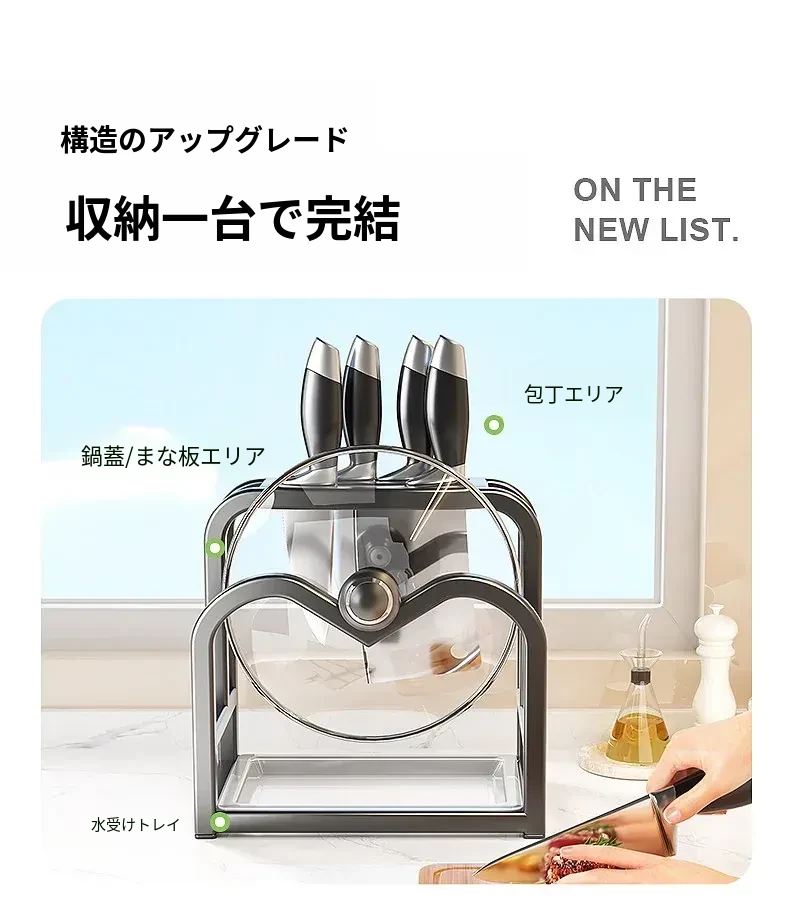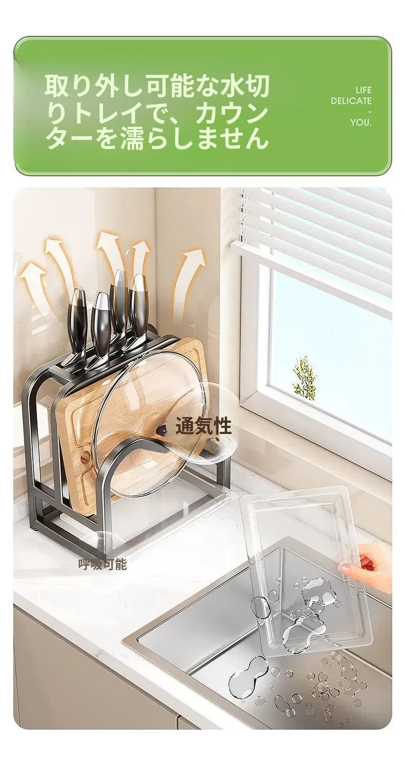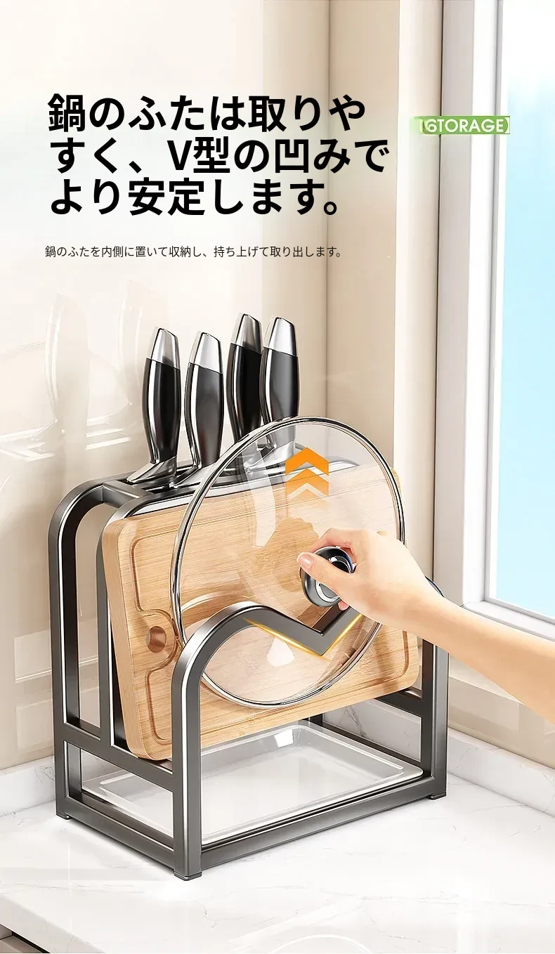 キッチンナイフラック・マルチ機能カッティングボード・家庭用台面収納・鍋蓋・包丁スタンド一体型整理トレー!スペースを有効活用し、料理をもっと楽しく!