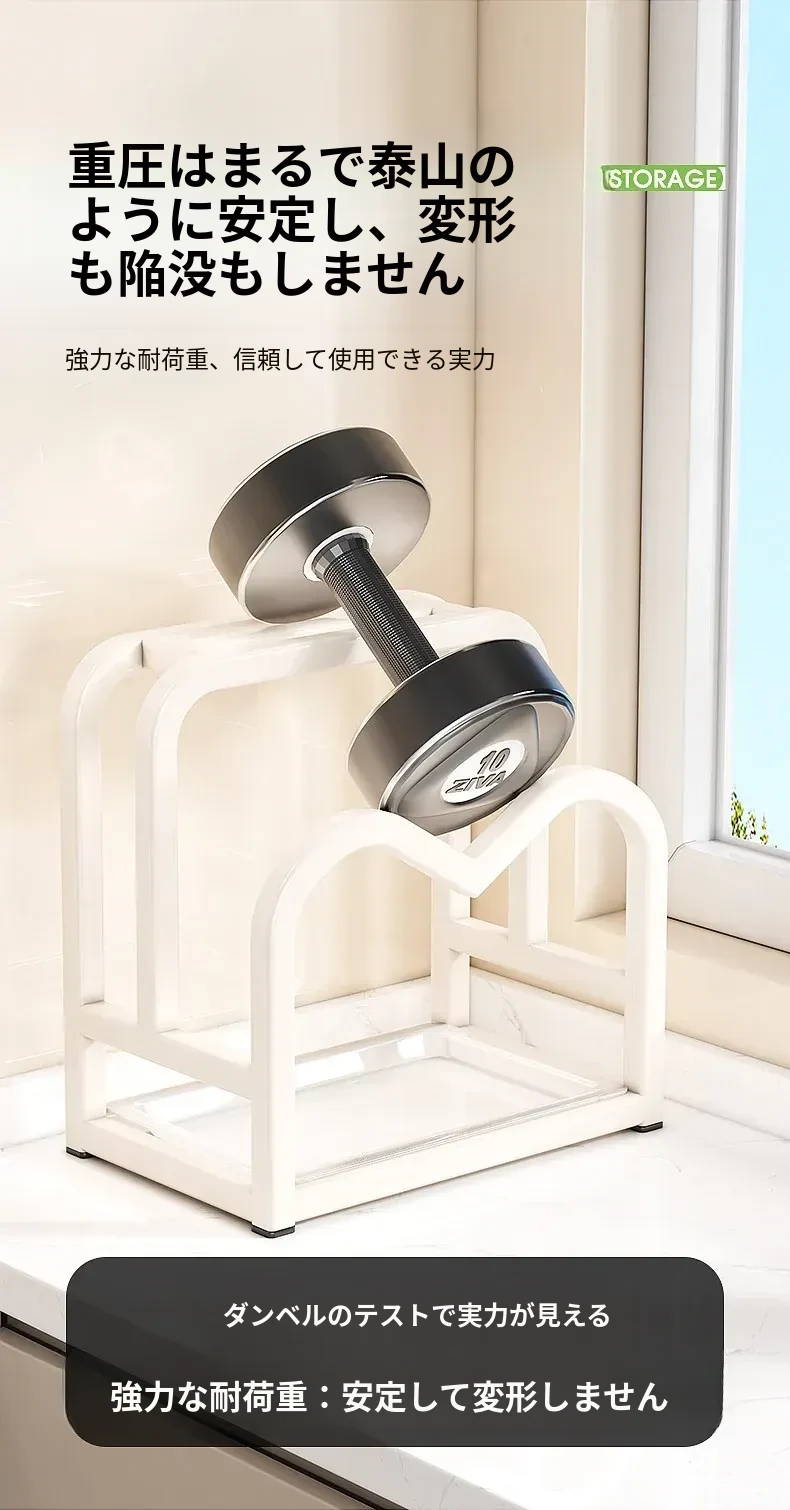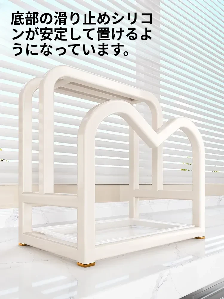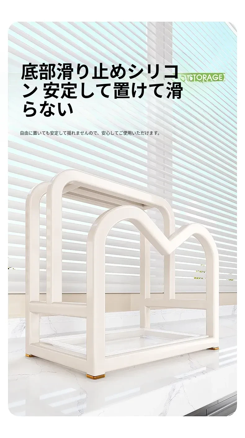 ミルクホワイト ● ナイフ・まな板・鍋蓋一体型スタンド【水受け皿付き】