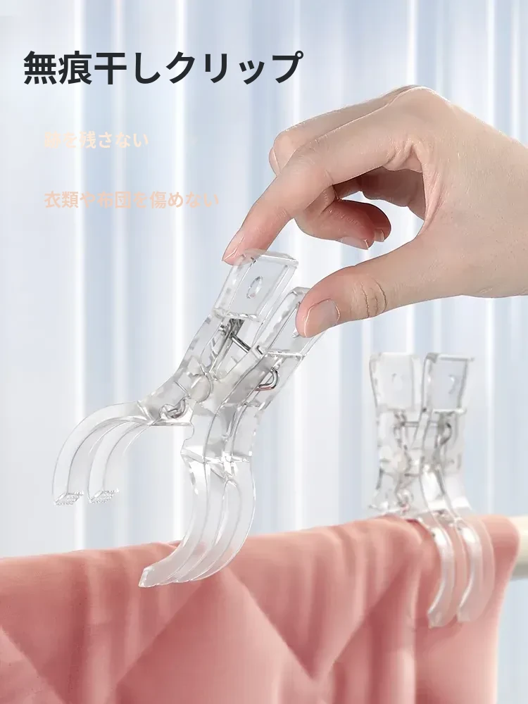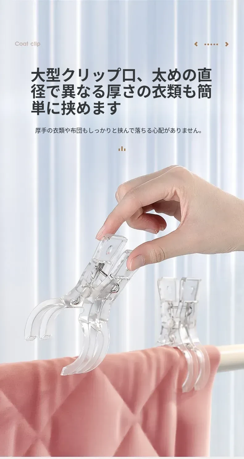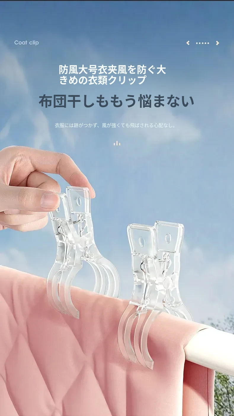風を防ぐ!多機能大クリップで安心乾燥!布団や衣類をしっかり固定するプラスチック製クリップ。大きなサイズで使いやすく、家事を楽にします!