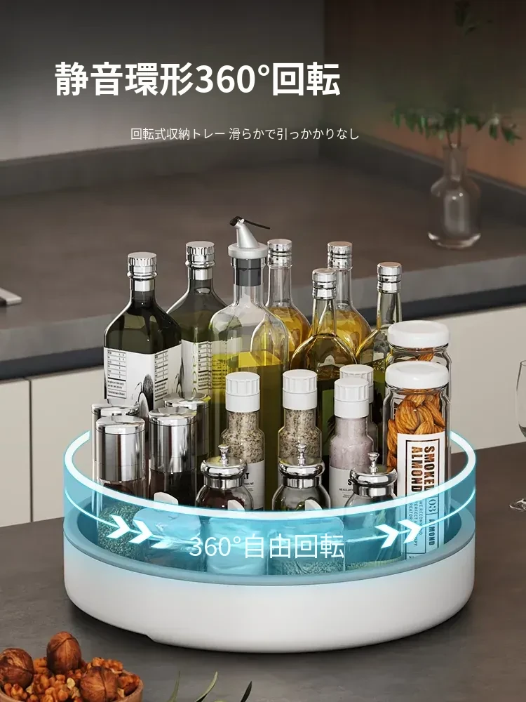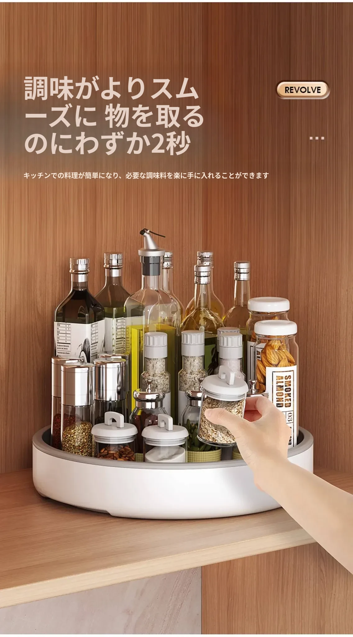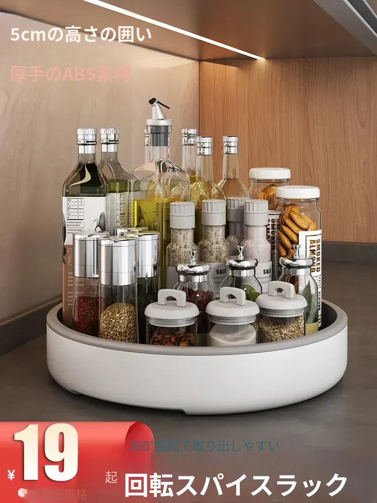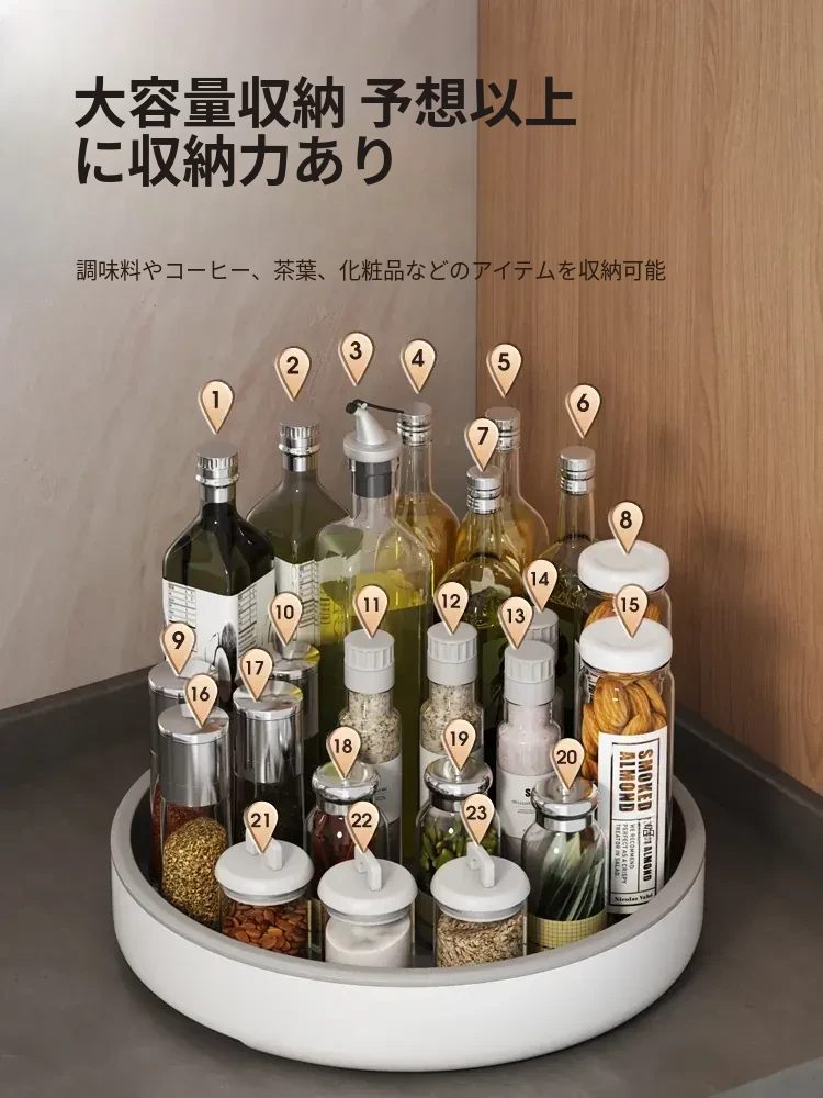 キッチン収納ラック 回転式スパイスラック 調味料ボトル用 マルチファンクション 油・塩・醤油・酢の瓶も収納可能 家庭用で便利な整理整頓アイテム!