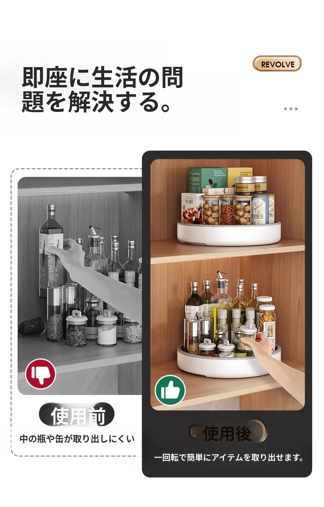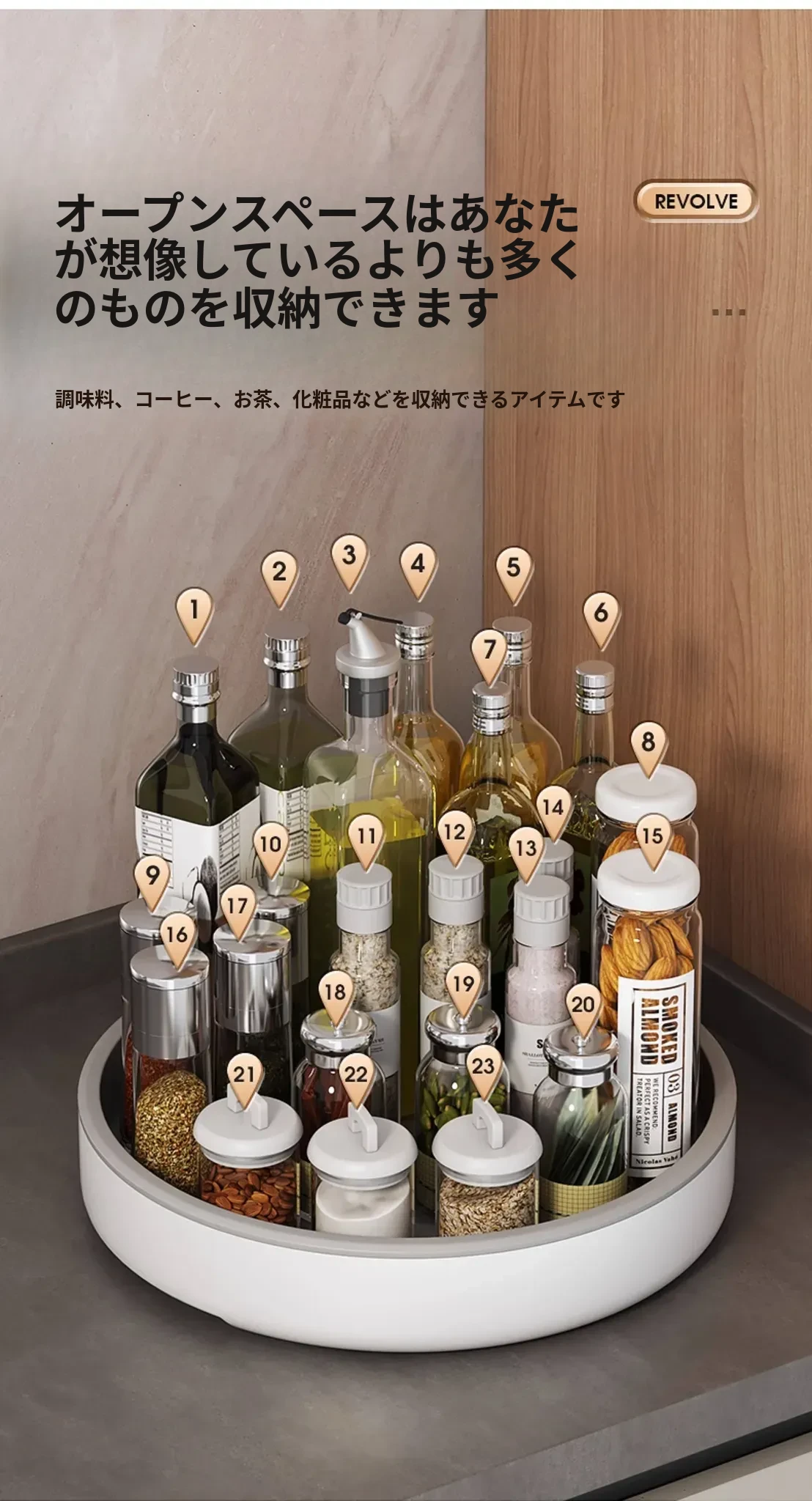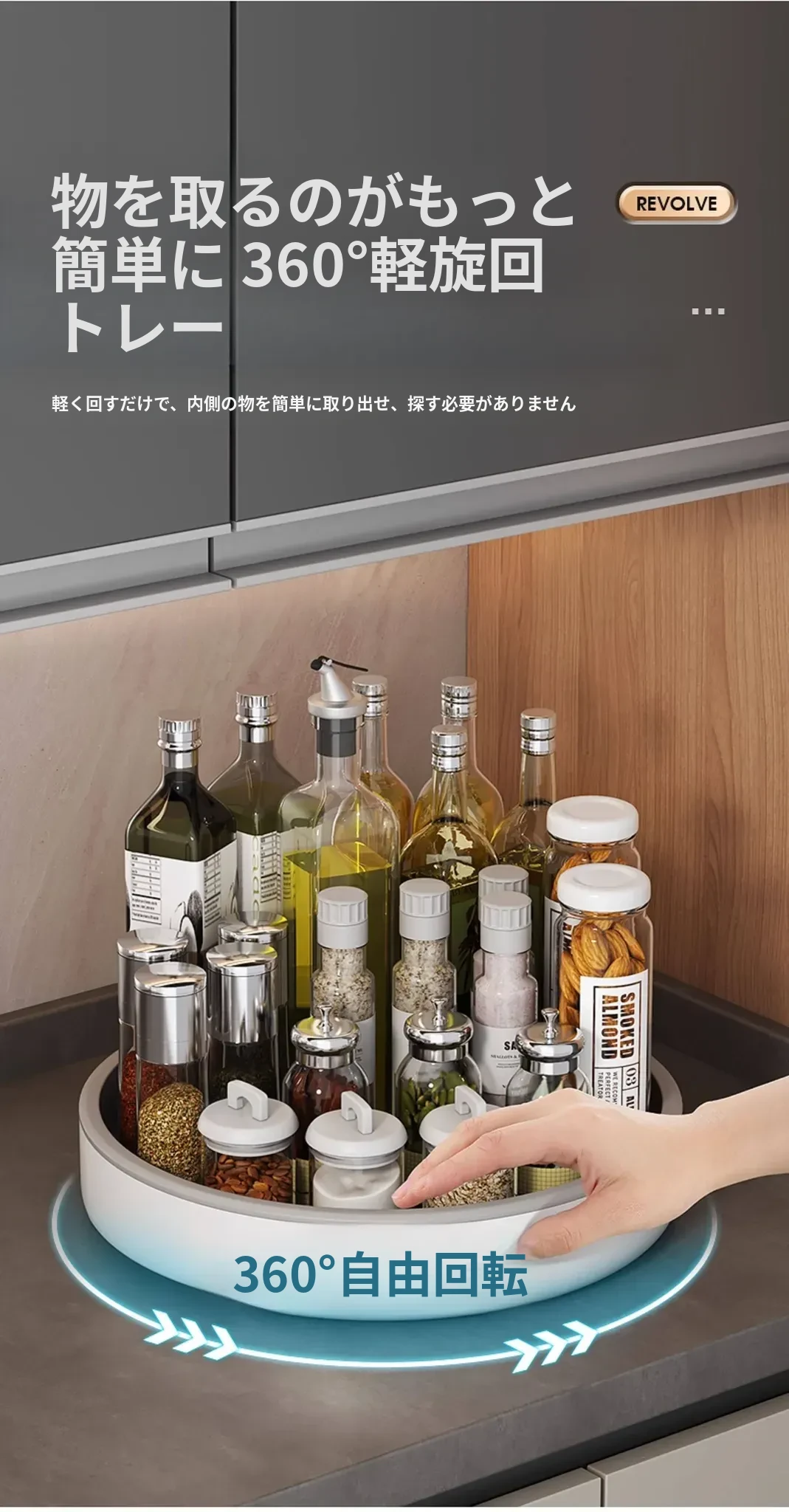 キッチン収納ラック 回転式スパイスラック 調味料ボトル用 マルチファンクション 油・塩・醤油・酢の瓶も収納可能 家庭用で便利な整理整頓アイテム!