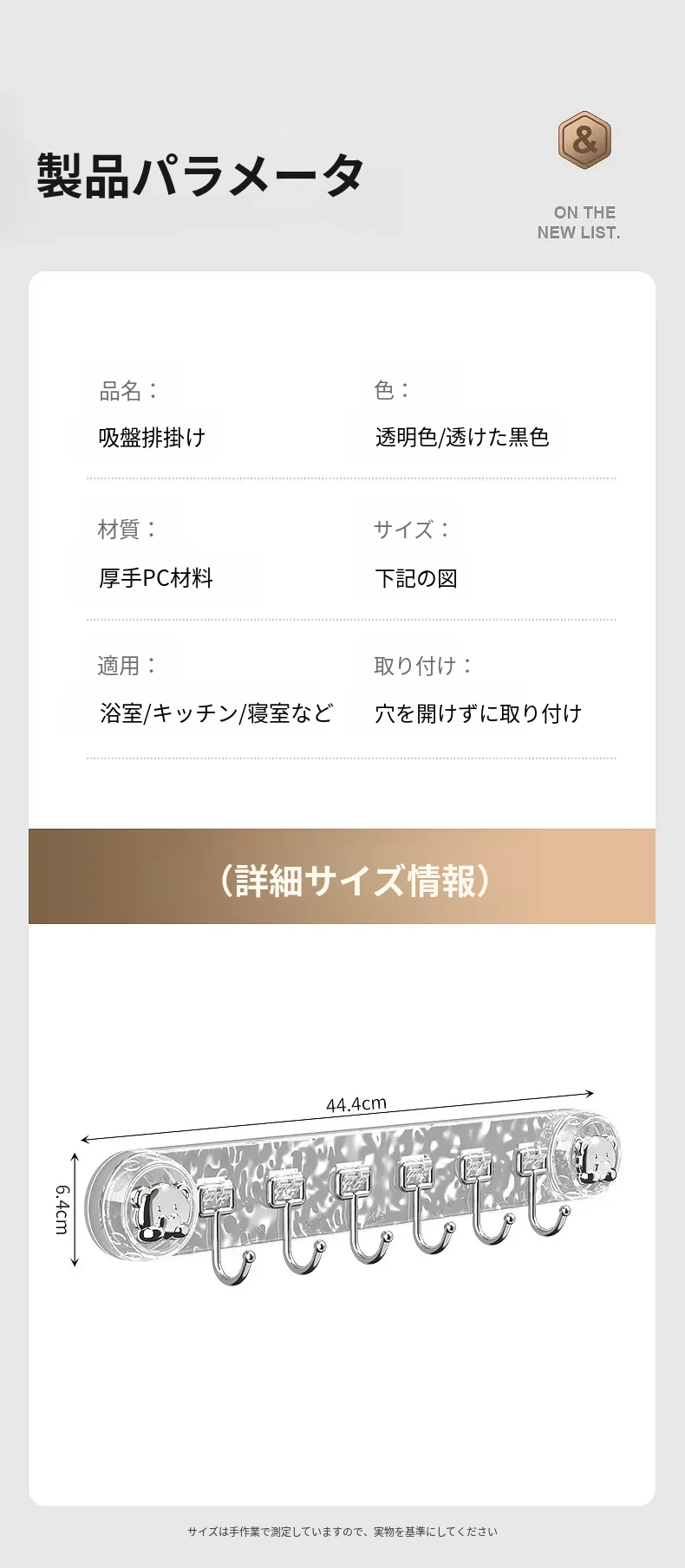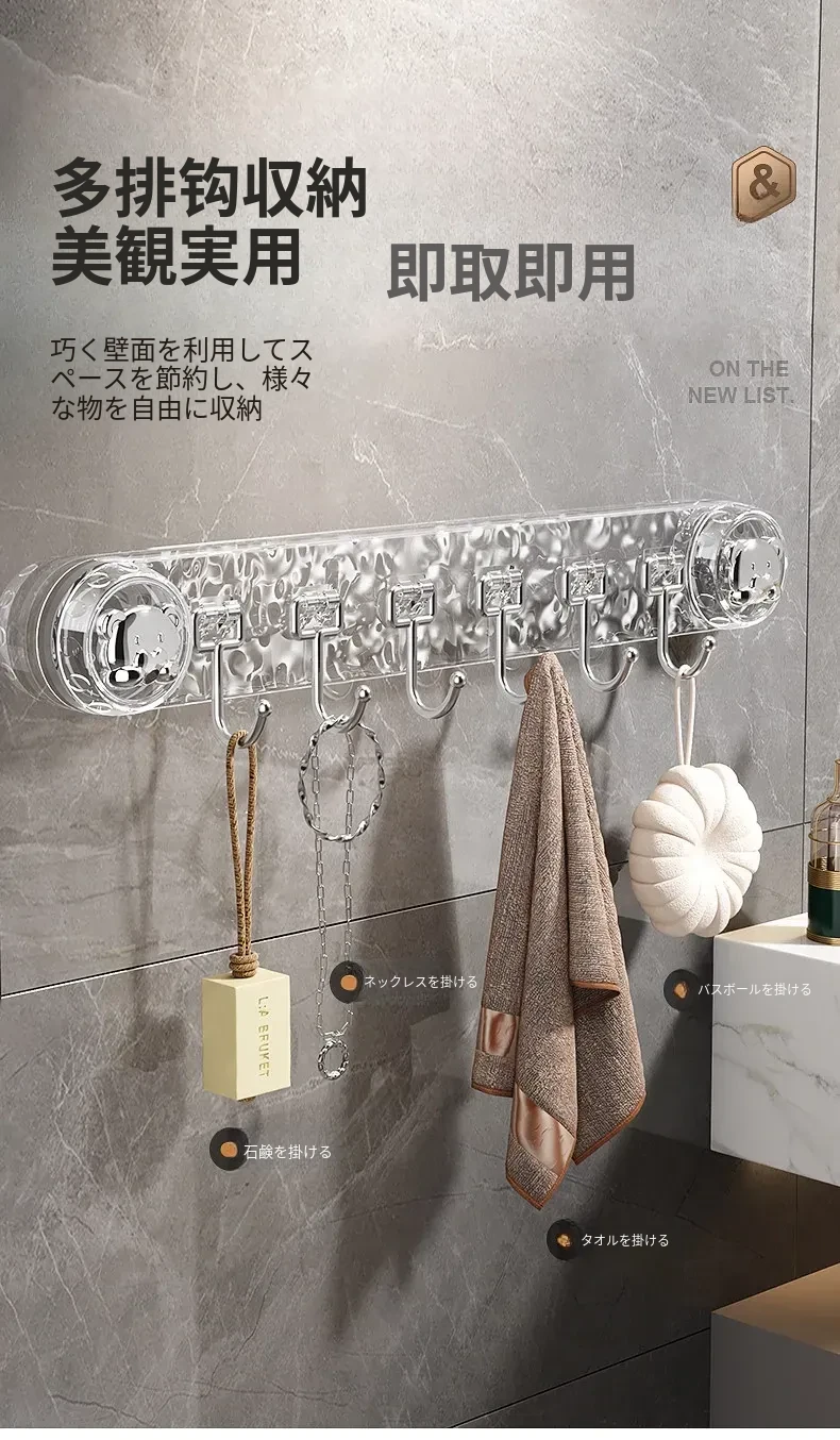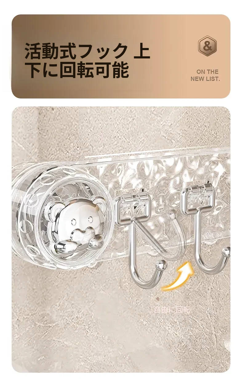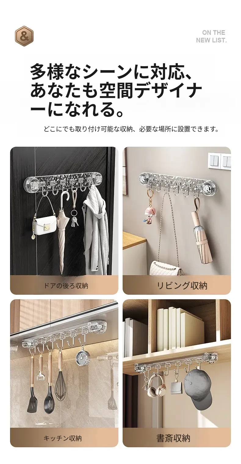 穴を開けずに取り付けられる多機能吸盤フック!キッチン用スプーンやヘラのための便利なウォールマウントフックラック。スッキリとしたデザインで、壁を傷めずに整理整頓。ご家庭のキッチンをもっと使いやすく!