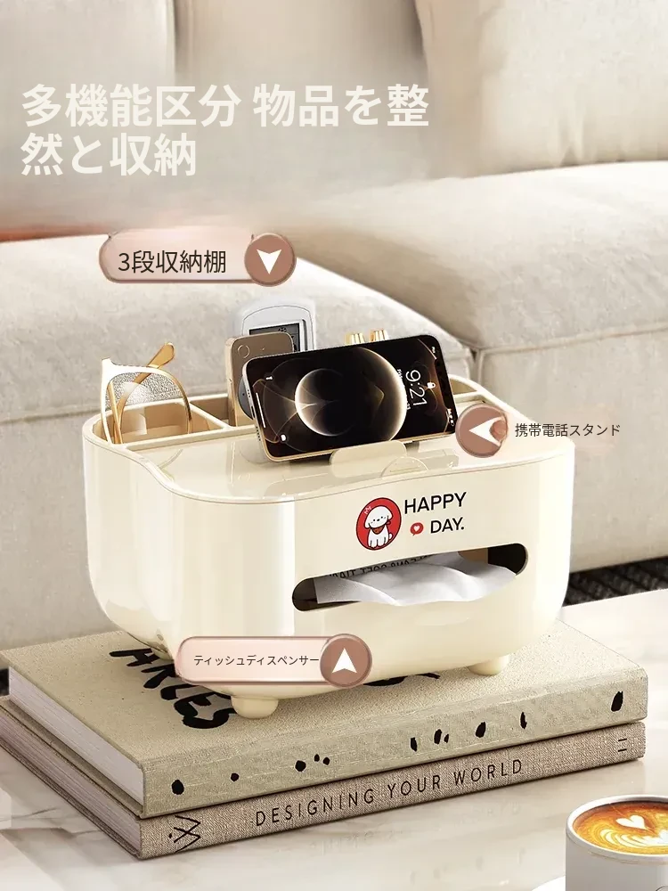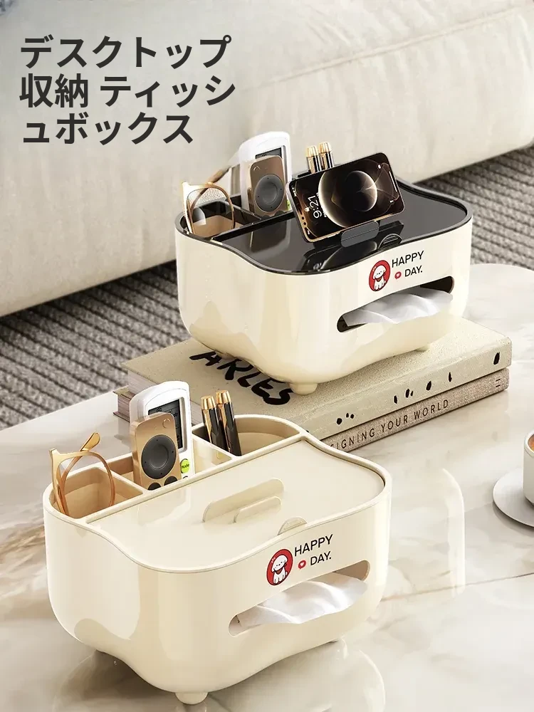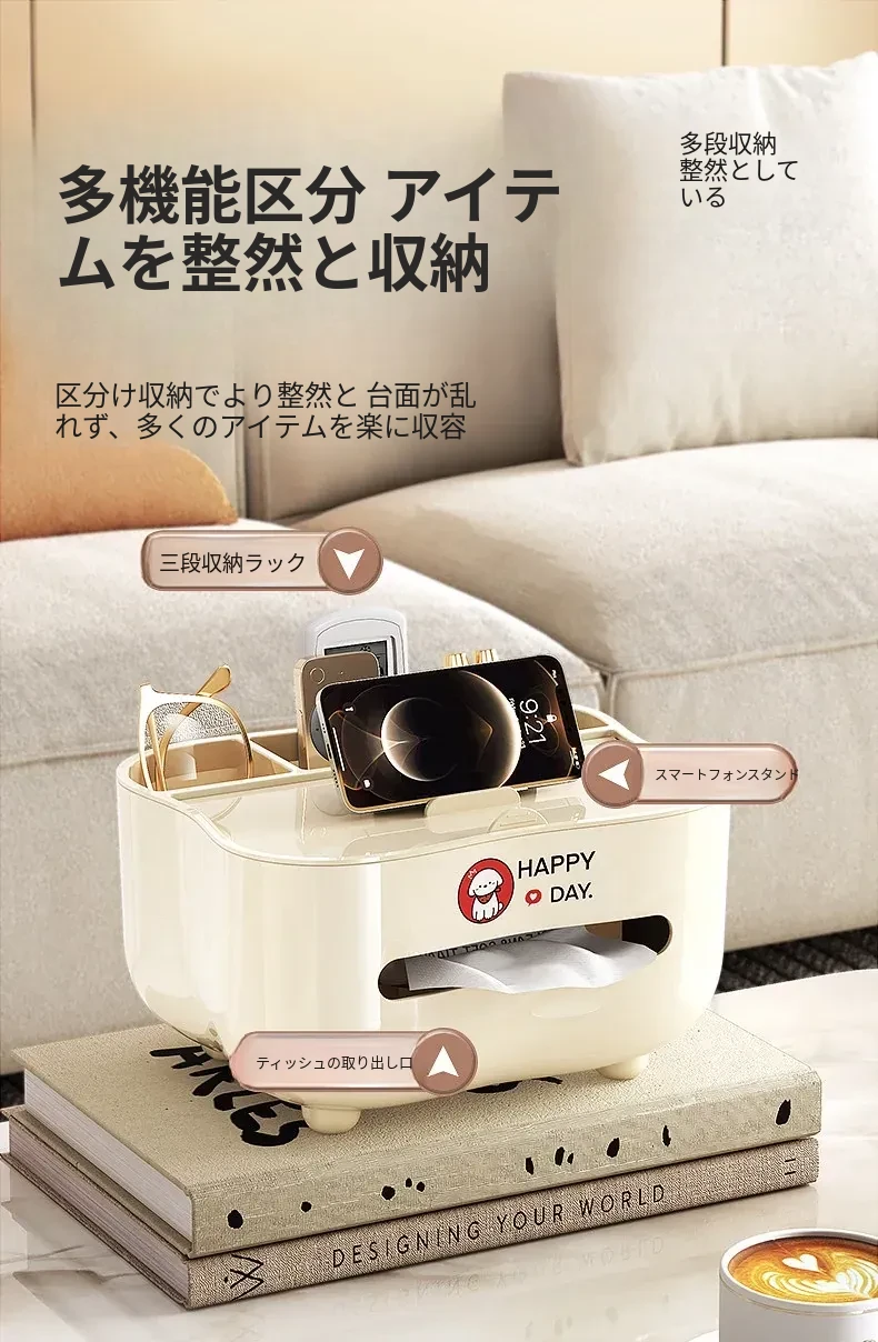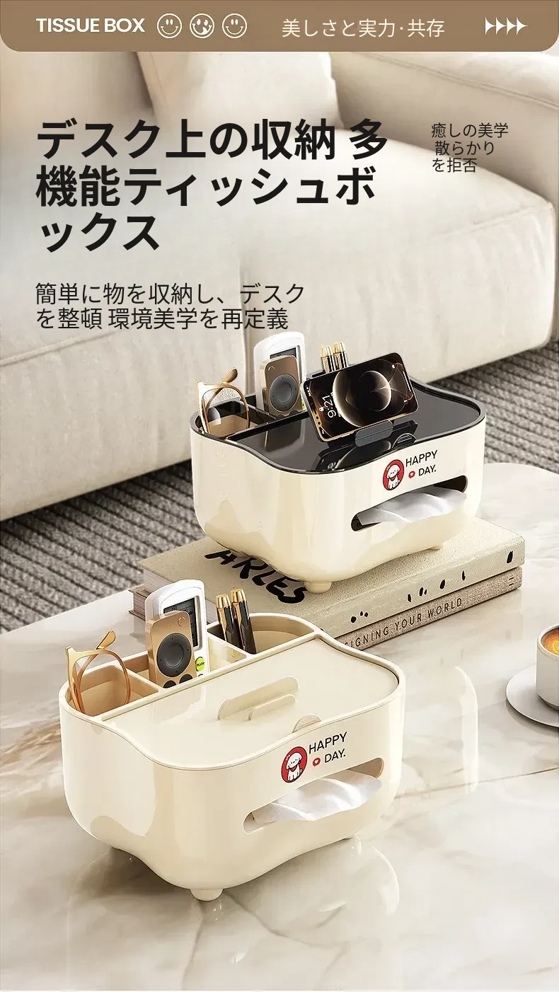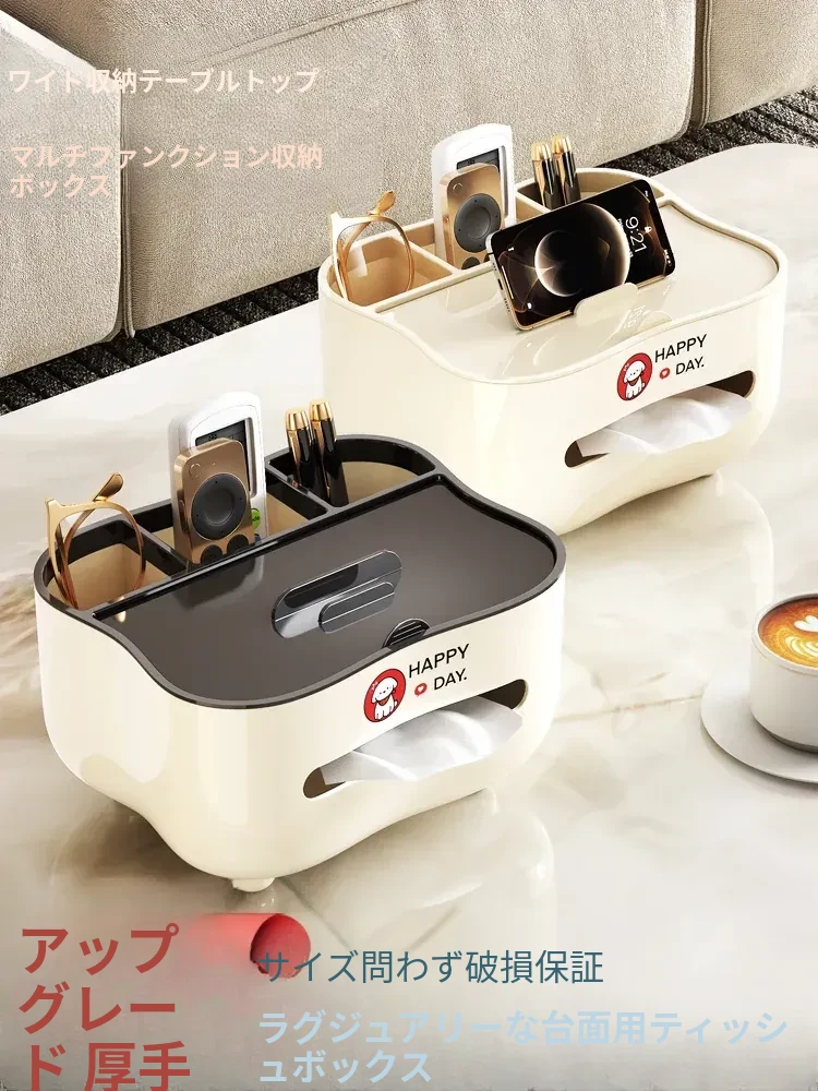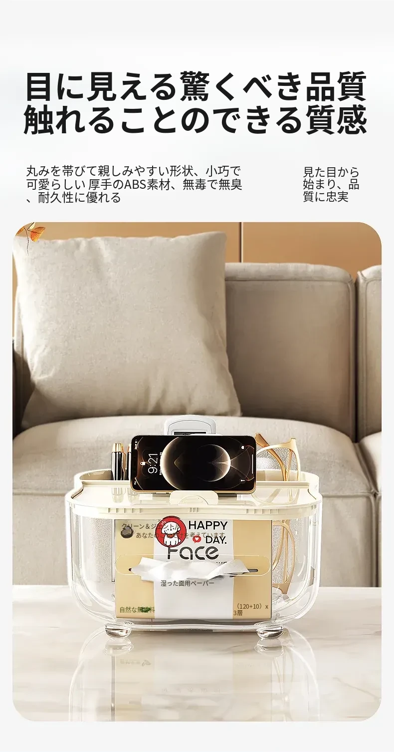 多機能ティッシュボックス 家庭用 リビングテーブル用 おしゃれな収納ボックス ティッシュ・リモコン・スマホもスッキリ整理!お部屋をスッキリさせる便利アイテム!