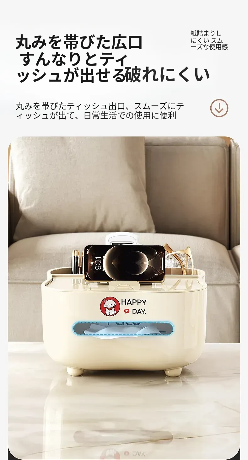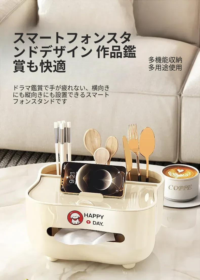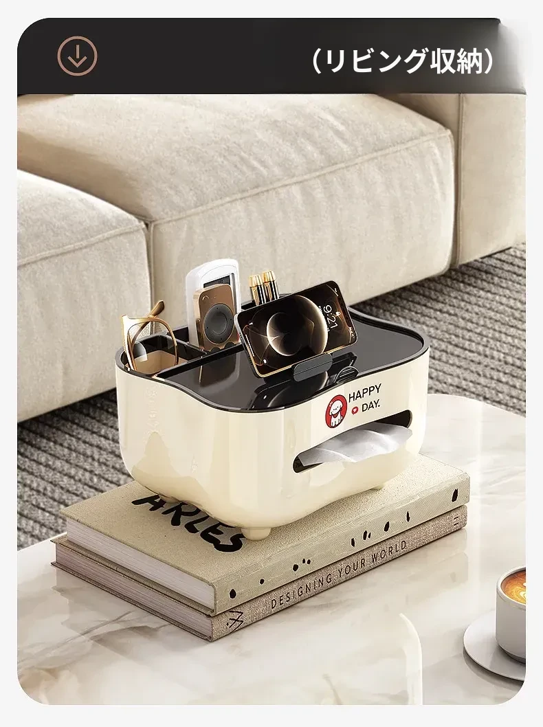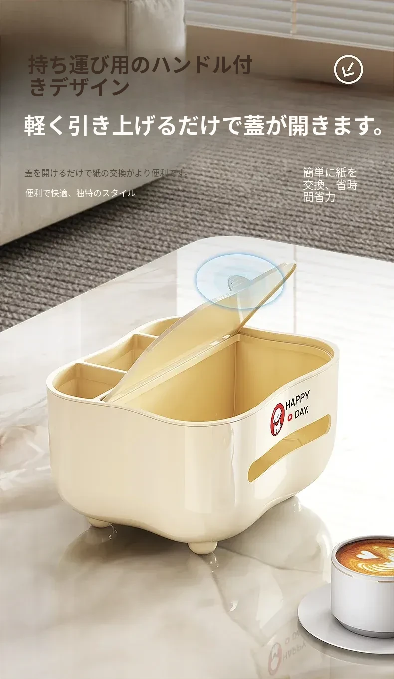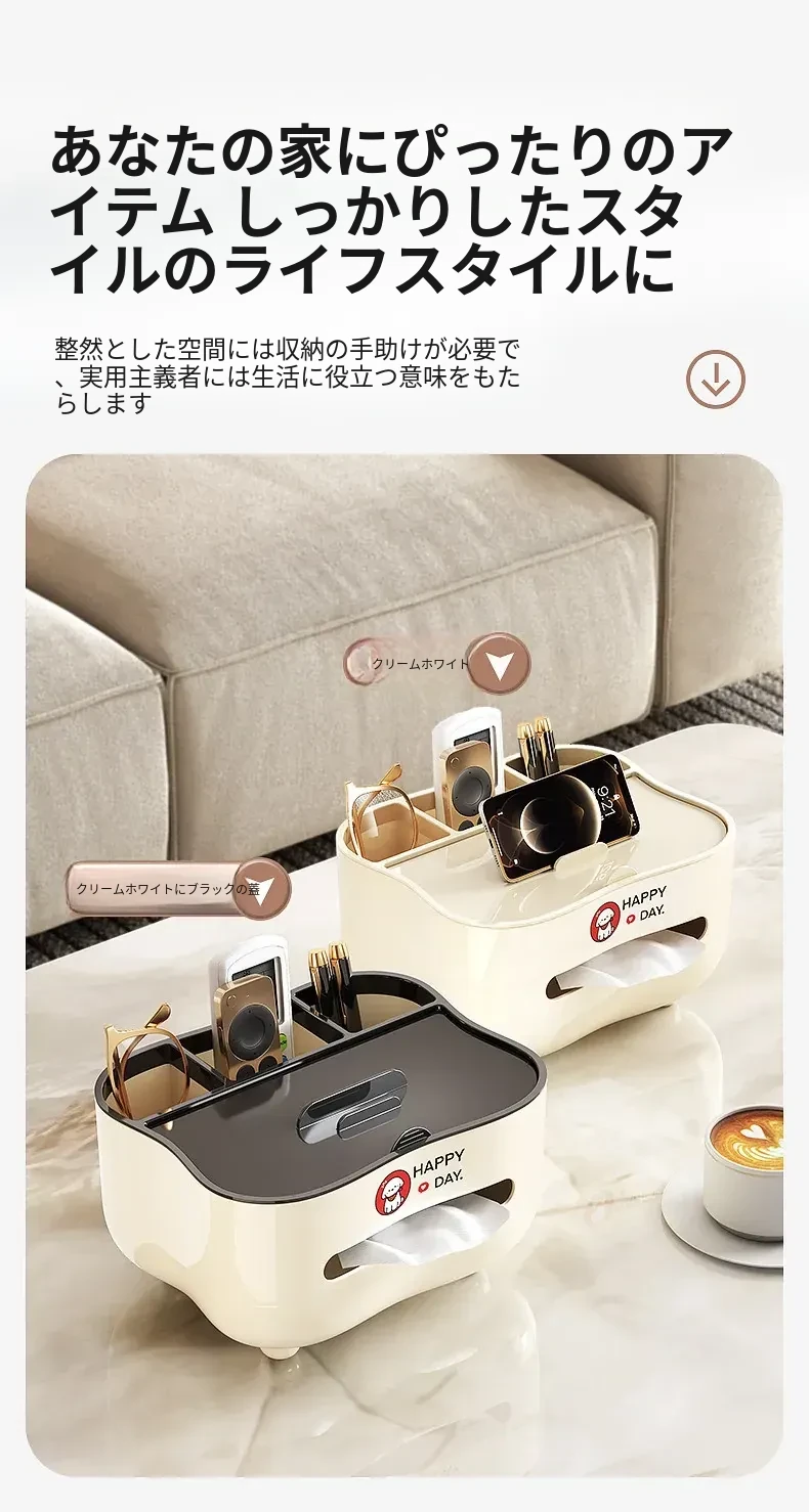 多機能ティッシュボックス 家庭用 リビングテーブル用 おしゃれな収納ボックス ティッシュ・リモコン・スマホもスッキリ整理!お部屋をスッキリさせる便利アイテム!