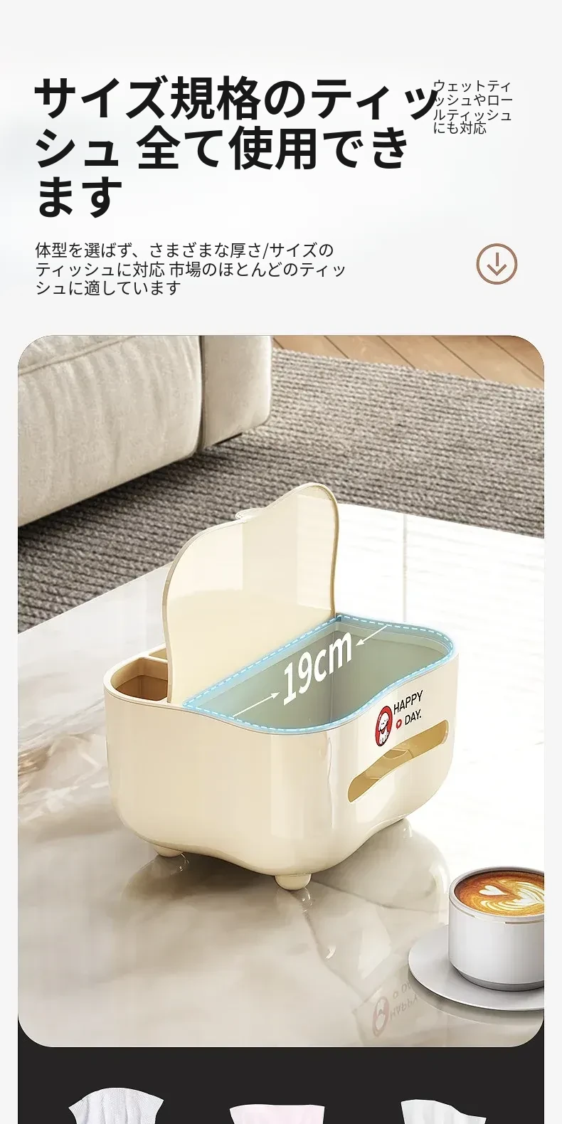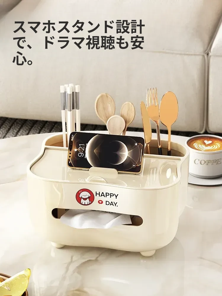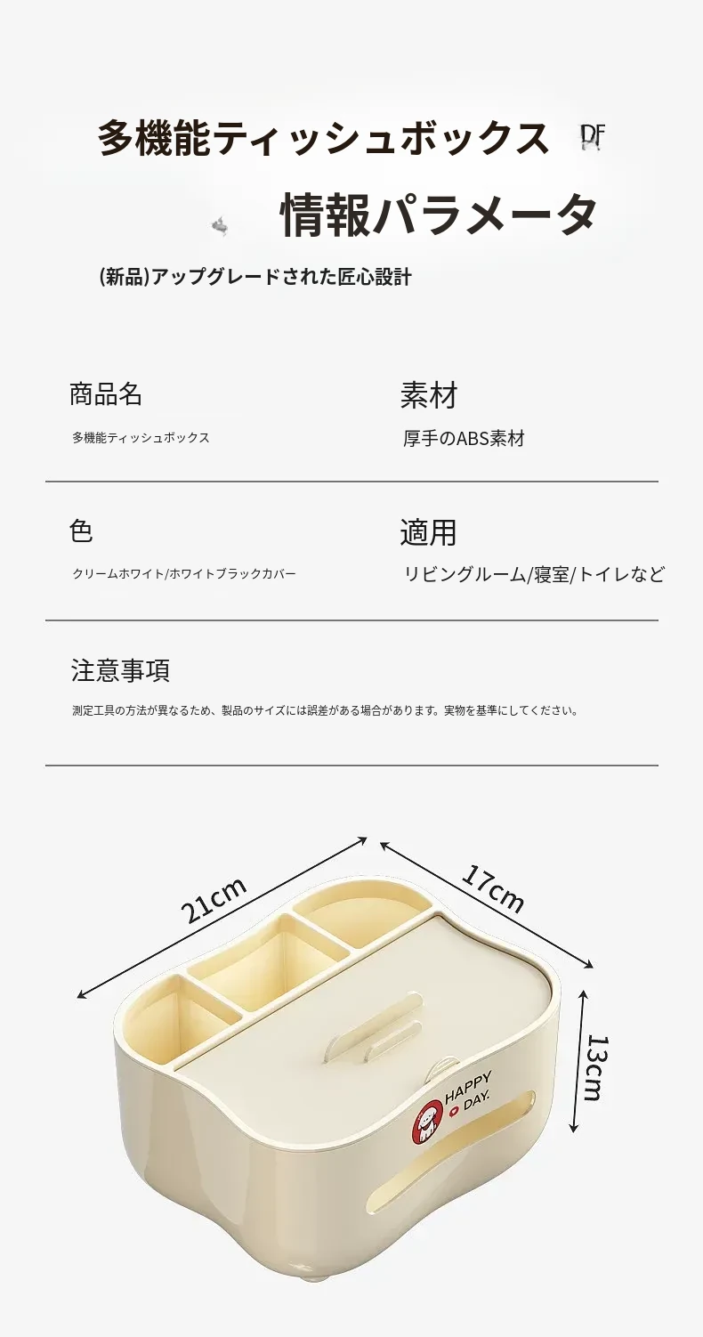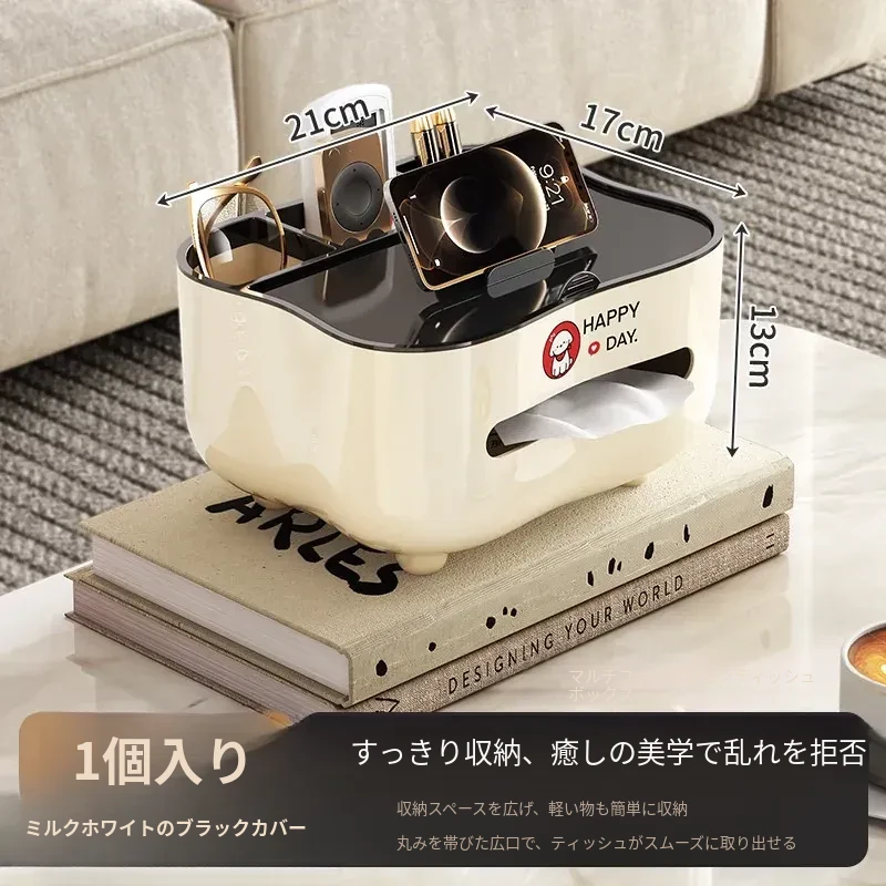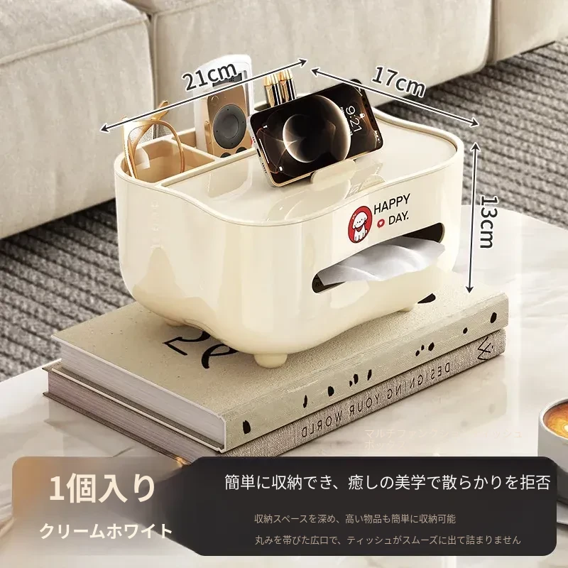 クリームホワイト●多機能収納ティッシュボックス【1個入り】